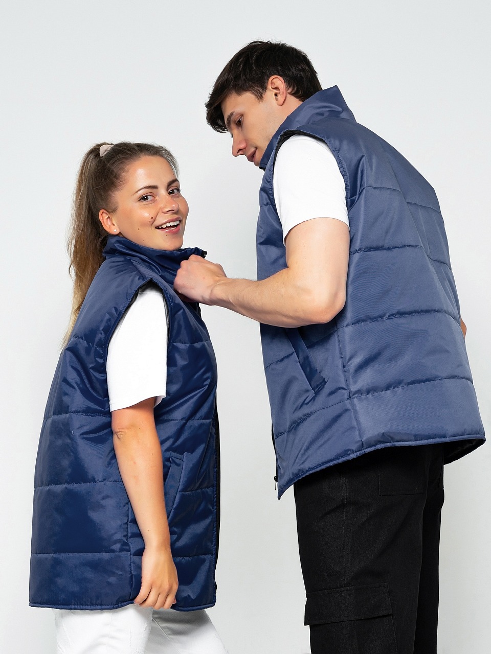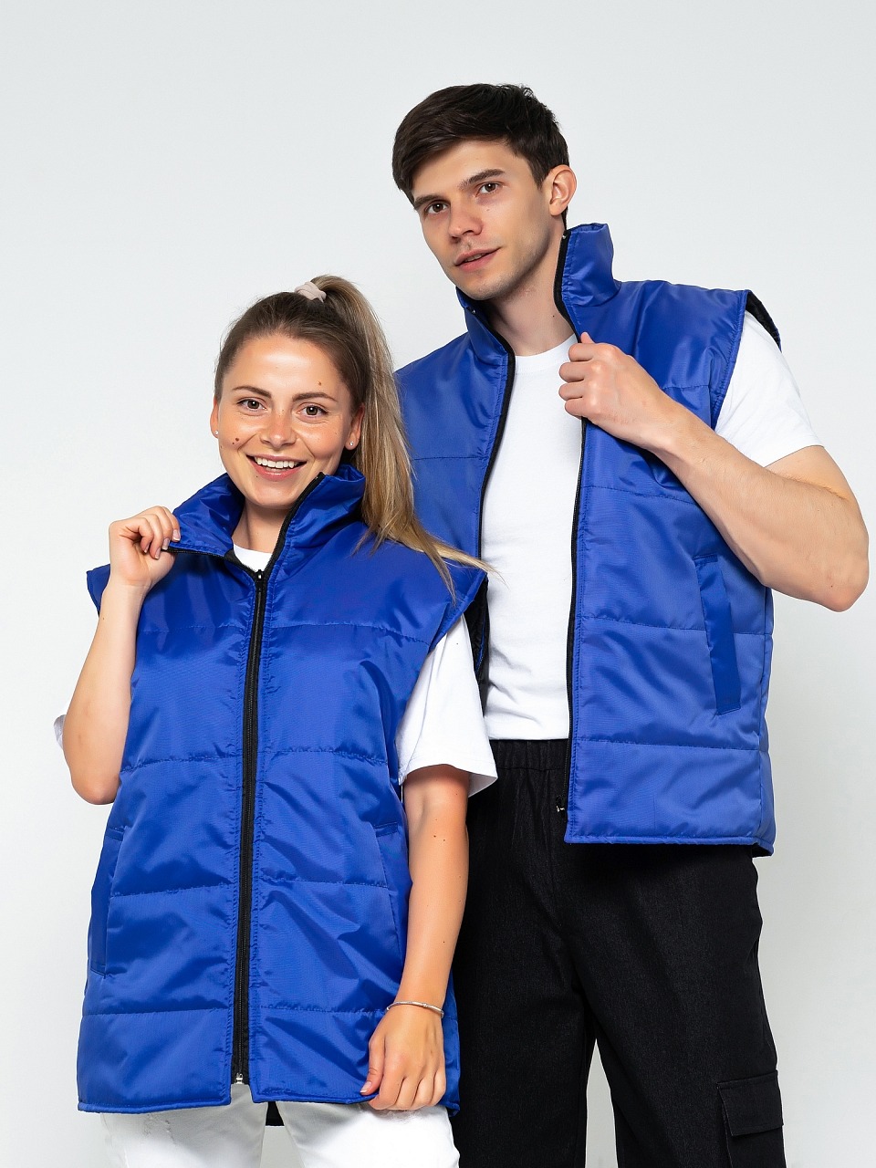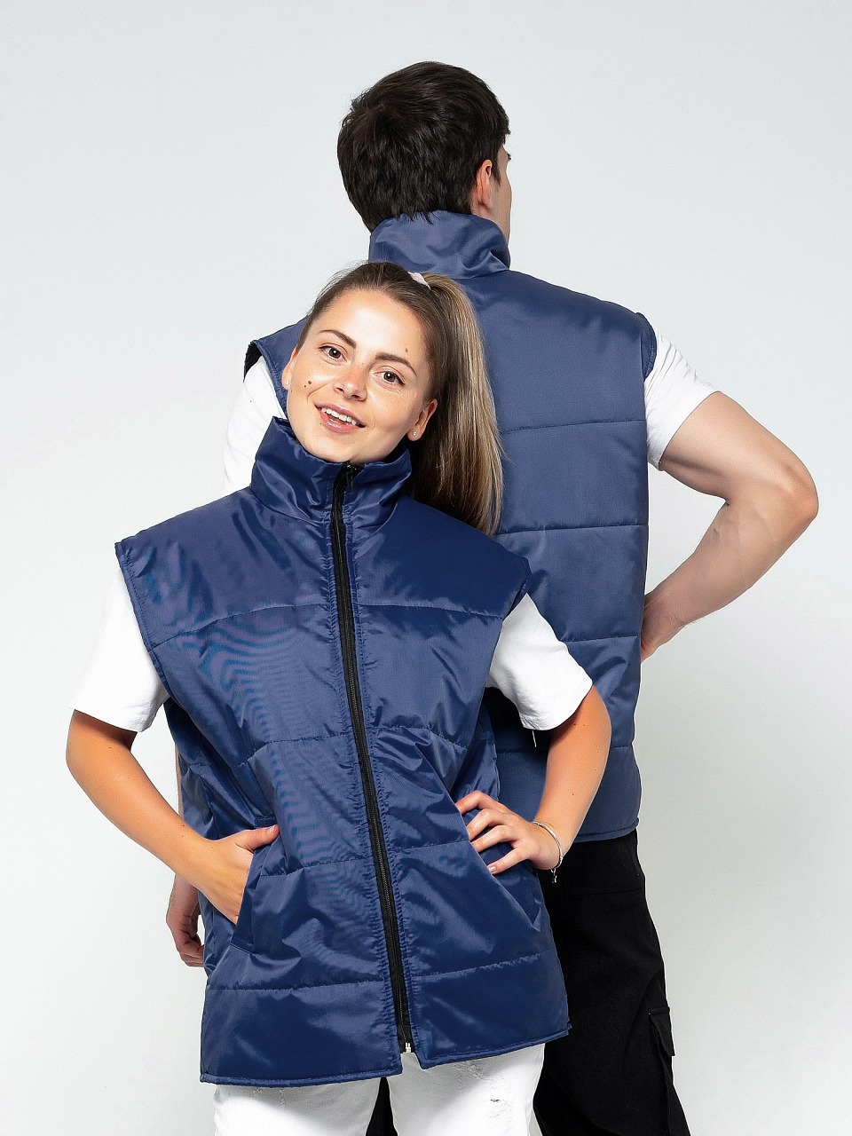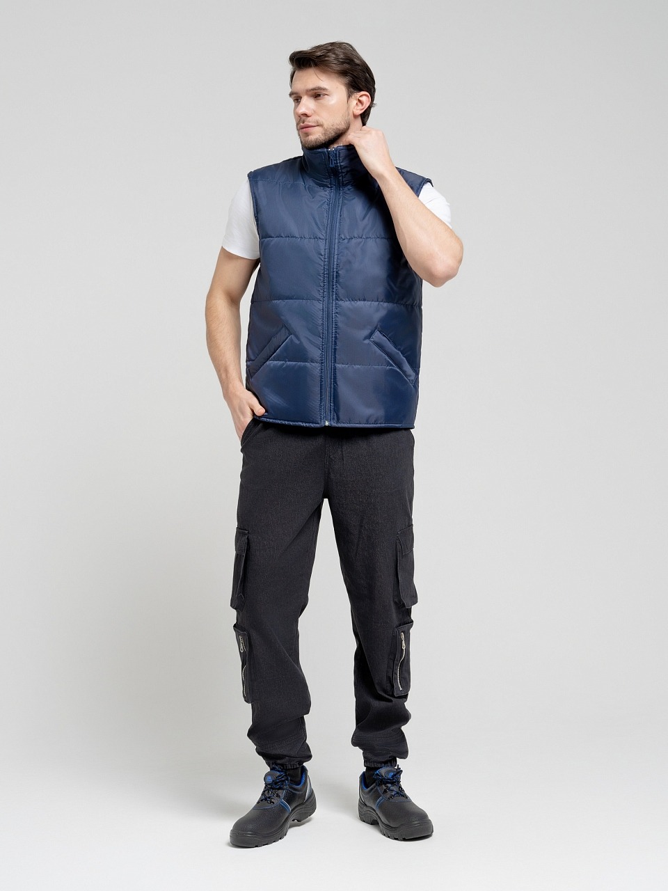 Жилет утепленный 3.9.4.49 прямого силуэта с центральной застёжкой на молнию.