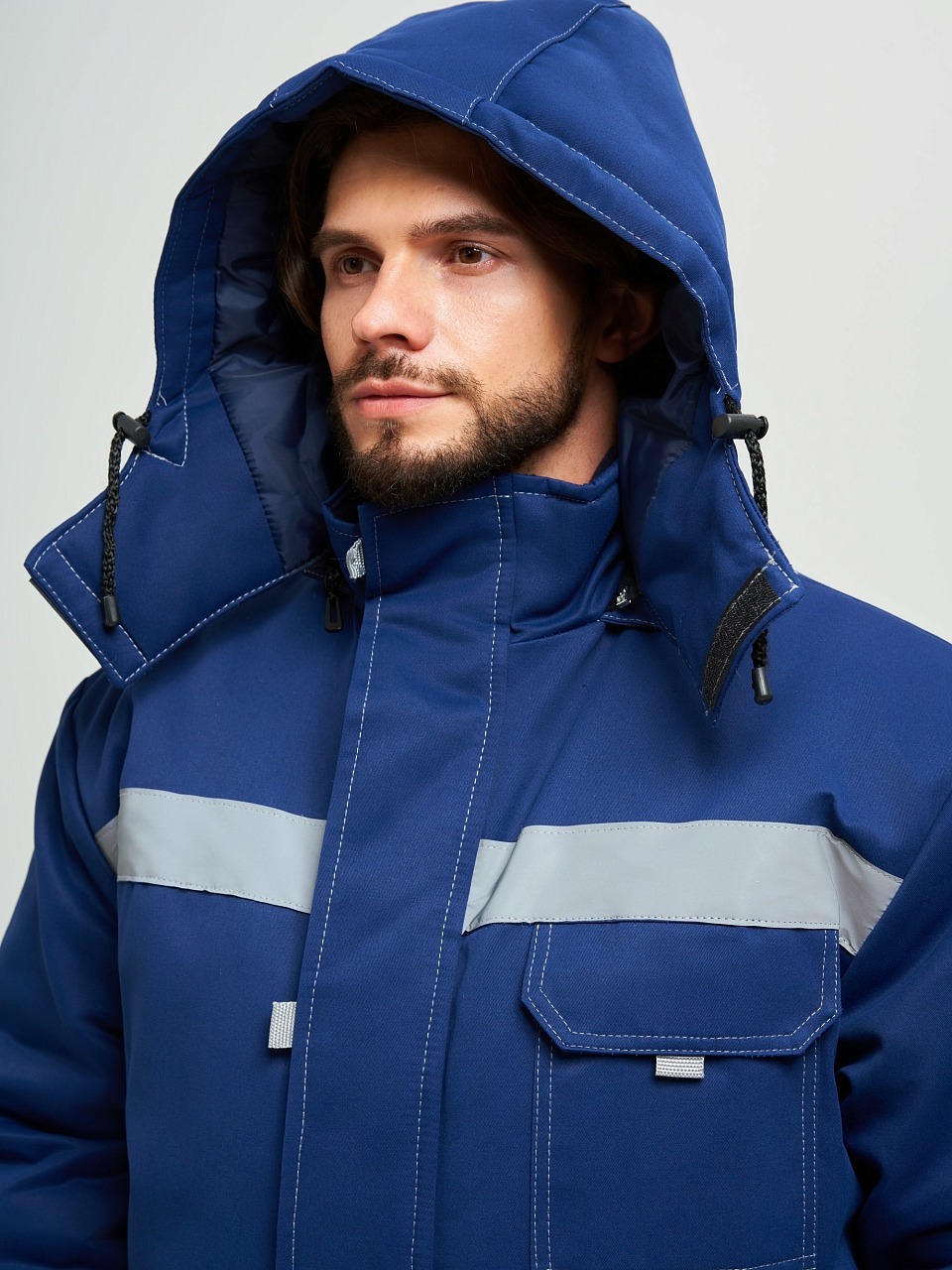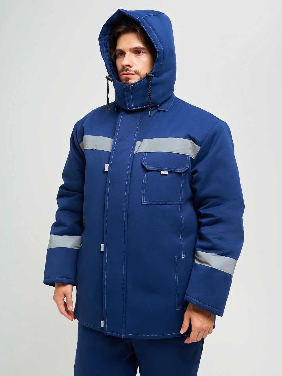 На куртке по линии груди, спине и нижней части рукавов настрочена светоотражающая лента шириной 50 мм.