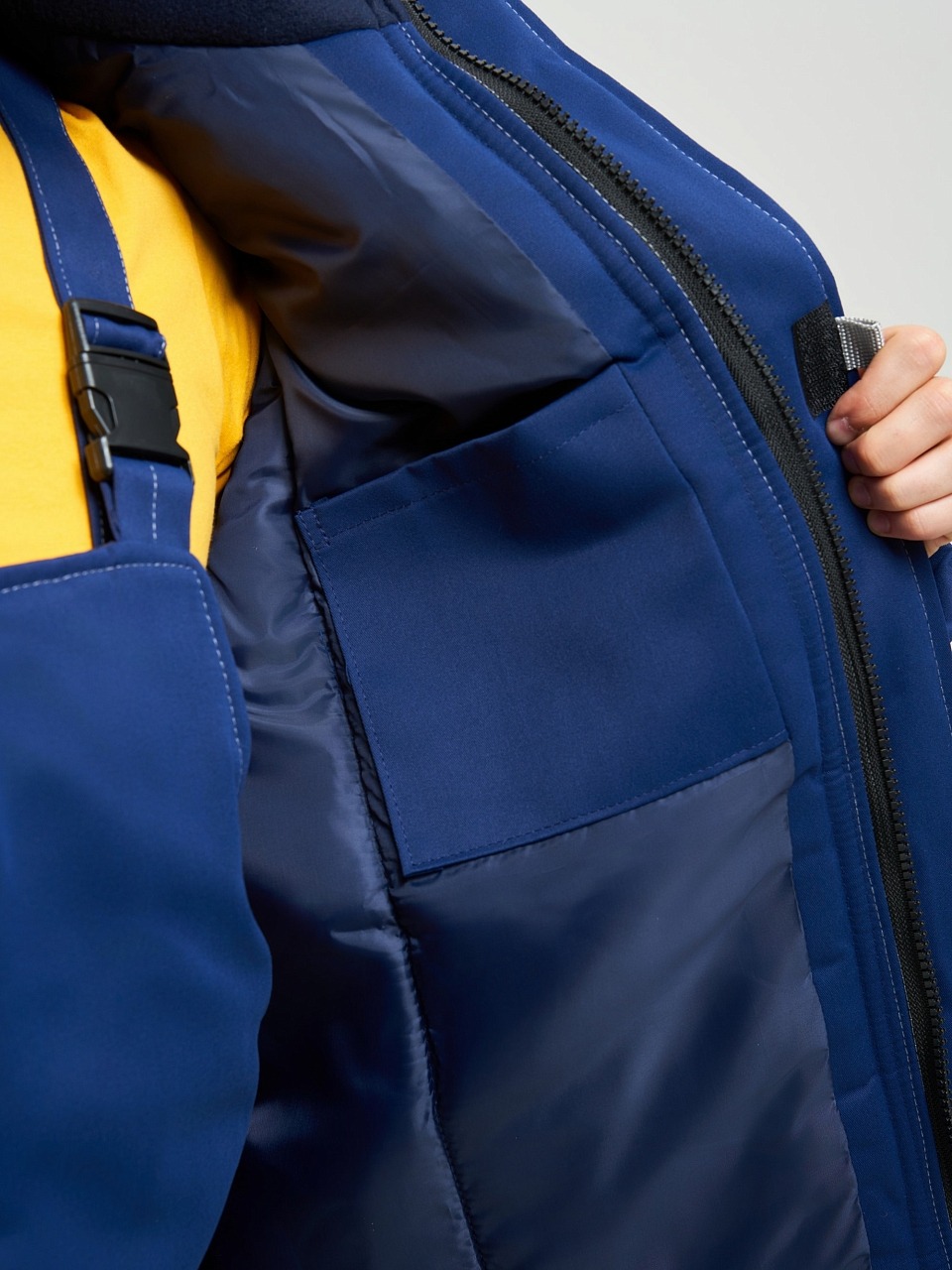Подкладка: 100% п/э, ветрозащитная подкладка проходит между тканью верха и синтепоном
