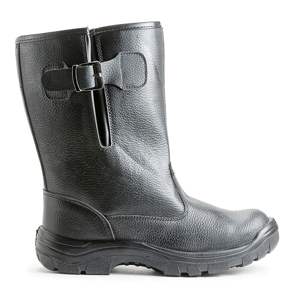 Кожаные сапоги 15-ОМ дополнены ремнем с металлической пряжкой для возможности регулировать и комфортно фиксировать ширину голенища. Подкладка и вкладная стелька изготовлены из искусственного меха. Светоотражающие элементы повышают видимость работников в темное время суток, а также на неосвещенной территории. Однослойная маслобензостойкая полиуретановая подошва литьевого метода крепления имеет вставку в пяточной части подошвы, обладающую амортизационными свойствами и способную гасить ударные нагрузки при ходьбе. Глубина протектора ходового слоя обеспечивает хорошую сцепляемость с поверхностями и препятствует скольжению за счет рельефа протектора. Термопластичный подносок обеспечивает защиту пальцев стопы.