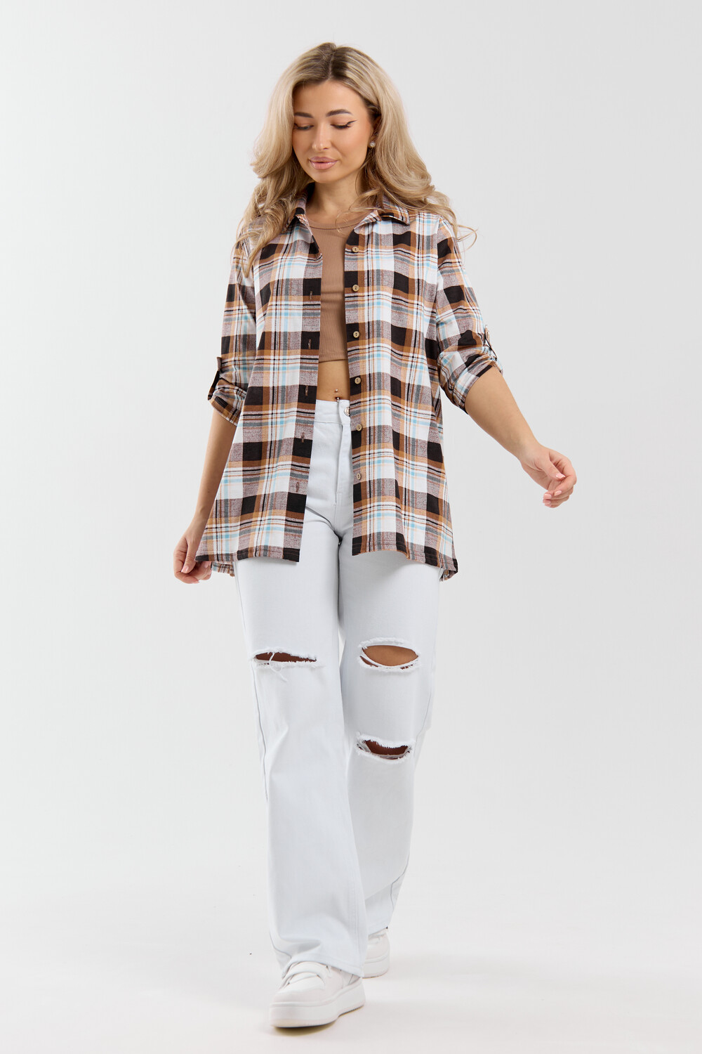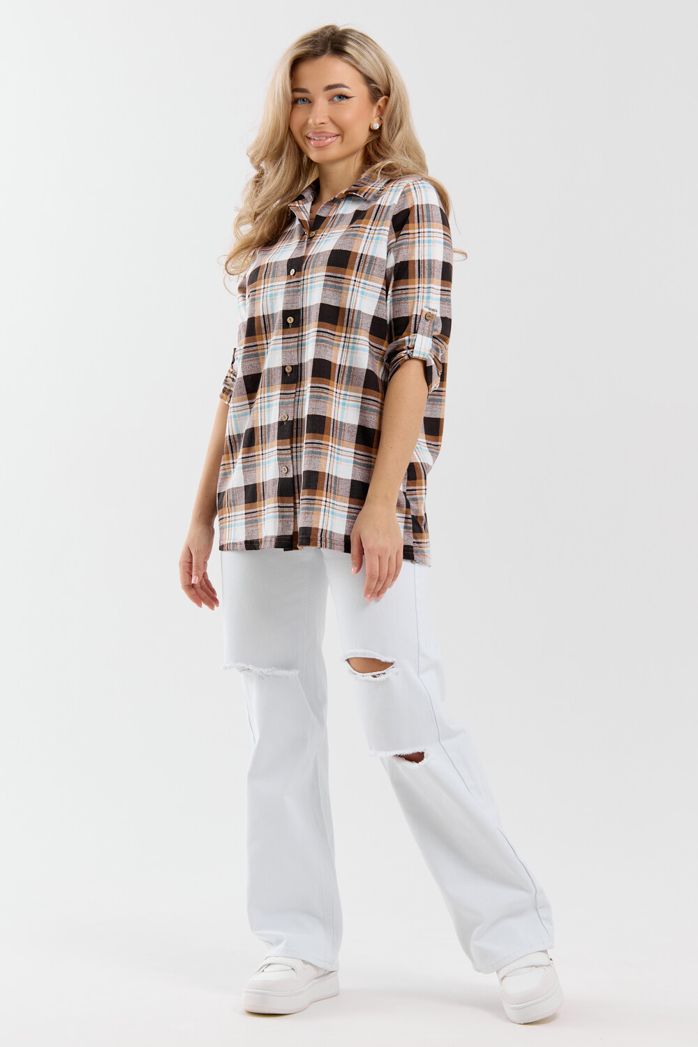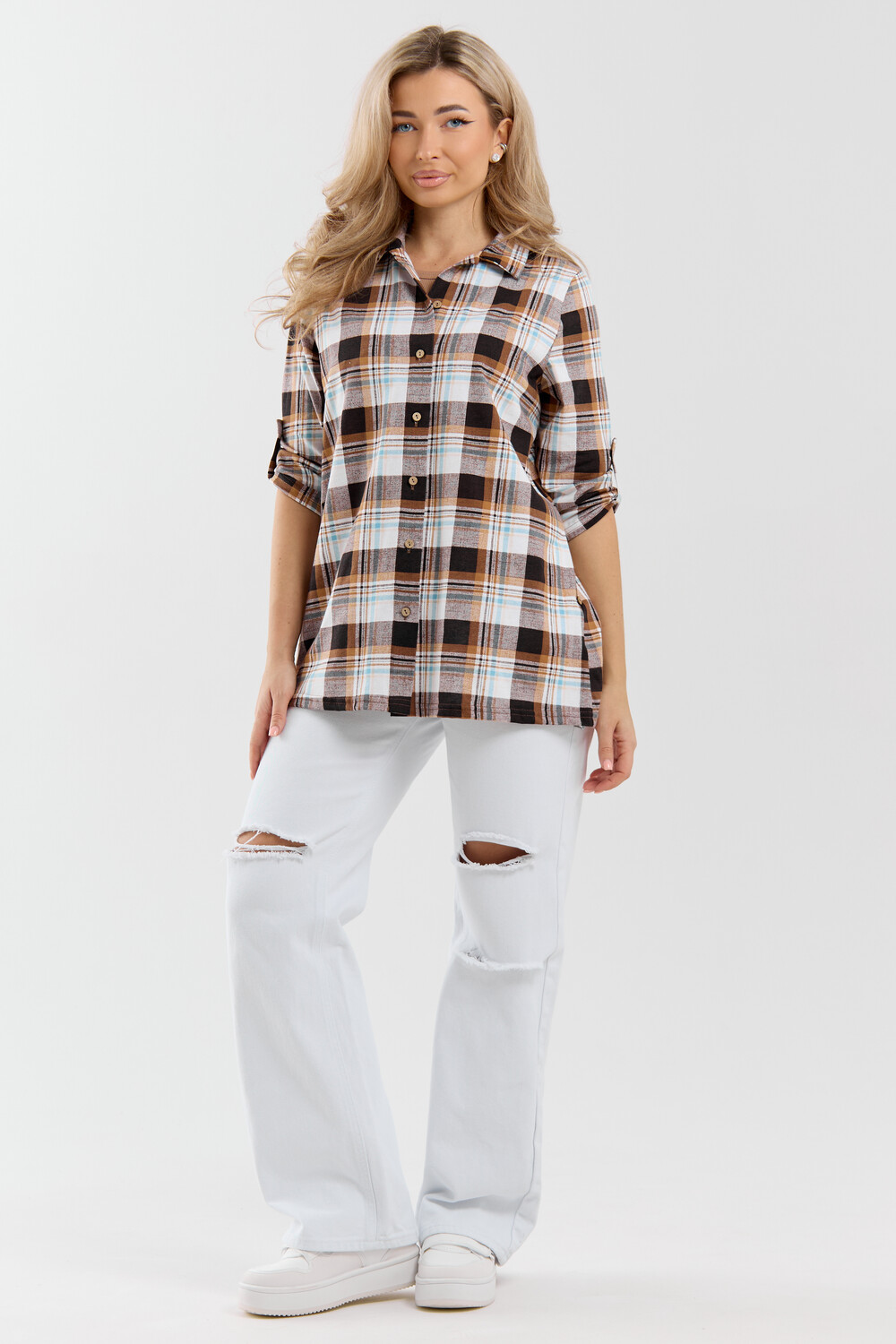 Женская стильная туника - рубашка выполнена из 100% хлопчатобумажного полотна. Новый дизайн и отличное качество делает изделие модным, легким и приятным на ощупь, не сковывает движения, поэтому отлично подойдет как для школы, дома и работы, так и для повседневной носки. Модель дополняет рубашечный воротник, паты и планка с расстёгивающимися пуговицами, делая её более комфортной. Женская свободная рубашка не сковывает движения, поэтому отлично подойдет будущим мамам, беременным женщинам и кормящим. Расстёгивающаяся планка сделает кормление малыша удобным и комфортным, а за счет качественного хлопкового трикотажа еще и безопасным и экологичным. Мы специально разработали рубашку для женщин большого размера. Большие размеры любят и подростки, которые предпочитают вещи оверсайз (oversize). Рубашка женская - это базовая вещь в гардеробе девушки или женщины, является идеальным вариантом для офиса, работы, школы и путешествий. Удлиненную рубашку можно носить дома и в качестве повседневной одежды.