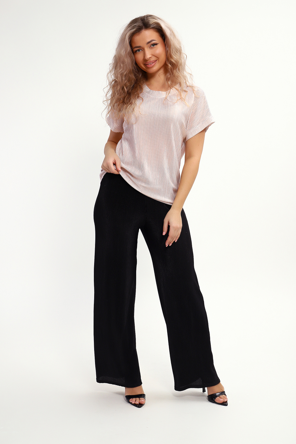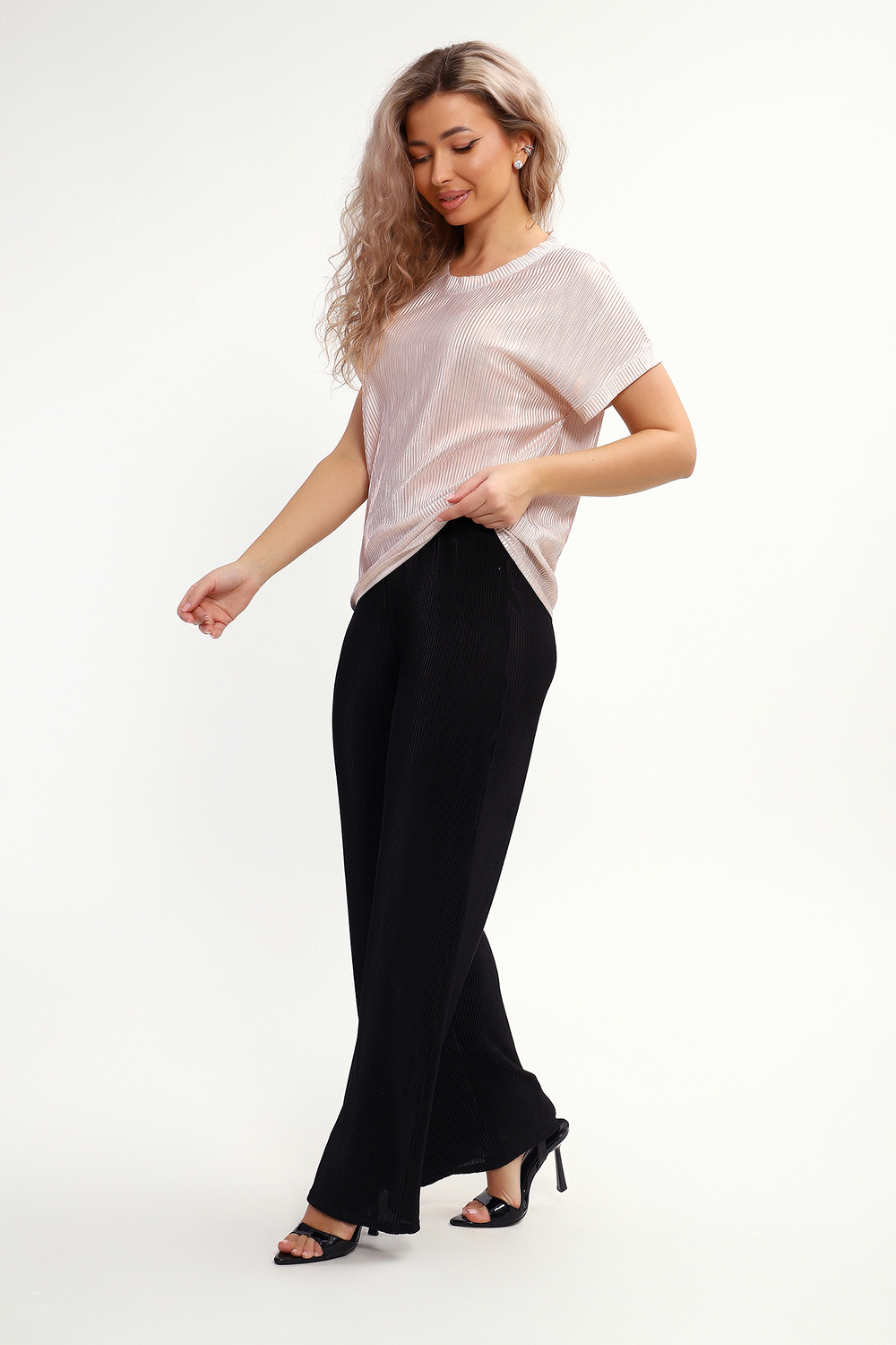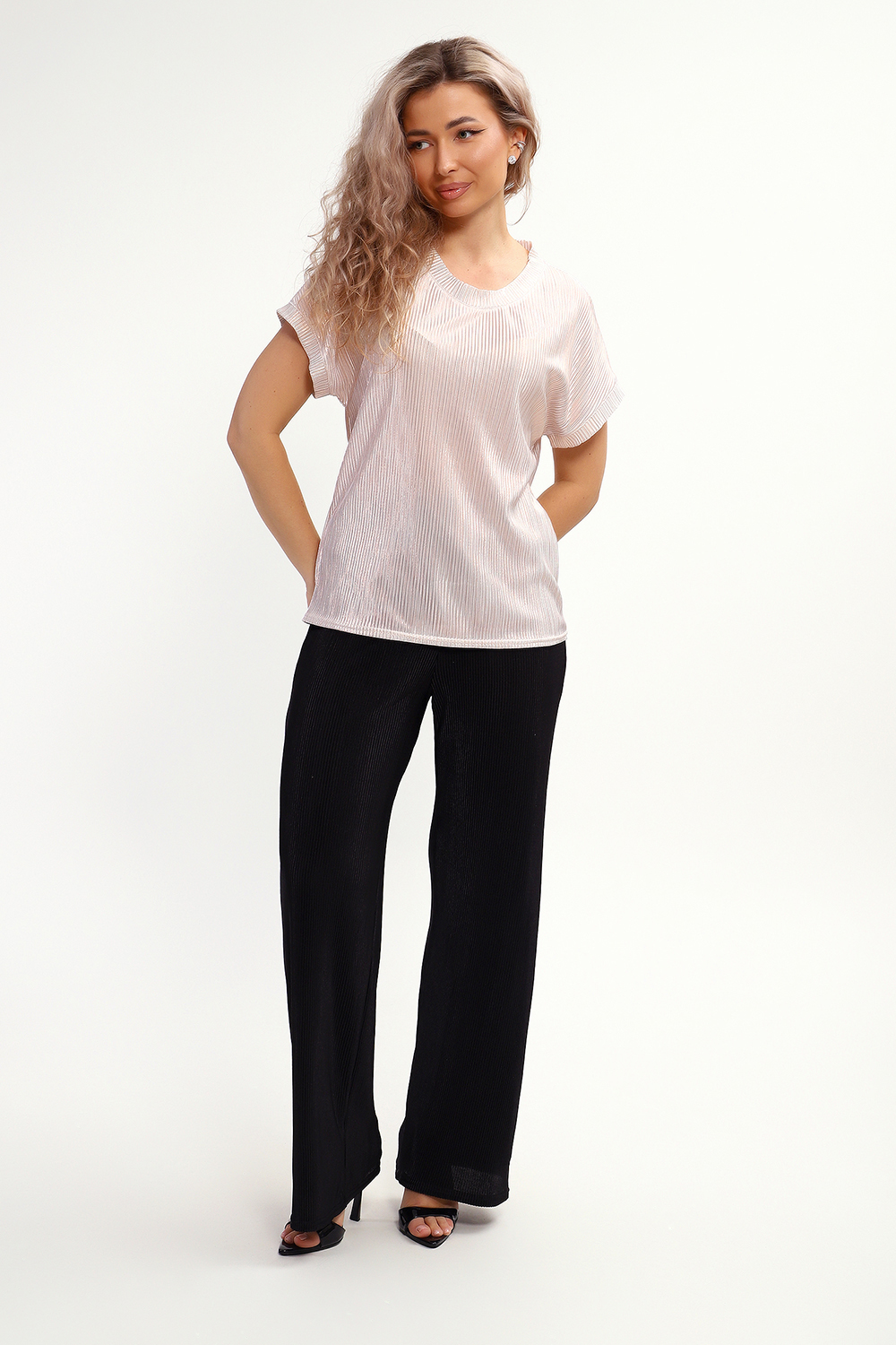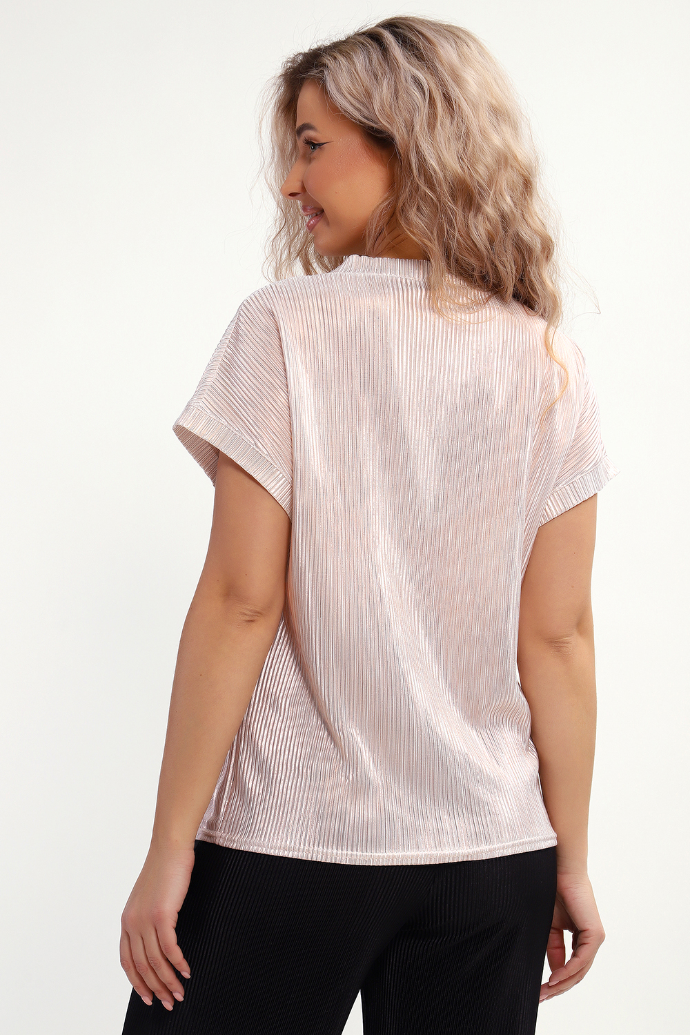 Стильная нарядная блузка, сочетающая в себе комфорт и элегантность. Благодаря свободному крою, блузка создает легкий силуэт и деликатно скрывает особенности фигуры. Добавляет изюминку изделию блестящая ткань с прочным напылением фойл, которое отлично держится на ткани после стирки. Ткань атлас гофре приятна на ощупь, хорошо тянется, не мнется, держит форму. Блузка смотрится и как офисная, и как вечерняя модель, а также это отличный вариант для летнего наряда. Округлая горловина, обработанная обтачкой, подчеркивает женственность образа, спущенный рукав не стесняет движений. Нарядная блузка позволит вам эффектно выглядеть не только на праздничных мероприятиях, но и в будни.