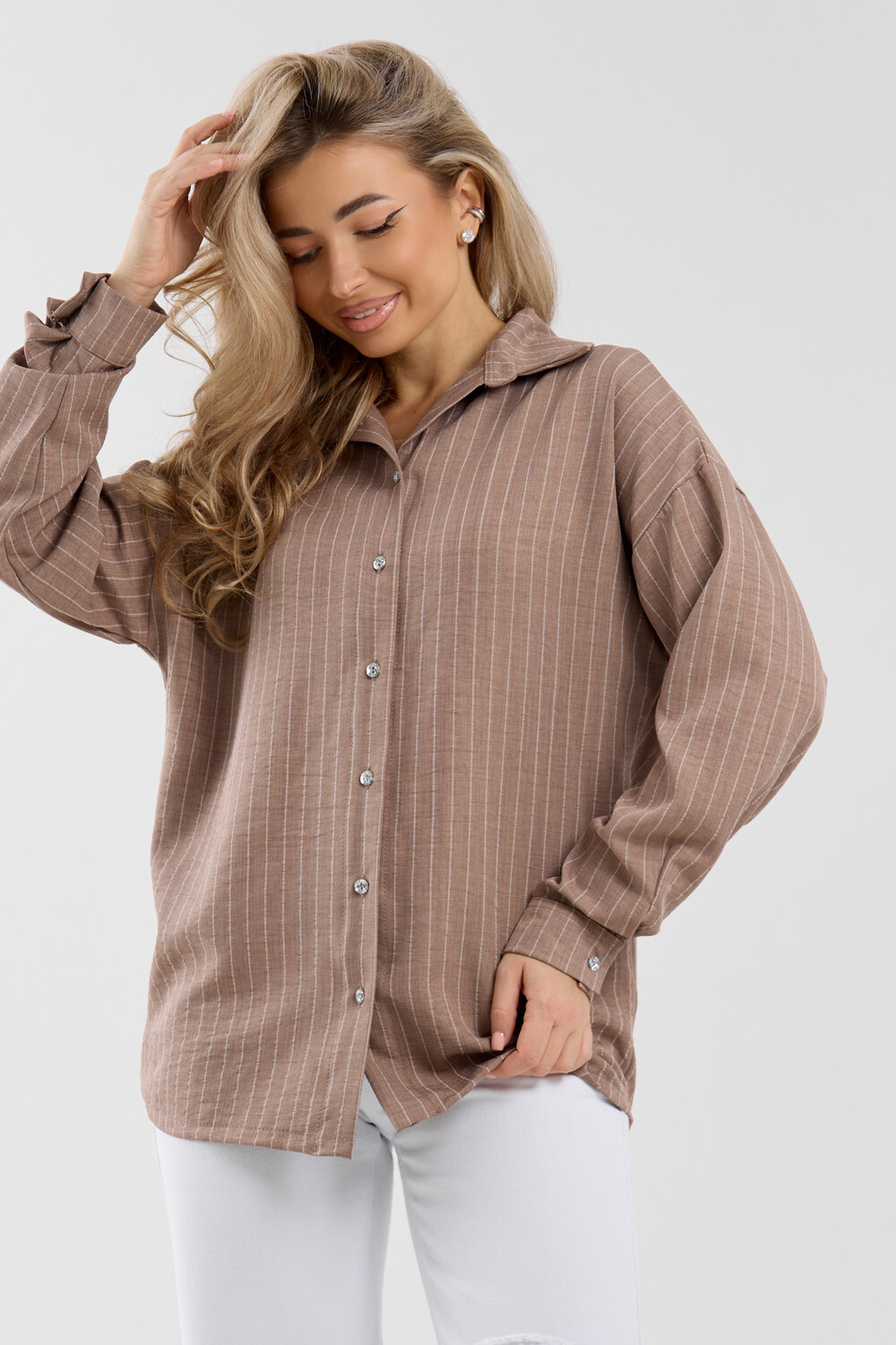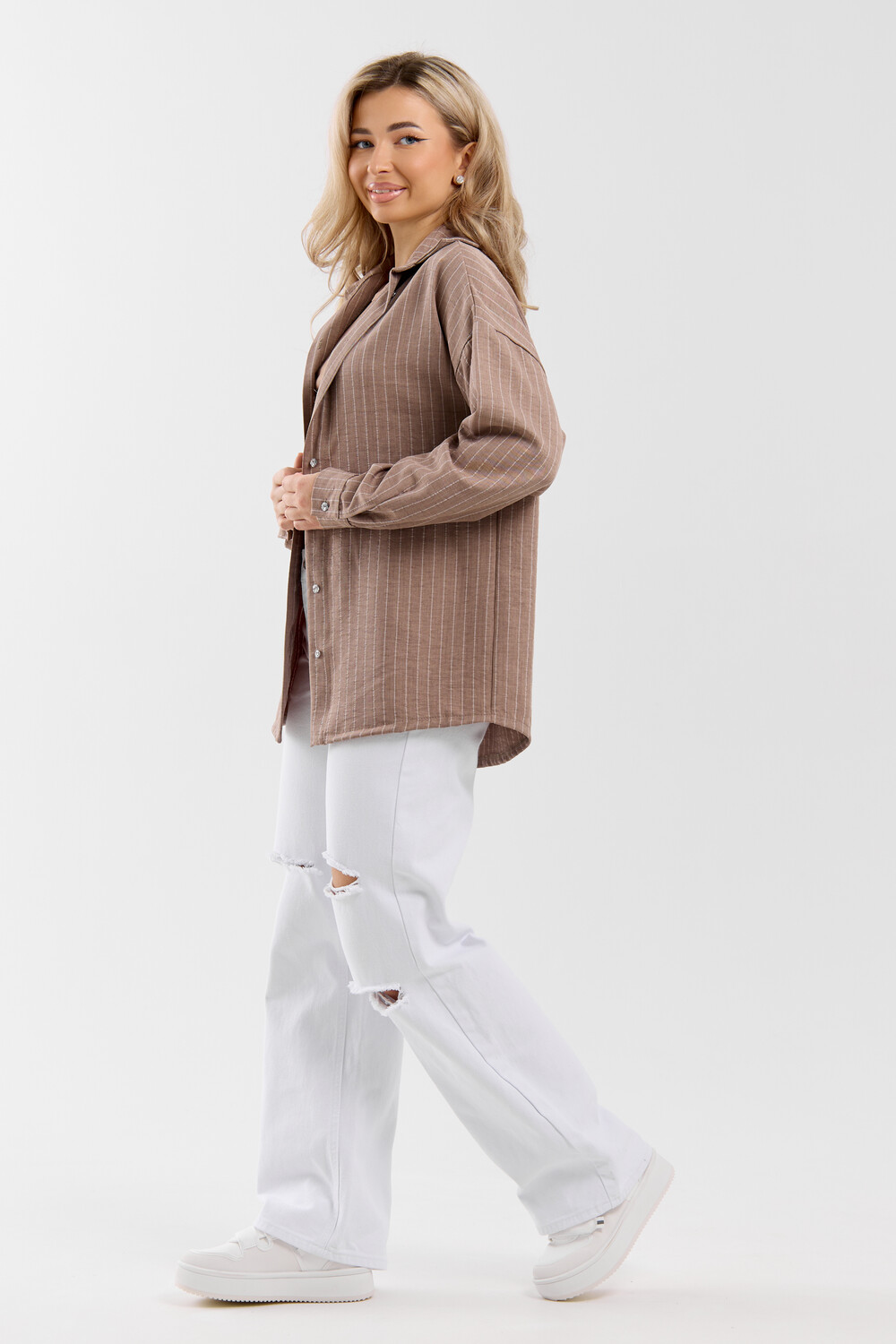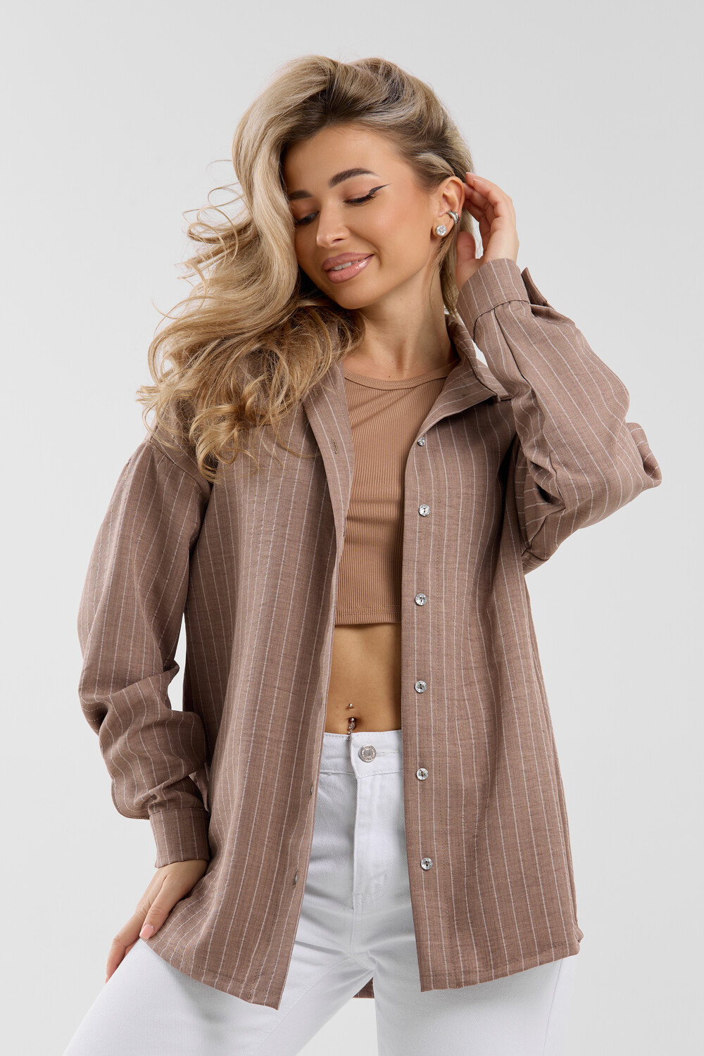 Модная рубашка в стиле oversize выполнена из качественного льняного материала в полоску. Рубашка такого плана делает любой образ уникальным и выразительным. Полоса будет самой актуальной в этом сезоне. Главное преимущество полосы —это стройность вашего силуета, поэтому вам не придется переживать за целостность образа. Но будьте осторожны — в комплект к моделям с полосой лучше выбирать однотонные вещи, чтобы не перегружать лук. Это одна из самых модных и популярных моделей сезона. Рубашка имеет слегка удлинённую спинку, спущенную линию плечевого шва, классический рубашечный воротник со стойкой, планку и манжеты на пуговках. За счёт свободного фасона рубашку можно носить с любым типом фигуры, отлично подойдёт для беременных женщин, а также кормящих мам. Женская льняная рубашка идеальна как для лета, так и для прохладного вечера. С помощью такой рубашки Вы можете создать деловой образ или летний расслабленный. А также отправиться на праздник или вечеринку, на прогулку, на пляж или провести незабываемый вечер дома. Модель такого плана идеально подойдёт и в качестве подарка для себя и своих любимых! Современная туника - это почти неотъемлемая часть гардероба любой женщины, которая сделает Вас неотразимой в любой ситуации.