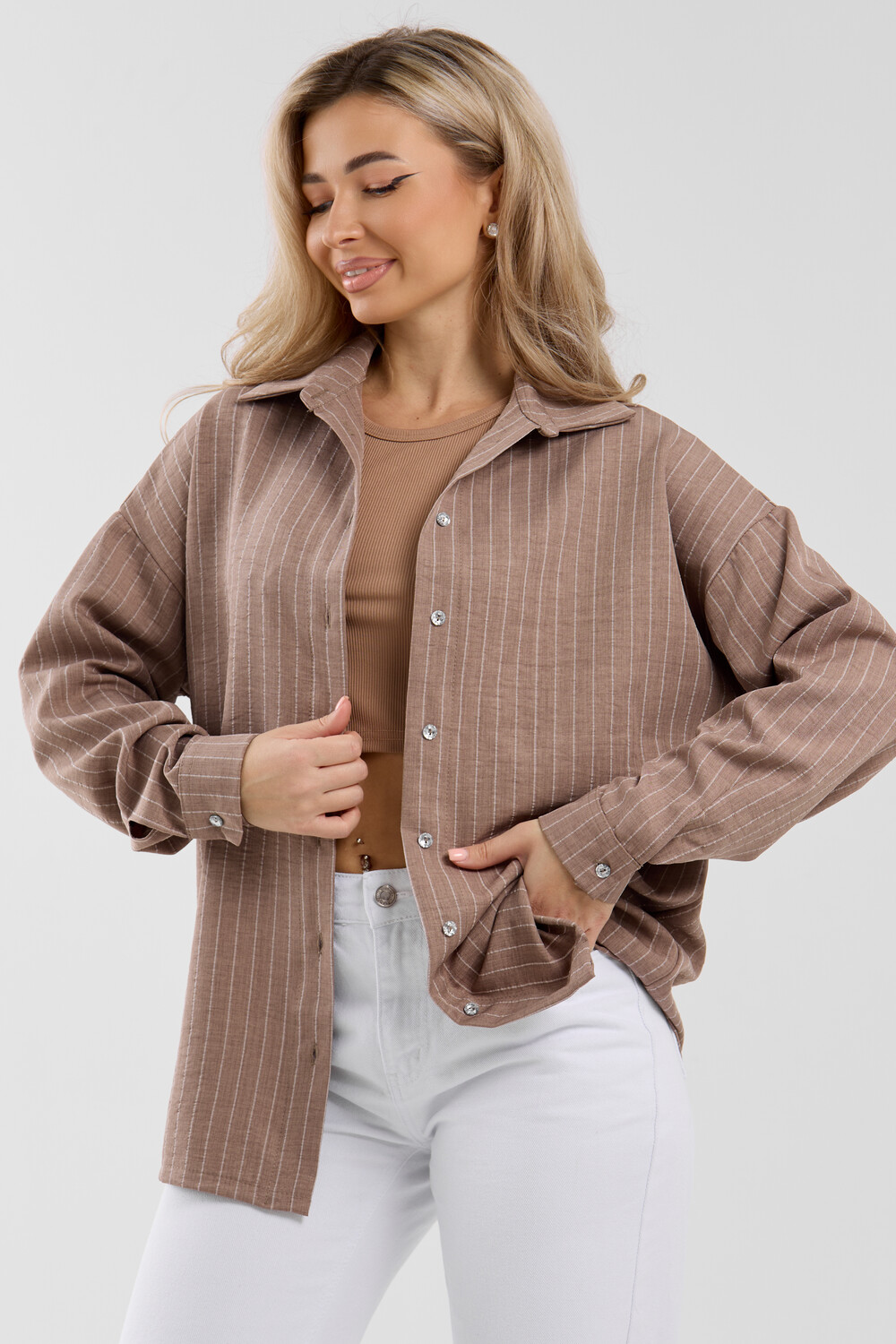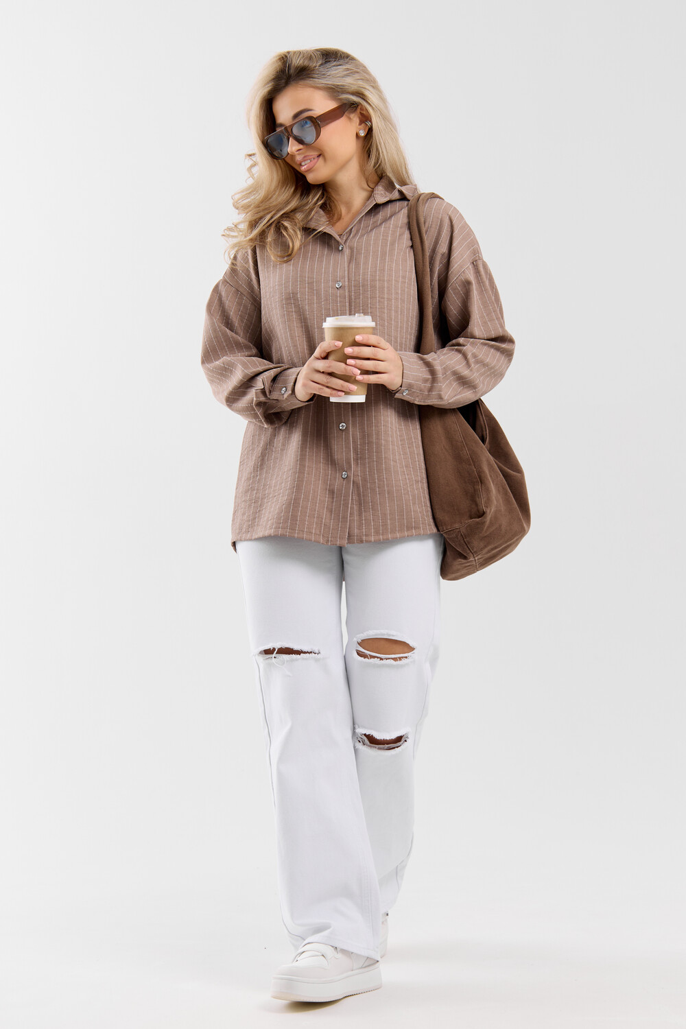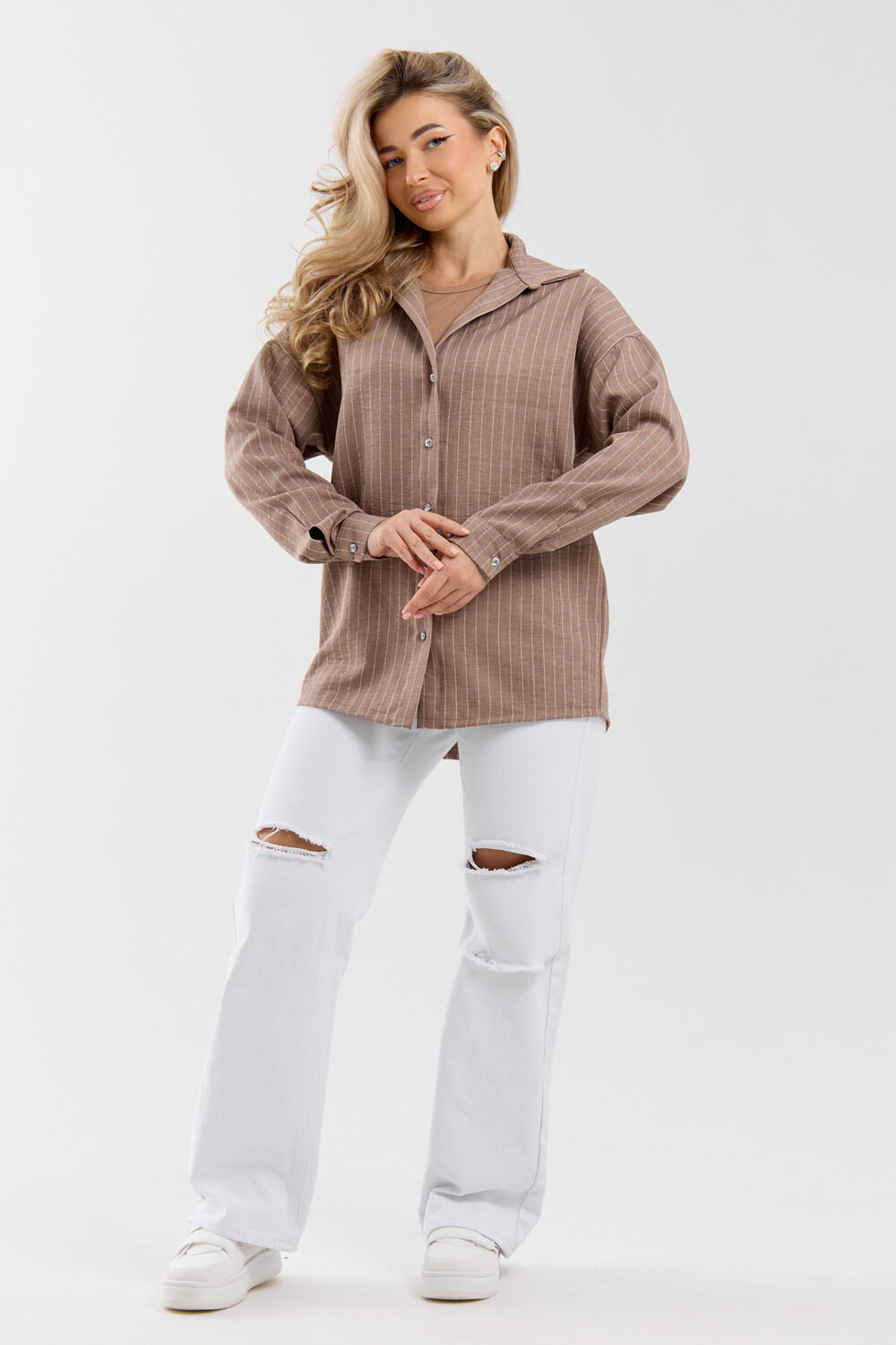 Модная рубашка в стиле oversize выполнена из качественного льняного материала в полоску. Рубашка такого плана делает любой образ уникальным и выразительным. Полоса будет самой актуальной в этом сезоне. Главное преимущество полосы —это стройность вашего силуета, поэтому вам не придется переживать за целостность образа. Но будьте осторожны — в комплект к моделям с полосой лучше выбирать однотонные вещи, чтобы не перегружать лук. Это одна из самых модных и популярных моделей сезона. Рубашка имеет слегка удлинённую спинку, спущенную линию плечевого шва, классический рубашечный воротник со стойкой, планку и манжеты на пуговках. За счёт свободного фасона рубашку можно носить с любым типом фигуры, отлично подойдёт для беременных женщин, а также кормящих мам. Женская льняная рубашка идеальна как для лета, так и для прохладного вечера. С помощью такой рубашки Вы можете создать деловой образ или летний расслабленный. А также отправиться на праздник или вечеринку, на прогулку, на пляж или провести незабываемый вечер дома. Модель такого плана идеально подойдёт и в качестве подарка для себя и своих любимых! Современная туника - это почти неотъемлемая часть гардероба любой женщины, которая сделает Вас неотразимой в любой ситуации.