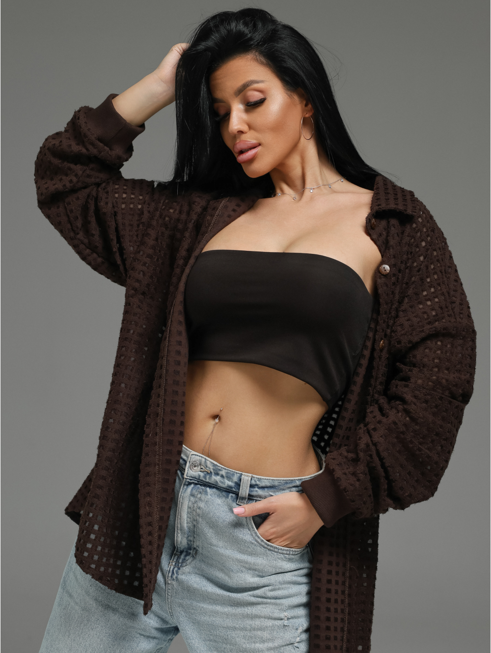 Характер: Уютная, фактурная рубашка, которая объединяет расслабленный крой, интересный дизайн