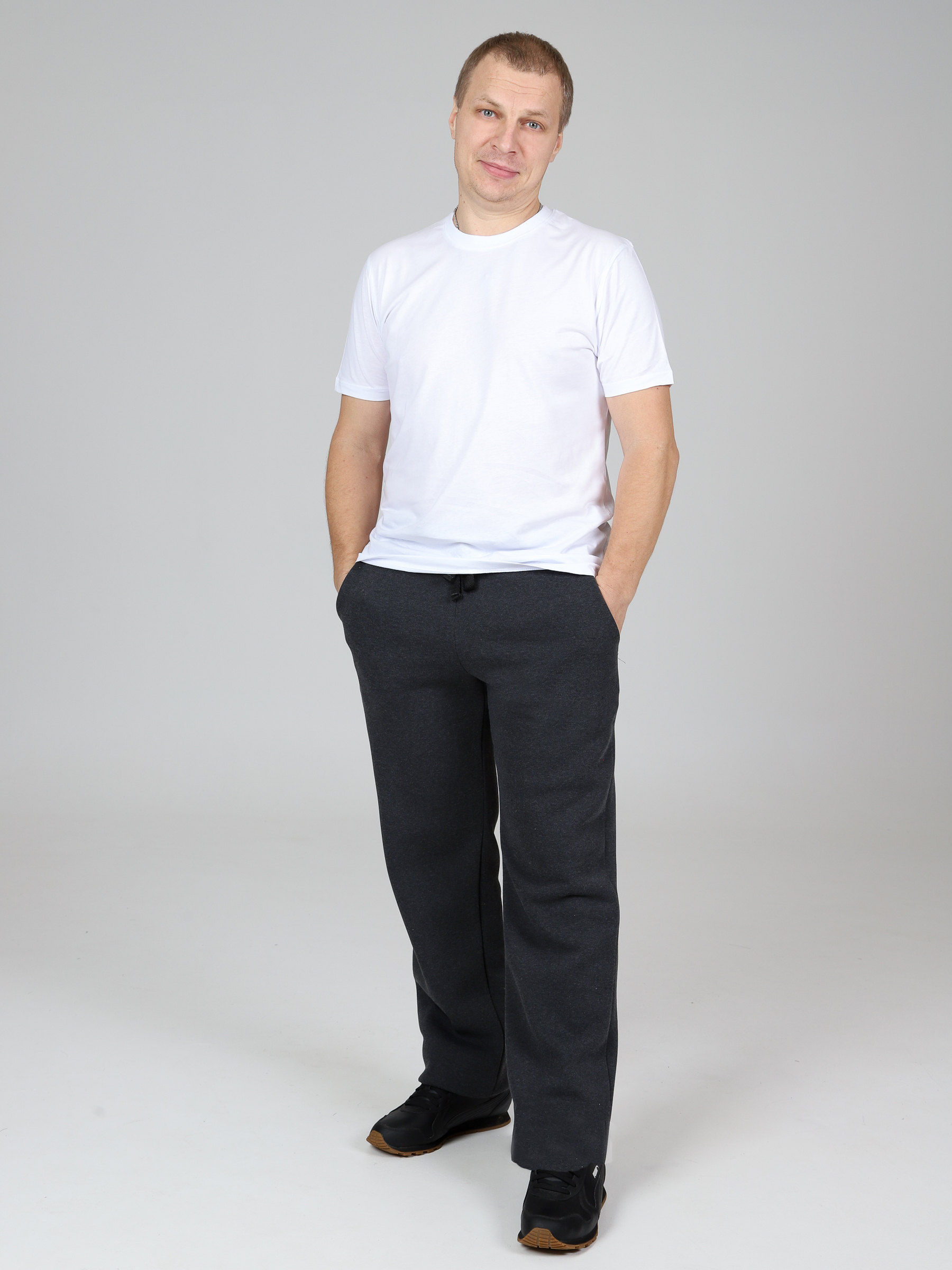 Брюки футер с начесом мужские, на резинке и регулирующих завязках. Сбоку по шву удобные и глубокие карманы. Уникальное сочетание высокого качества и стильного фасона. Однотонные прямые брюки – базовая вещь в мужском гардеробе, впишутся в любой стиль милитари, casual, спортивный. В наших брюках настолько тепло и комфортно, что Вы не захотите их снимать. Начес на изнаночной стороне очень приятен телу. Идеально подходят для повседневной носки, для прогулок с коляской, на работу, на рыбалку и для спортивных занятий.