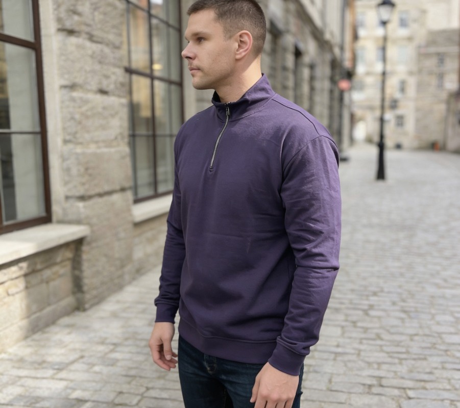 Мужской джемпер - надёжный спутник в любом сценарии. Однотонный дизайн легко комбинируется с джинсами, чиносами или шортами. Короткая молния придаёт модели современный акцент, а манжеты обеспечивают комфортную посадку. Материал — качественный футер‑двухнитка: дышит, не теряет форму и дарит ощущение уюта.
