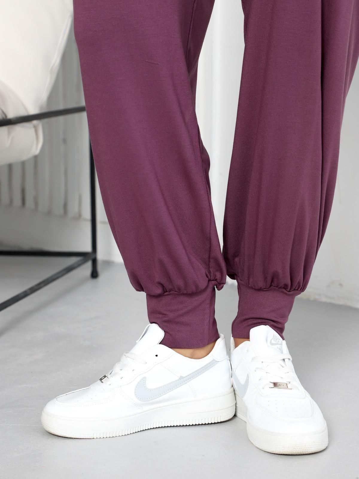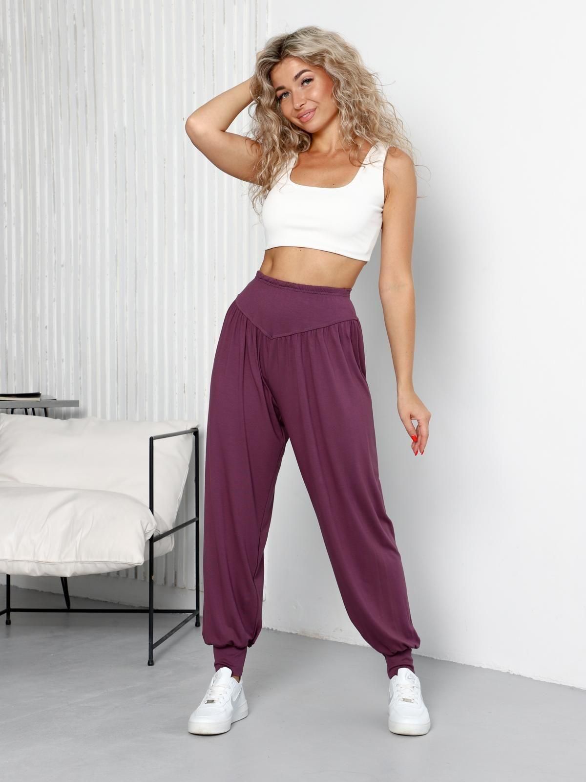 Женские брюки-шаровары Чанита выполнены из трикотажного полотна "вискоза". Широкие брюки, присборенные сверху на поясе-кокетке фигурной формы, внутри которого прикреплена эластичная лента и внизу на высокие манжеты.