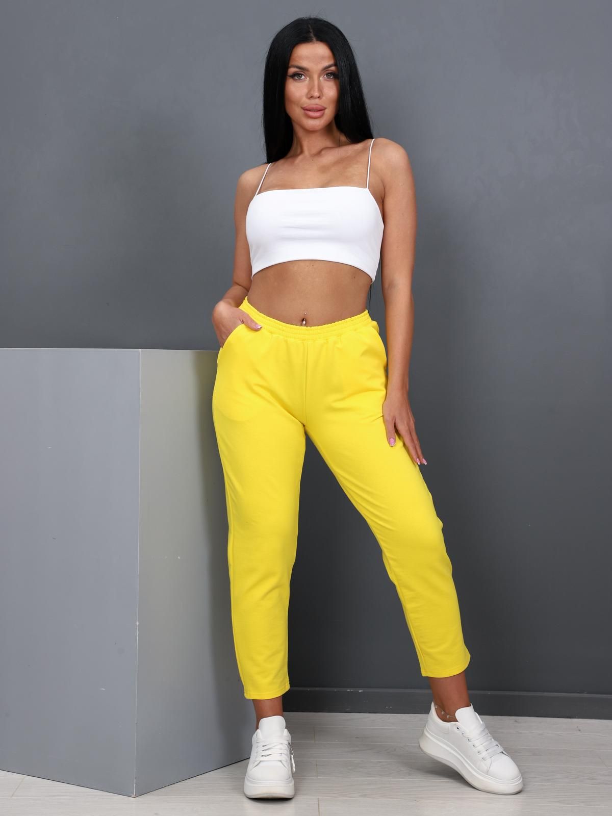 Женские брюки с карманами из футера с лайкрой.