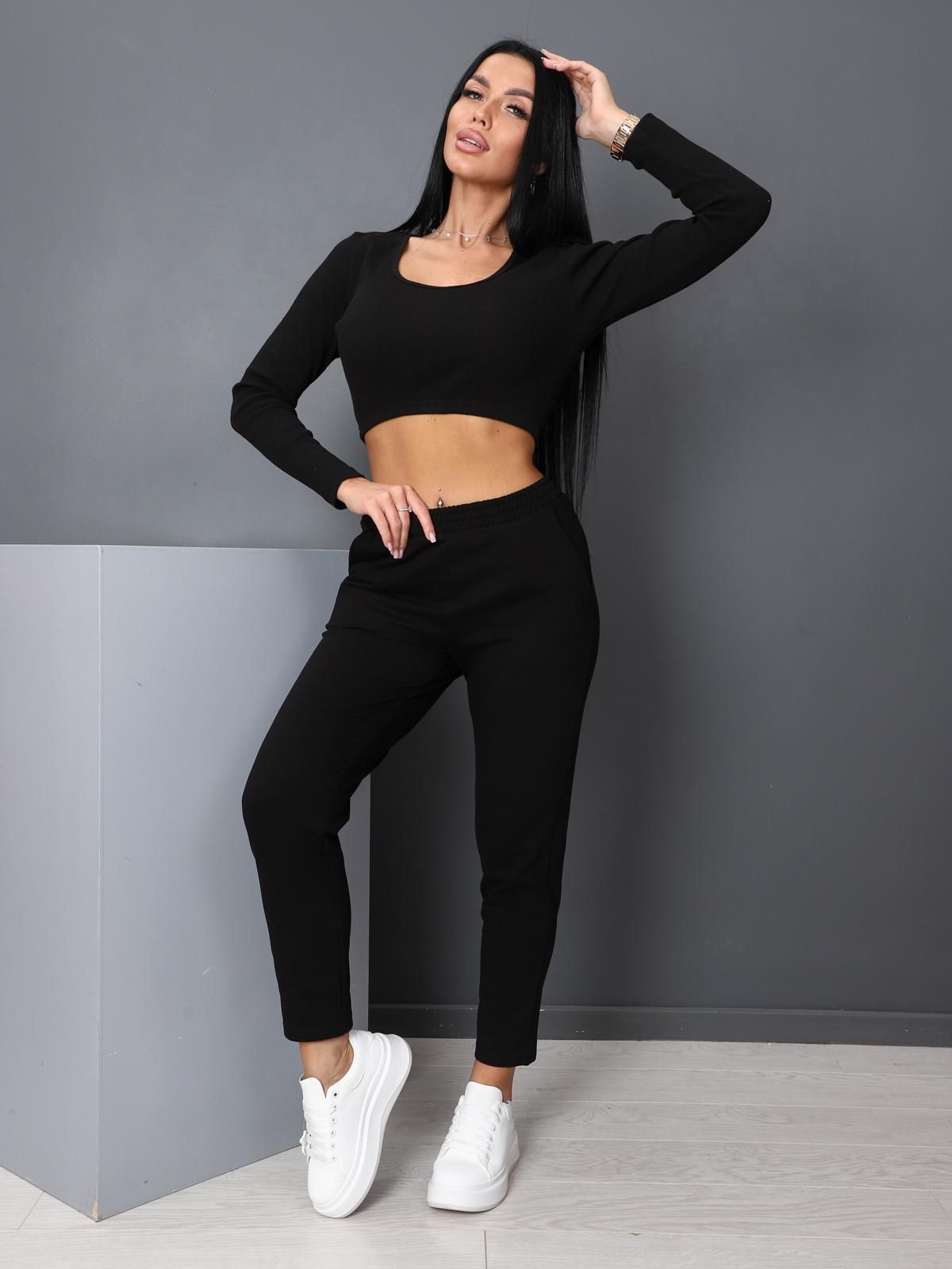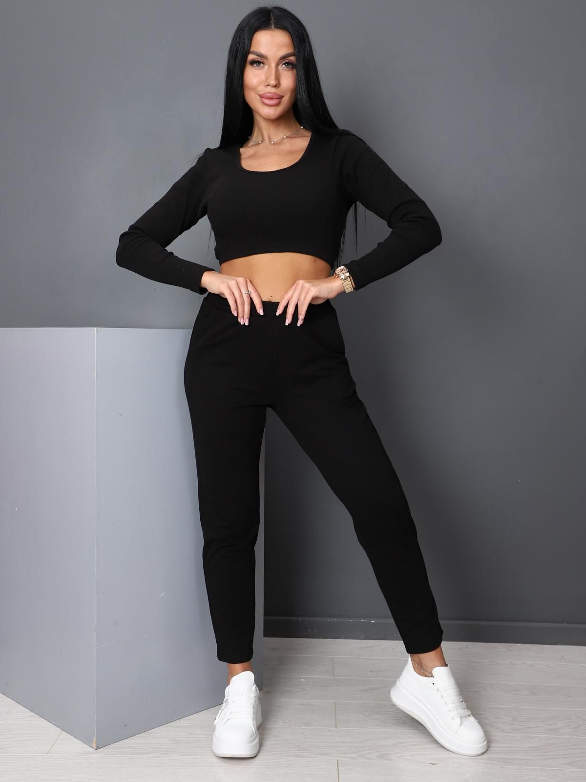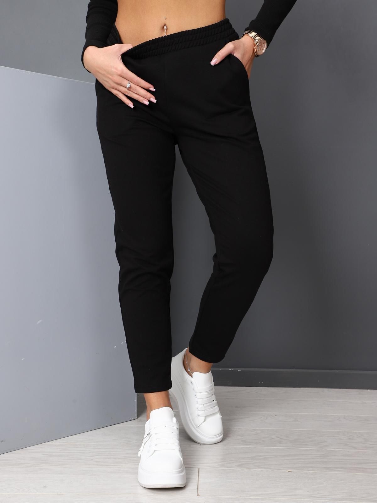 Женские брюки с карманами из футера с лайкрой.