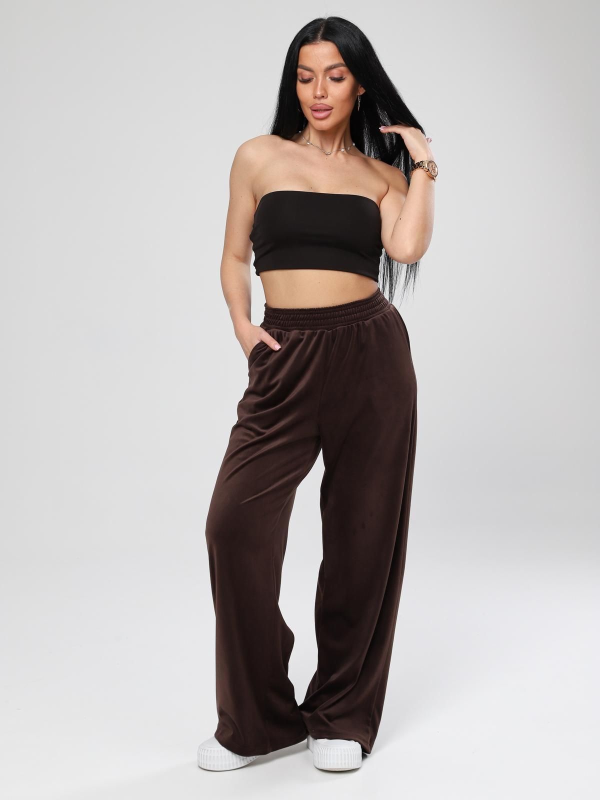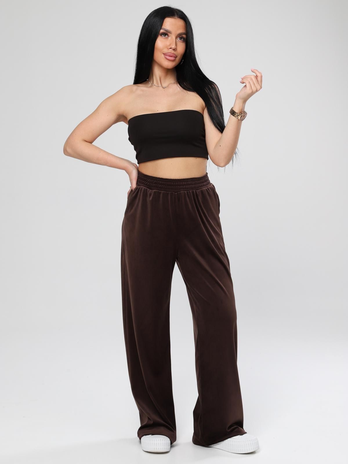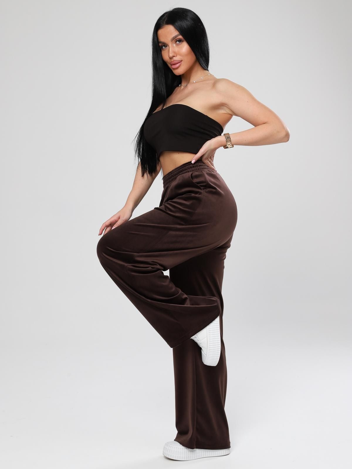 Женские велюровые брюки свободного кроя. Подходят для домашнего отдыха, прогулок, неформальных встреч, занятий лёгкими видами спорта.