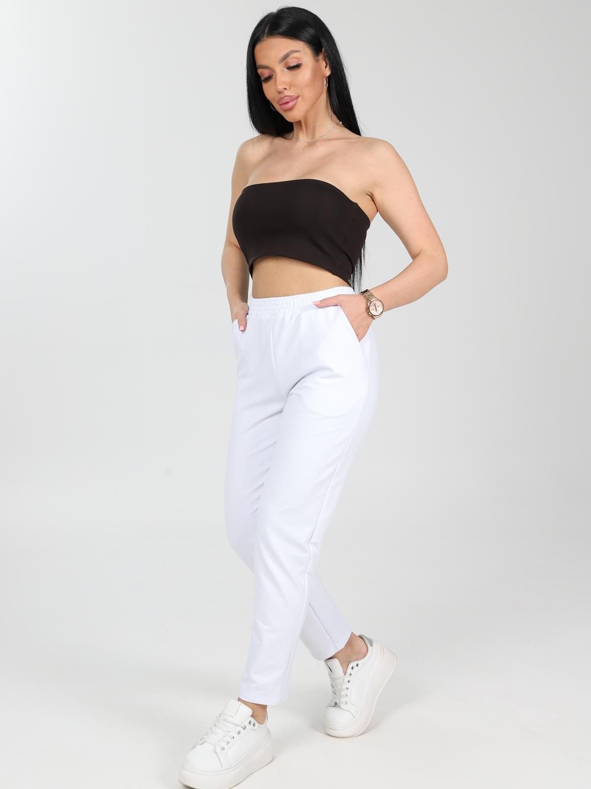 Женские брюки из футера — это трикотажная одежда, изготовленная из плотной ткани. Футер — мягкий, эластичный и прочный материал, который хорошо держит форму, не мнётся и не деформируется после стирки. Он обеспечивает комфорт и тепло, поэтому брюки из него подходят для повседневной носки, спорта и домашнего использования.