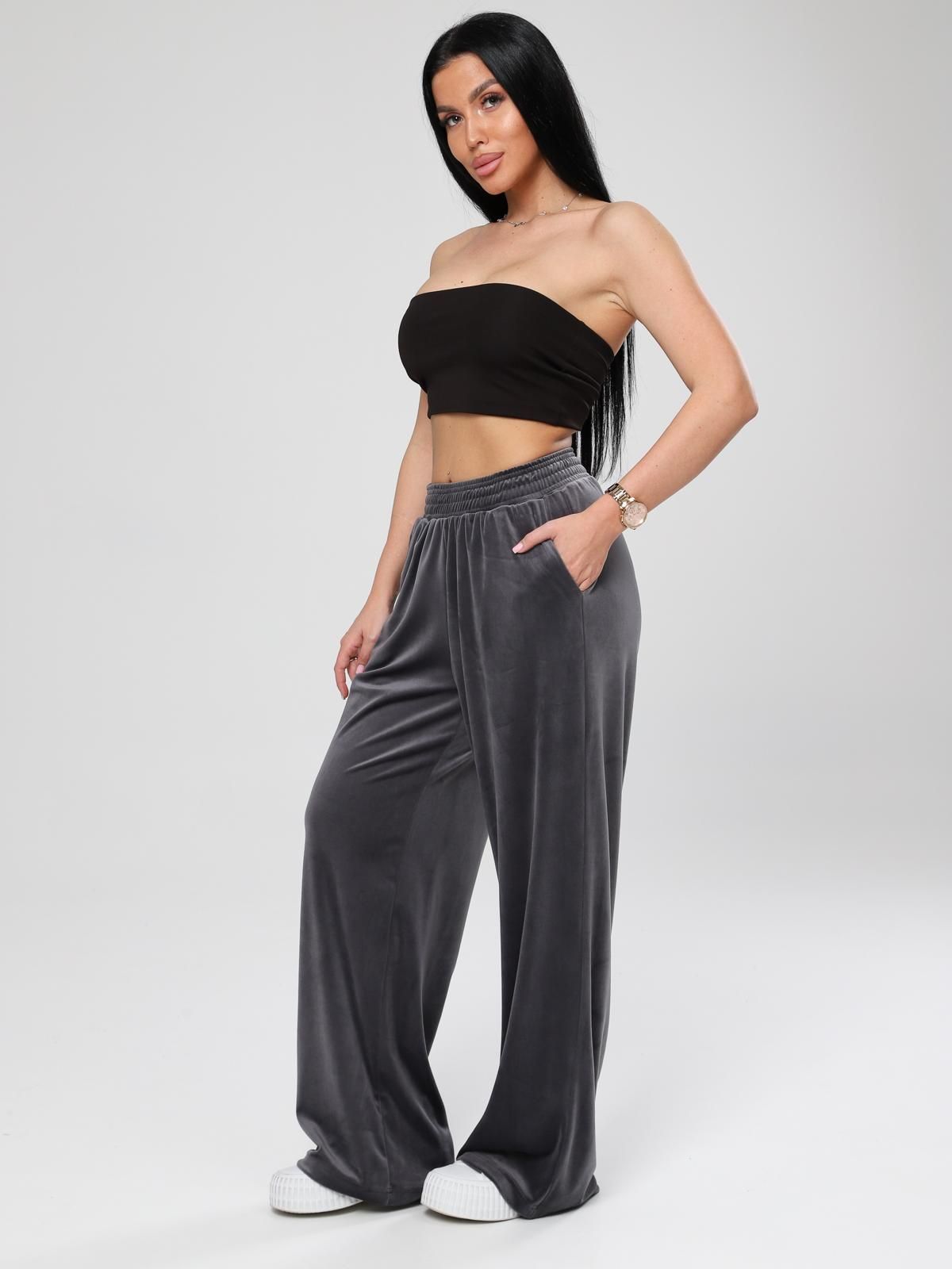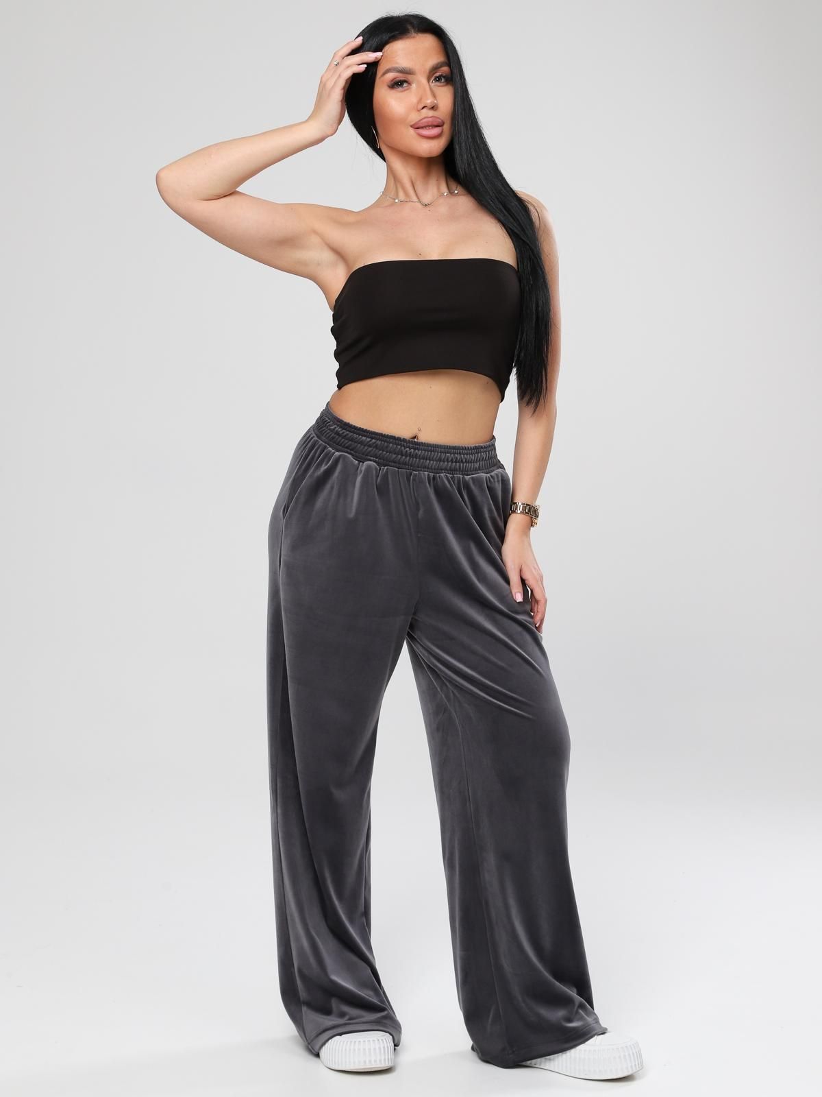 Женские велюровые брюки свободного кроя. Подходят для домашнего отдыха, прогулок, неформальных встреч, занятий лёгкими видами спорта.