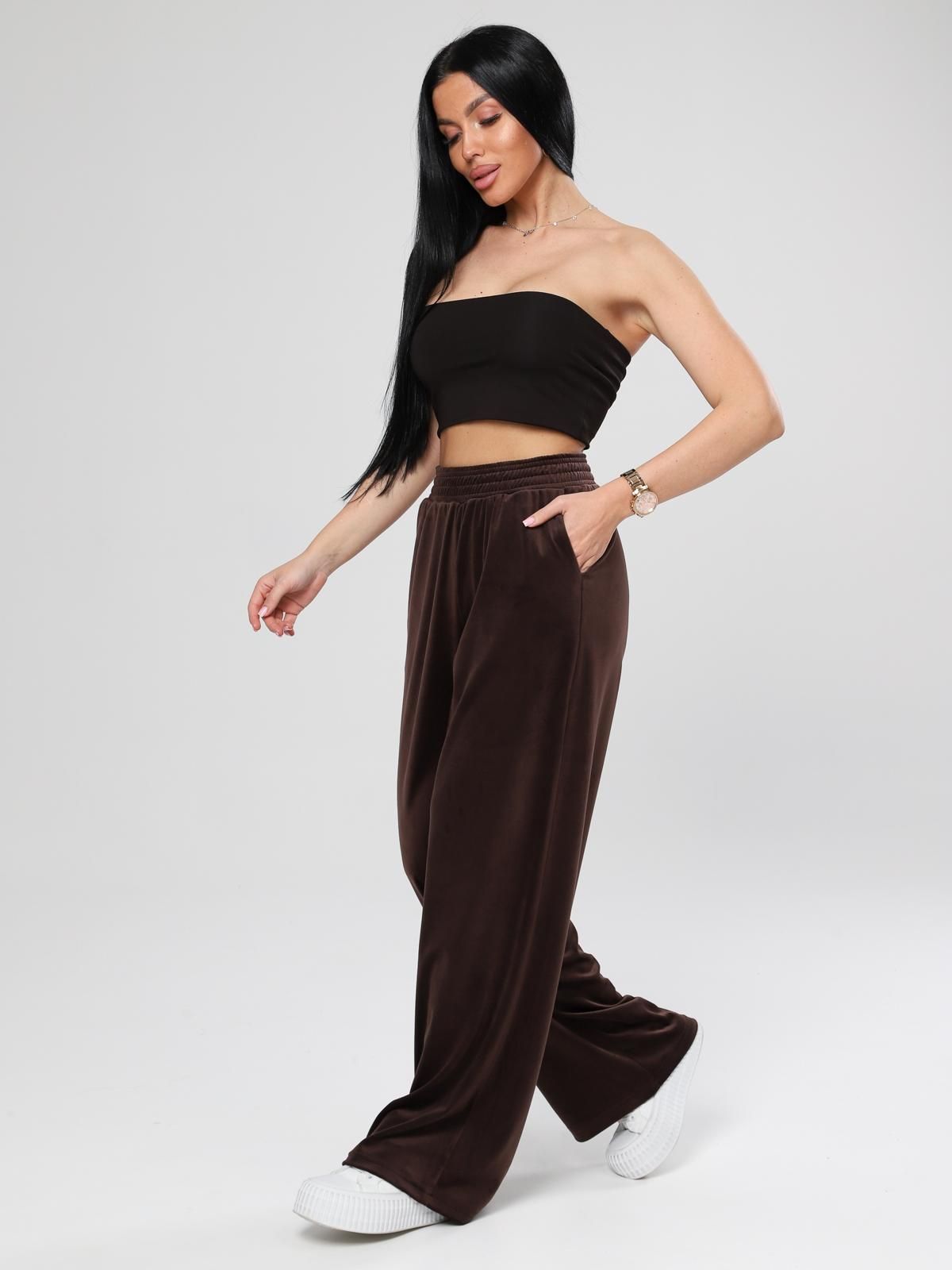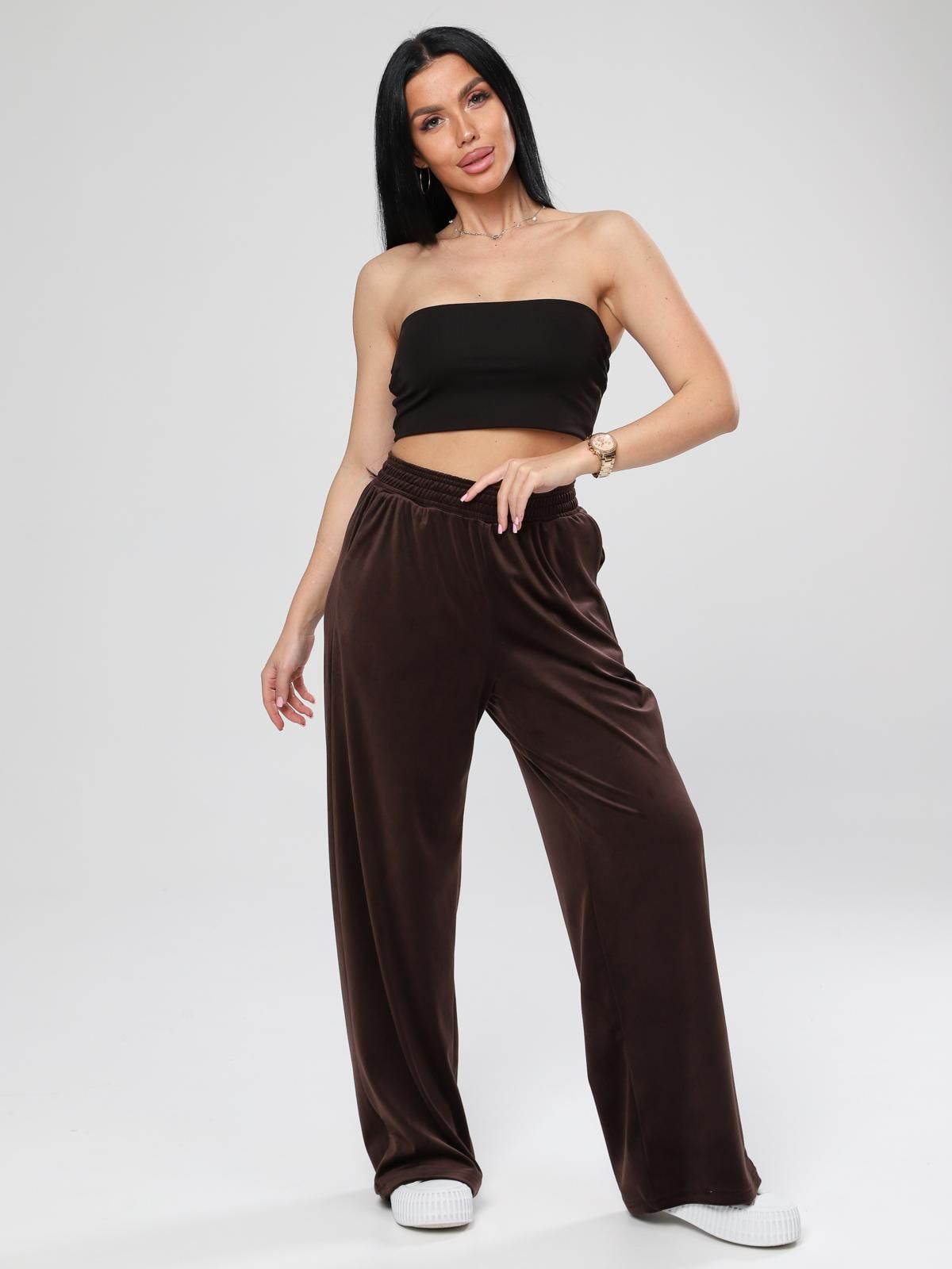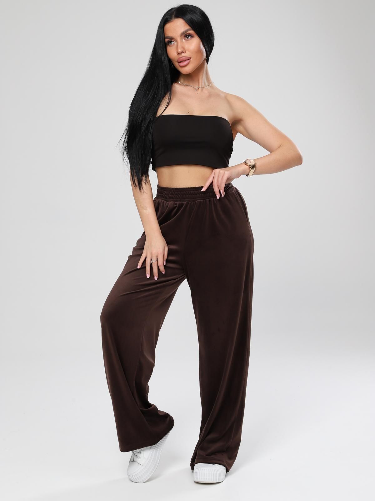 Женские велюровые брюки свободного кроя. Подходят для домашнего отдыха, прогулок, неформальных встреч, занятий лёгкими видами спорта.