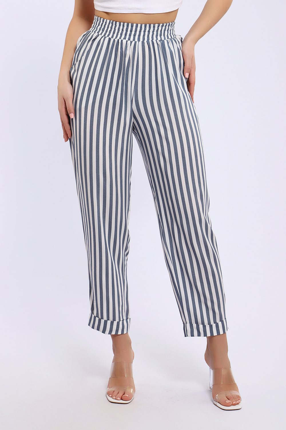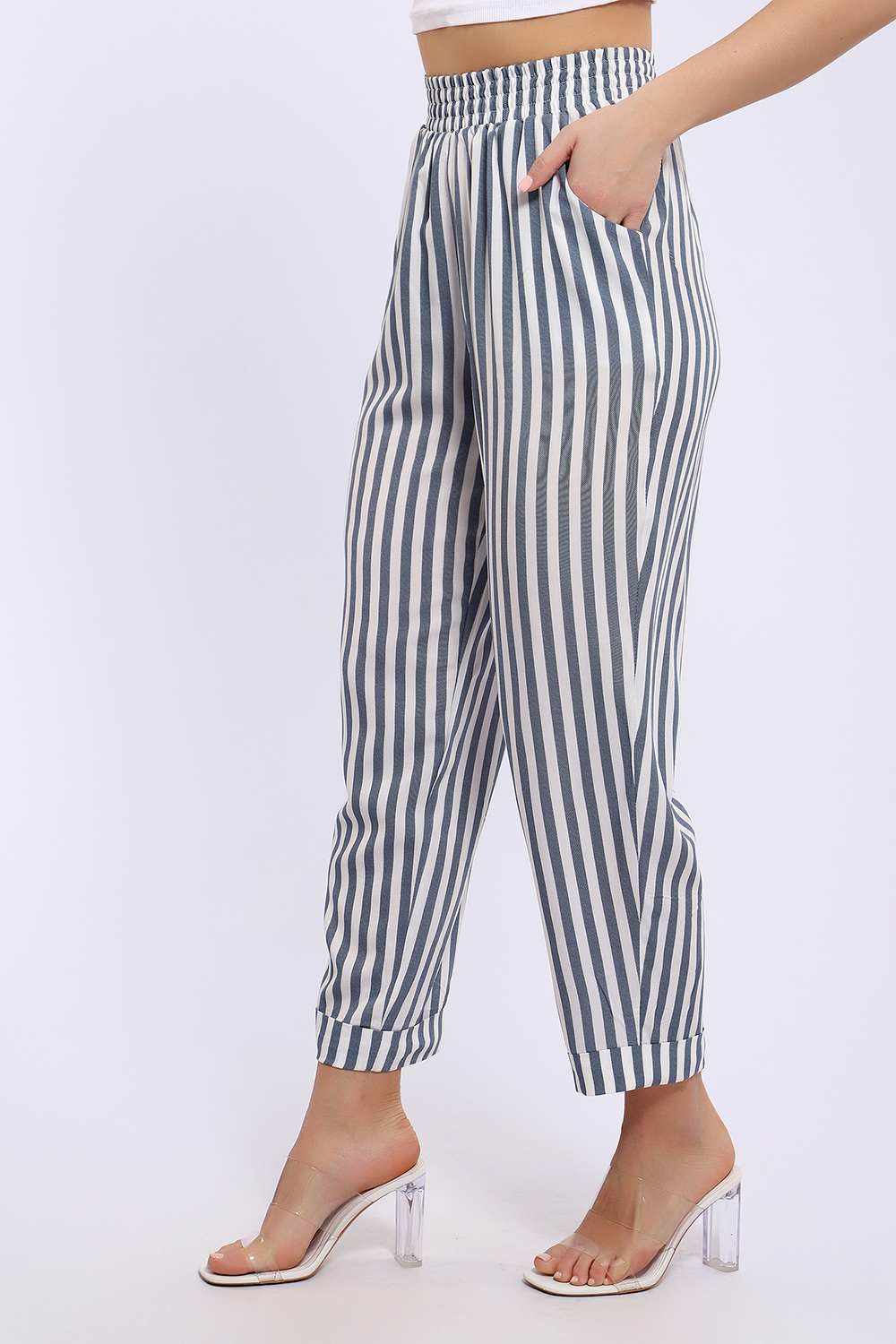 Летние женские брюки из тонкой воздухопроницаемой ткани штапель. Брюки свободного кроя, слегка зауженные к низу, имеют полуприлегающий силуэт. Нетугая резинка пояса позволяет регулировать посадку так, как вам удобно. Ткань штапель, состоящая из 100% вискозы не тянется, поэтому рекомендуем заказывать на размер больше того, который соответствует вашим меркам.