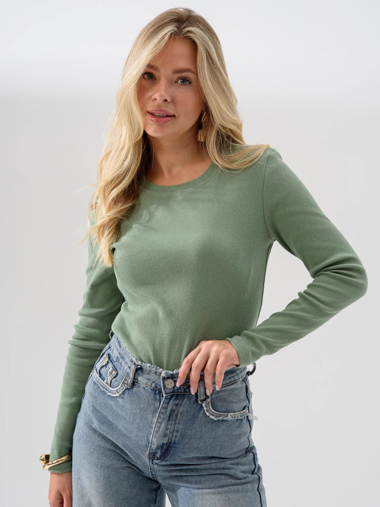 Лонгслив 2382-Каш / Зеленый выполнен из качественного трикотажного полотна кашкорсе, который отличается особой эластичностью и комфортом при носке.