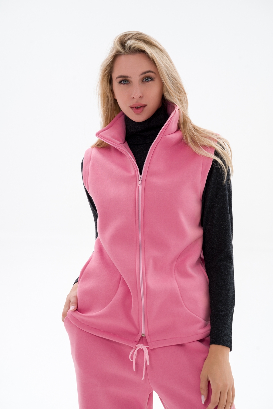 Женский жилет из футера — это практичная и уютная вещь, которая сочетает комфорт и стиль. Футер — трикотажная ткань с гладкой лицевой стороной и махровой изнанкой.