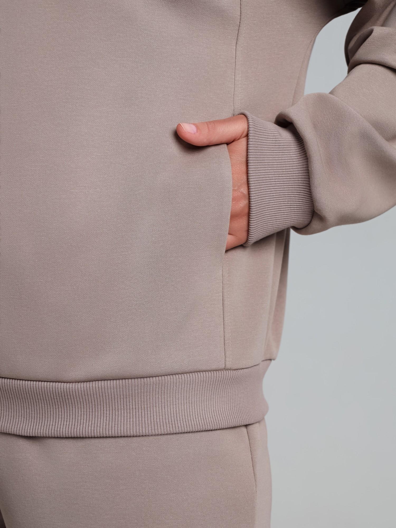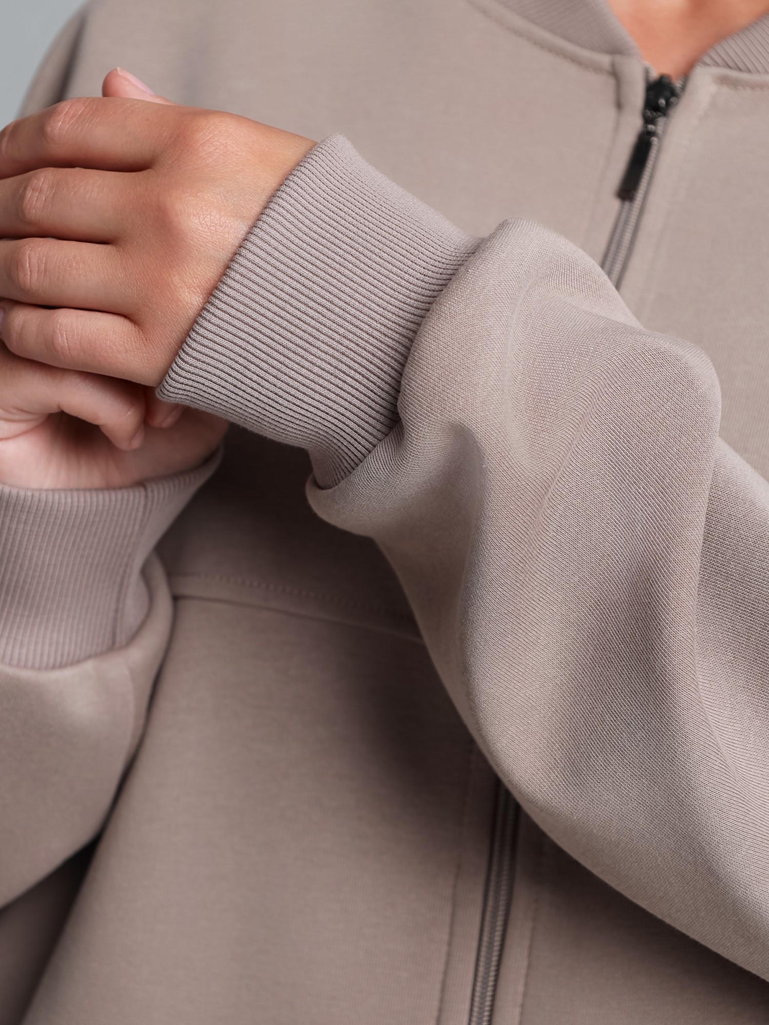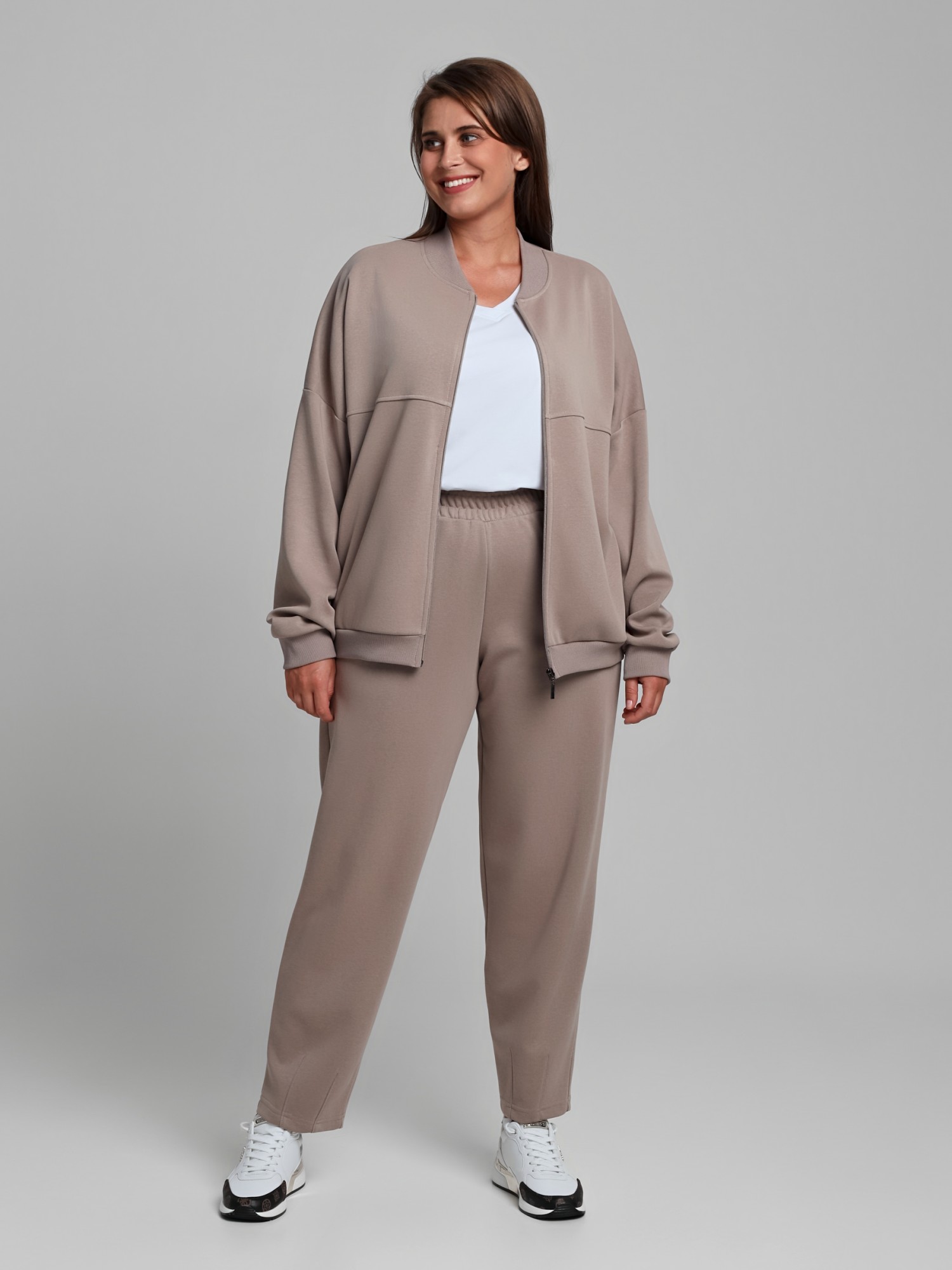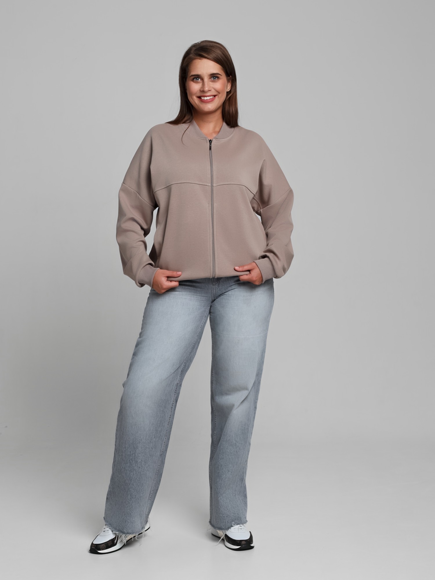 Куртка – женская из гладкокрашенного трикотажного полотна «лининг» прямого силуэта, свободная, с длинными втачными рукавами, горловиной овальной формы, обработанной втачной планкой, центральной бортовой застежкой на тесьму «молния». Полочка состоит из трех деталей, на нижней части в рельефах выполнены карманы, низ изделия с притачным поясом, рукава с притачными манжетами. Пояс, планка горловины, манжеты рукавов выполнены из трикотажного полотна «кашкорсе».