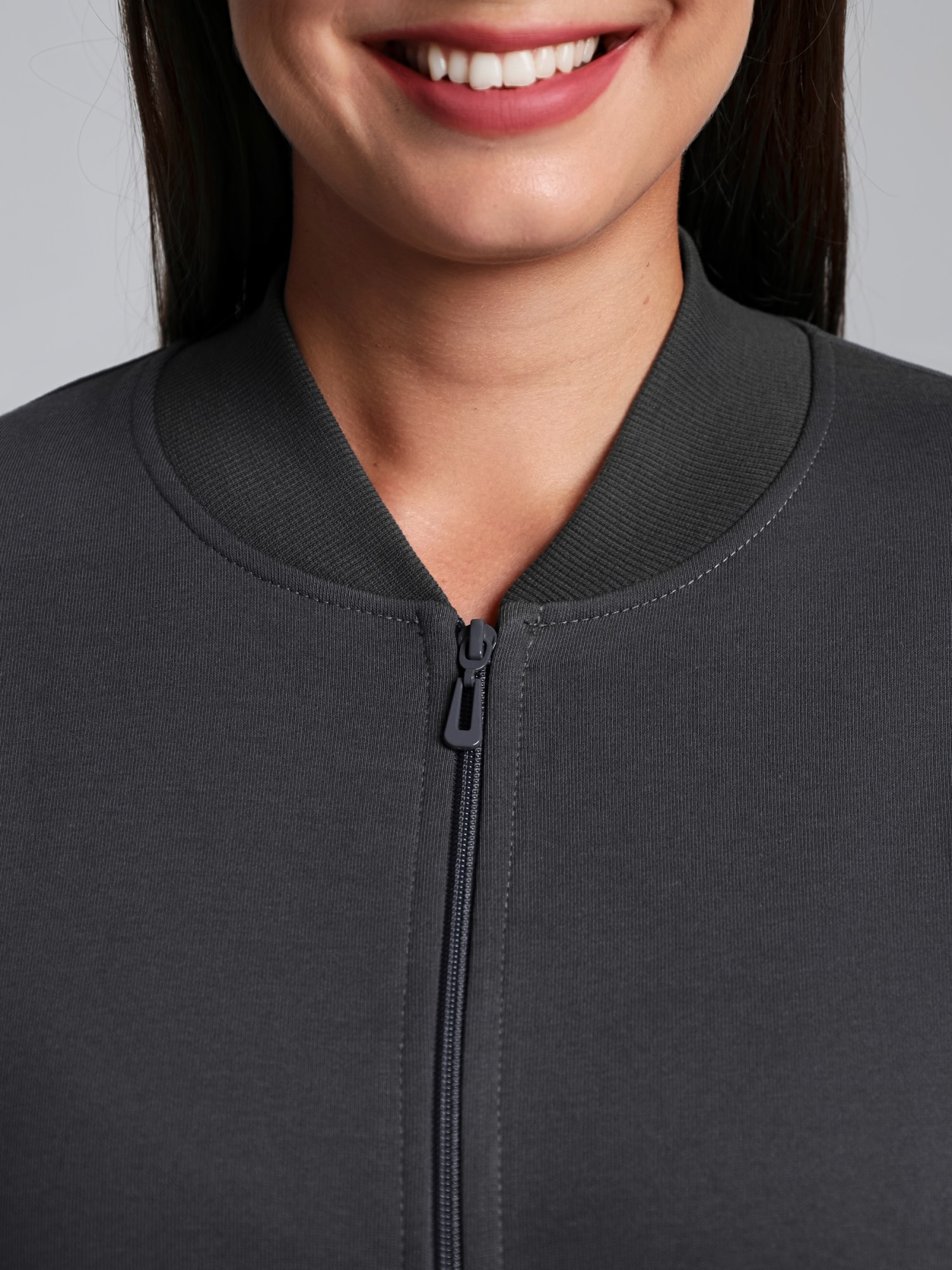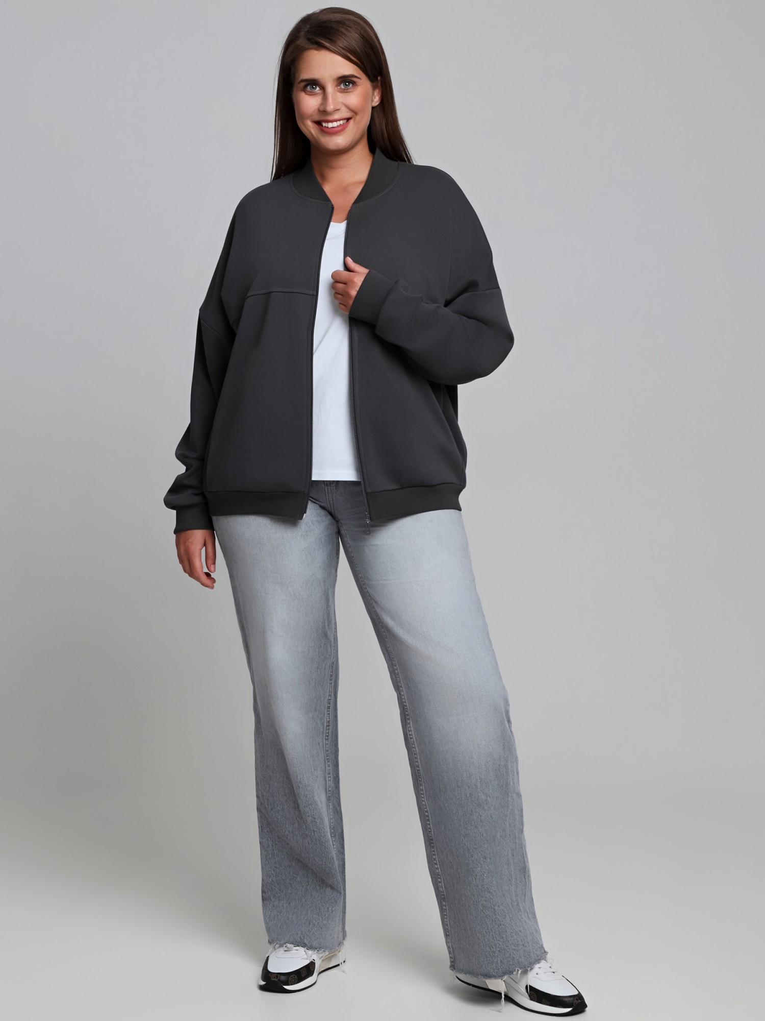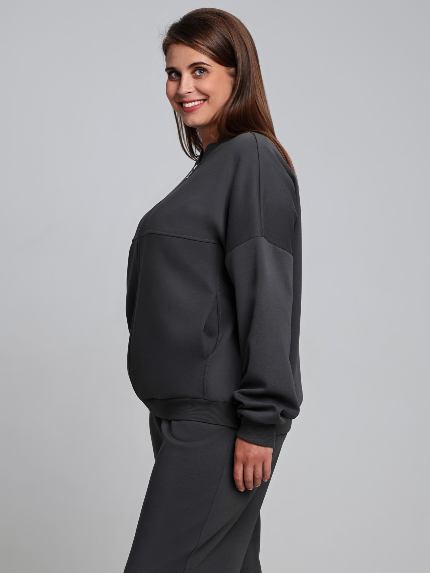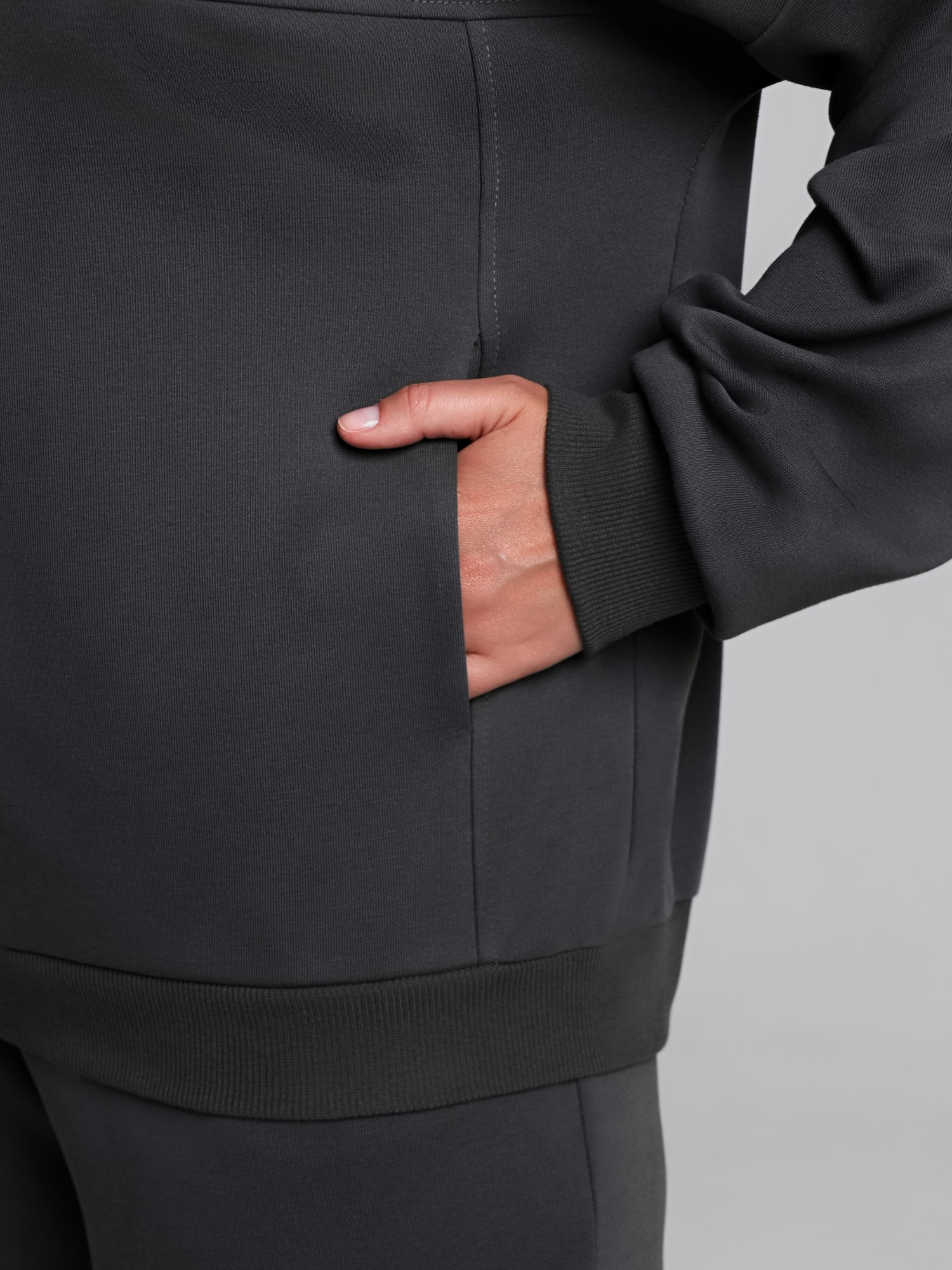 Куртка – женская из гладкокрашенного трикотажного полотна «лининг» прямого силуэта, свободная, с длинными втачными рукавами, горловиной овальной формы, обработанной втачной планкой, центральной бортовой застежкой на тесьму «молния». Полочка состоит из трех деталей, на нижней части в рельефах выполнены карманы, низ изделия с притачным поясом, рукава с притачными манжетами. Пояс, планка горловины, манжеты рукавов выполнены из трикотажного полотна «кашкорсе».