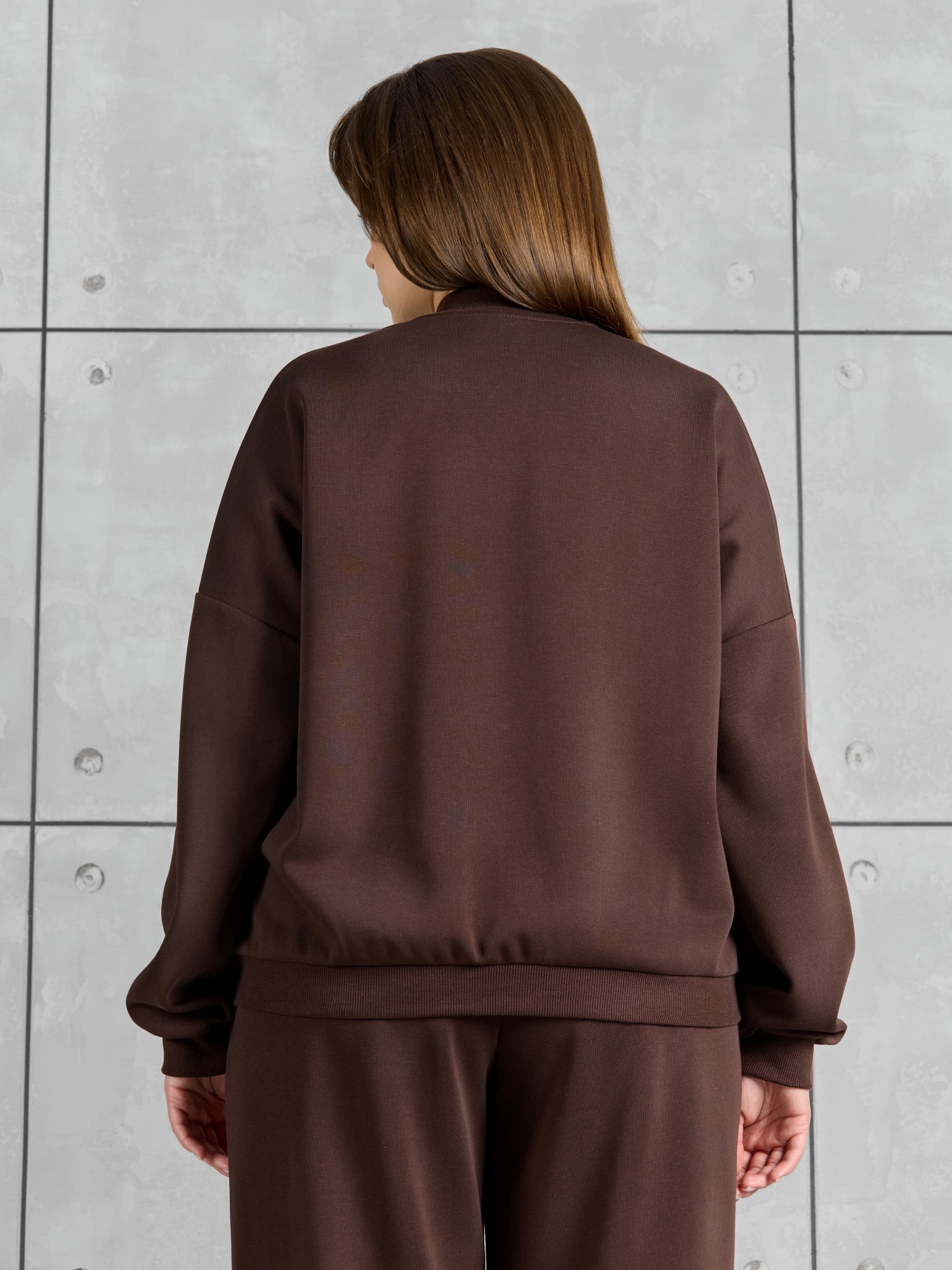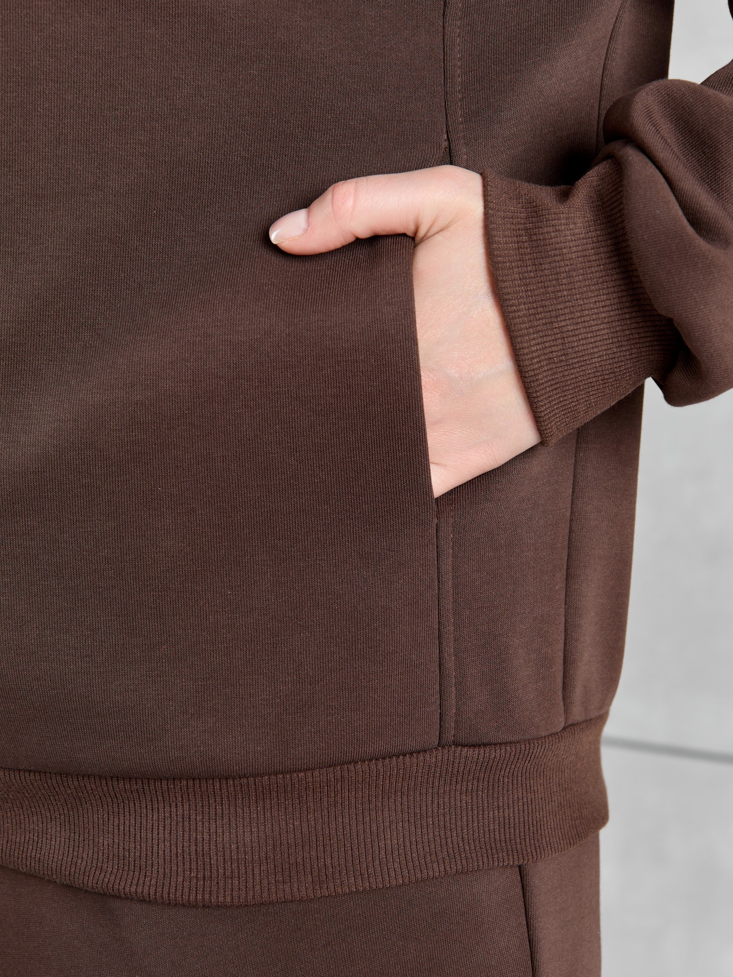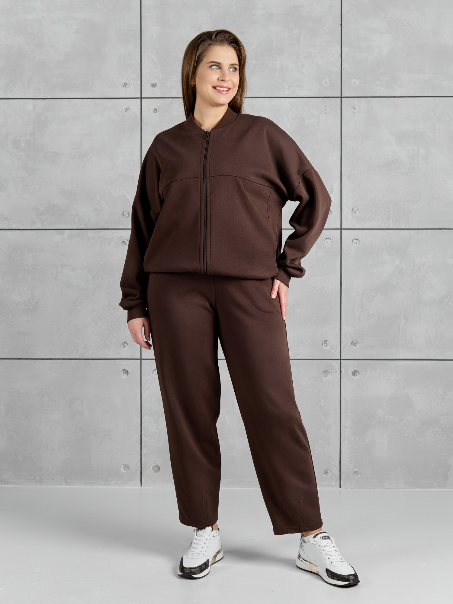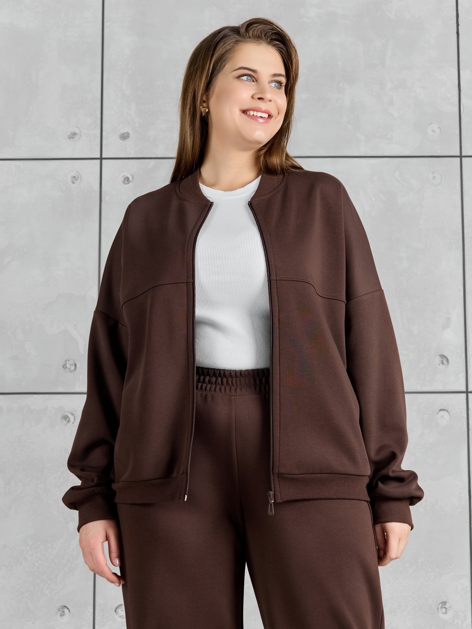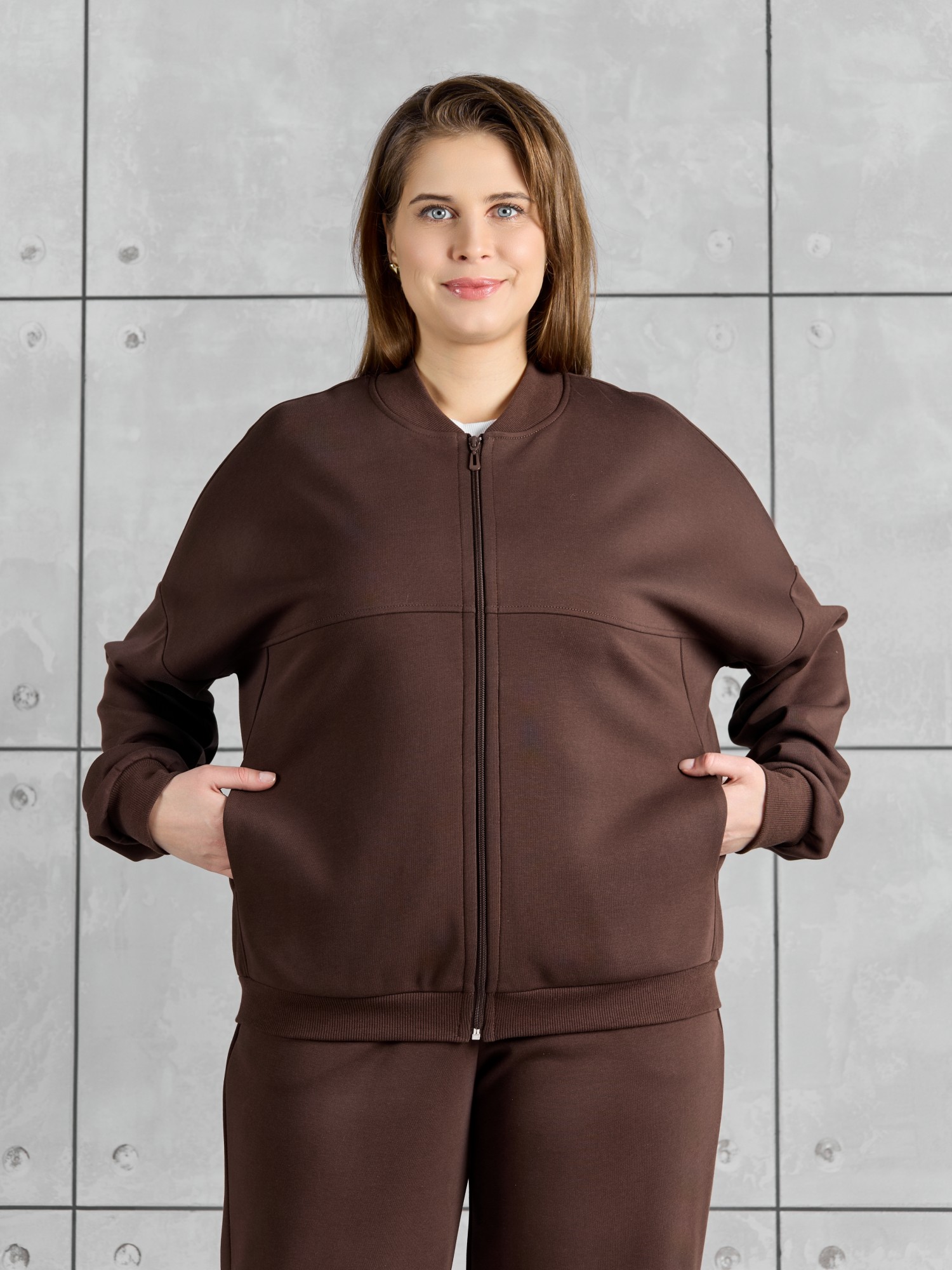 Куртка – женская из гладкокрашенного трикотажного полотна «лининг» прямого силуэта, свободная, с длинными втачными рукавами, горловиной овальной формы, обработанной втачной планкой, центральной бортовой застежкой на тесьму «молния». Полочка состоит из трех деталей, на нижней части в рельефах выполнены карманы, низ изделия с притачным поясом, рукава с притачными манжетами. Пояс, планка горловины, манжеты рукавов выполнены из трикотажного полотна «кашкорсе».