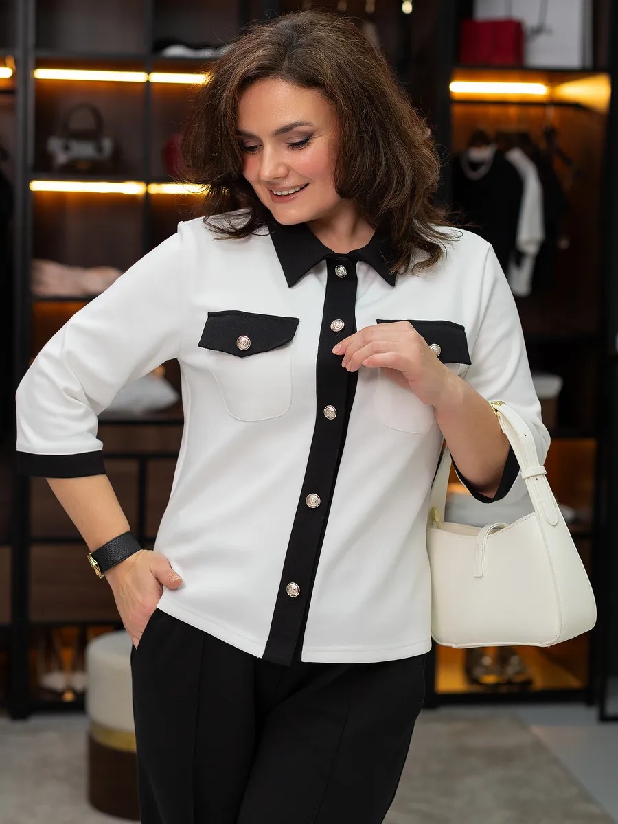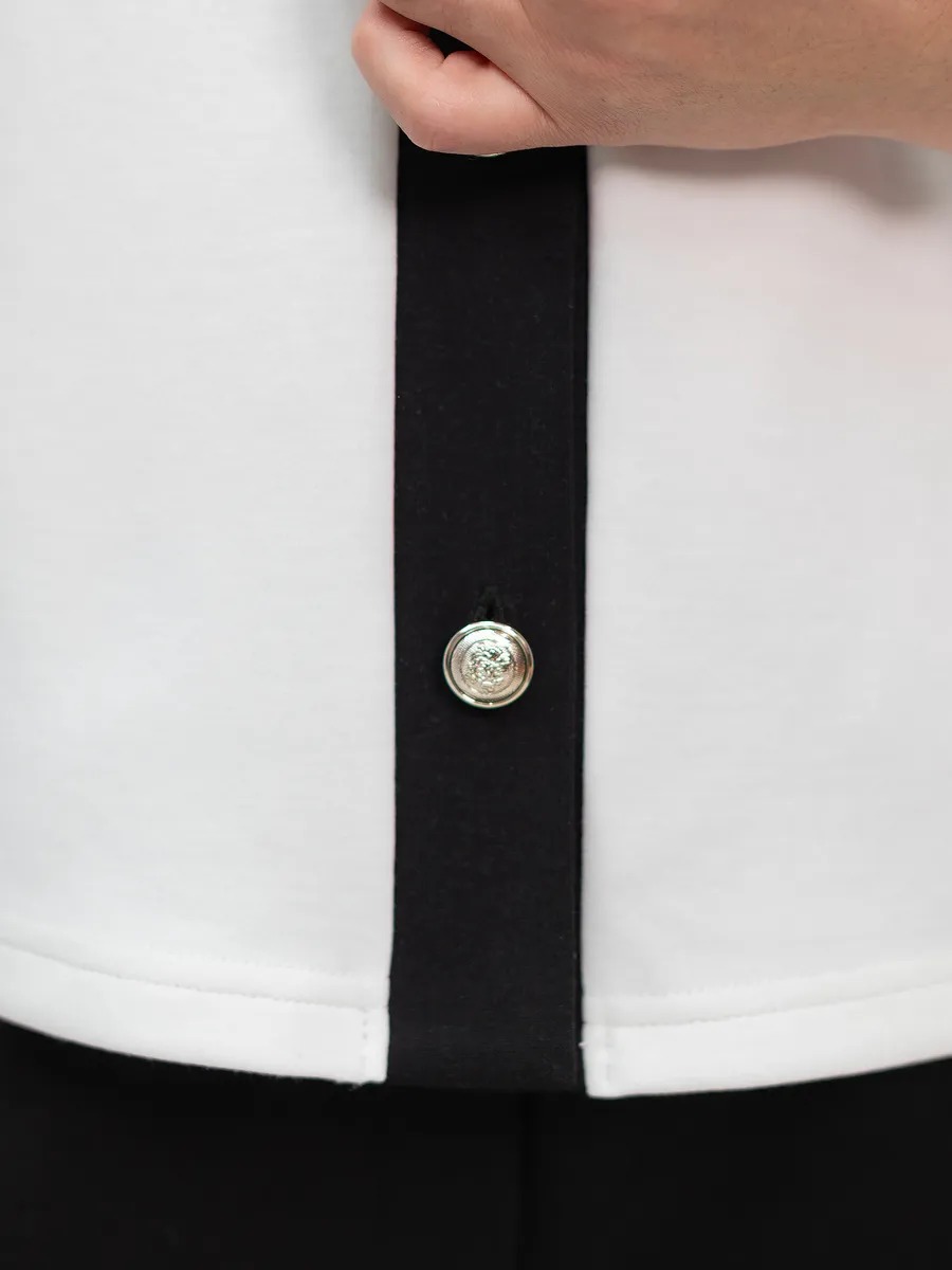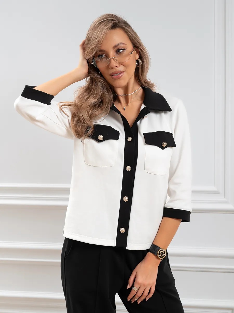Жакет выполнен из приятного на ощупь эластичного трикотажа, который мягко прилегает к телу, не стесняя движений в повседневной жизни. Укороченная длина придает модели актуальный, модный стиль и хорошо сочетается с джинсами, юбками, брюками, юбками-карандаш и даже платьями — создайте разный комплект для любой ситуации: повседневный, деловой или вечерний. Отложной воротник придает жакетувыразительность, а аккуратные пуговицы делают застежку практичной и стильной.