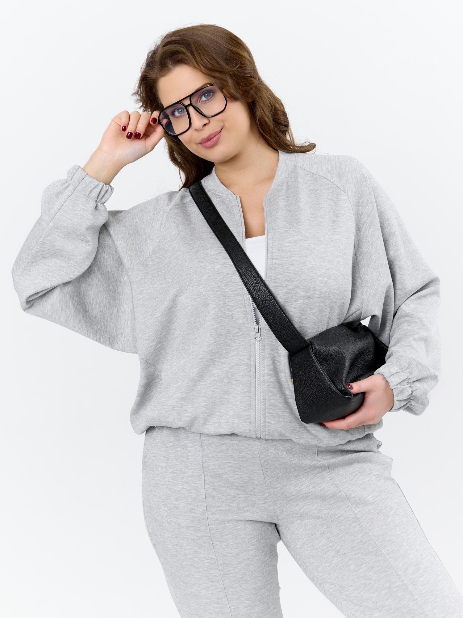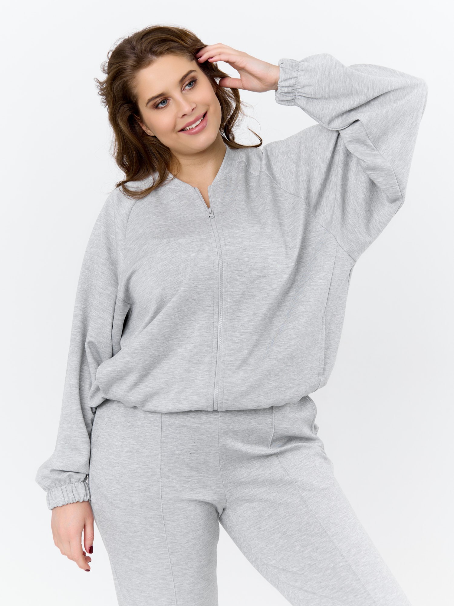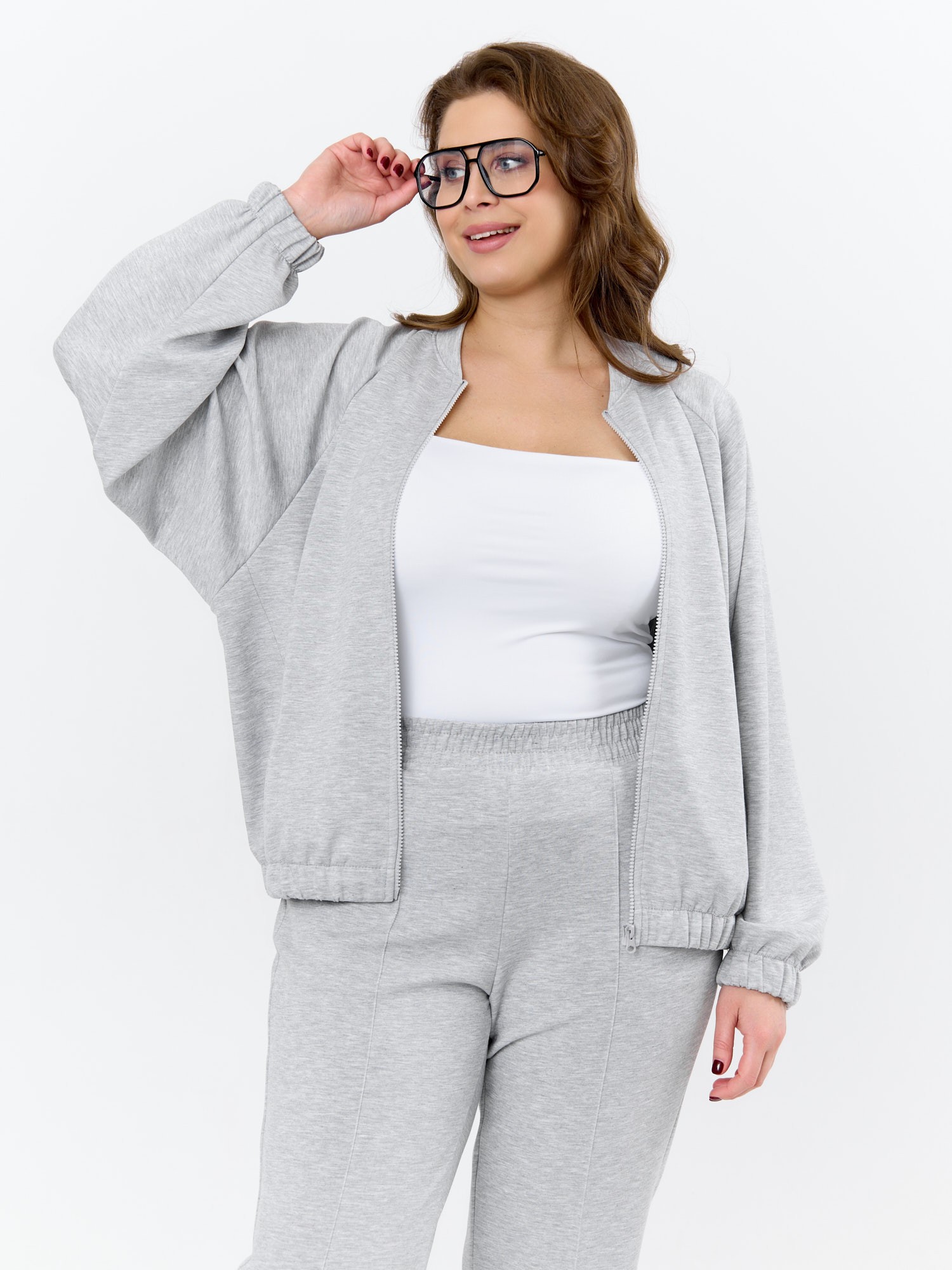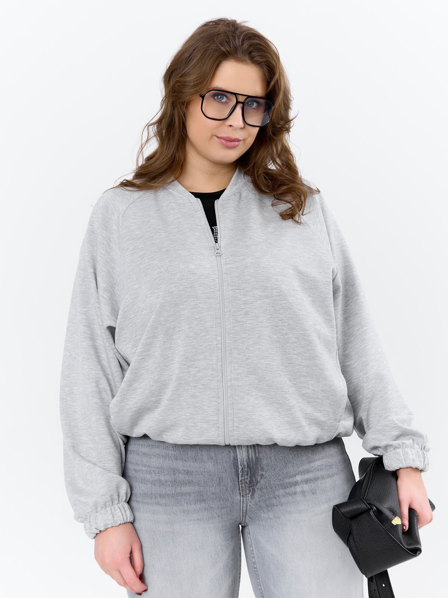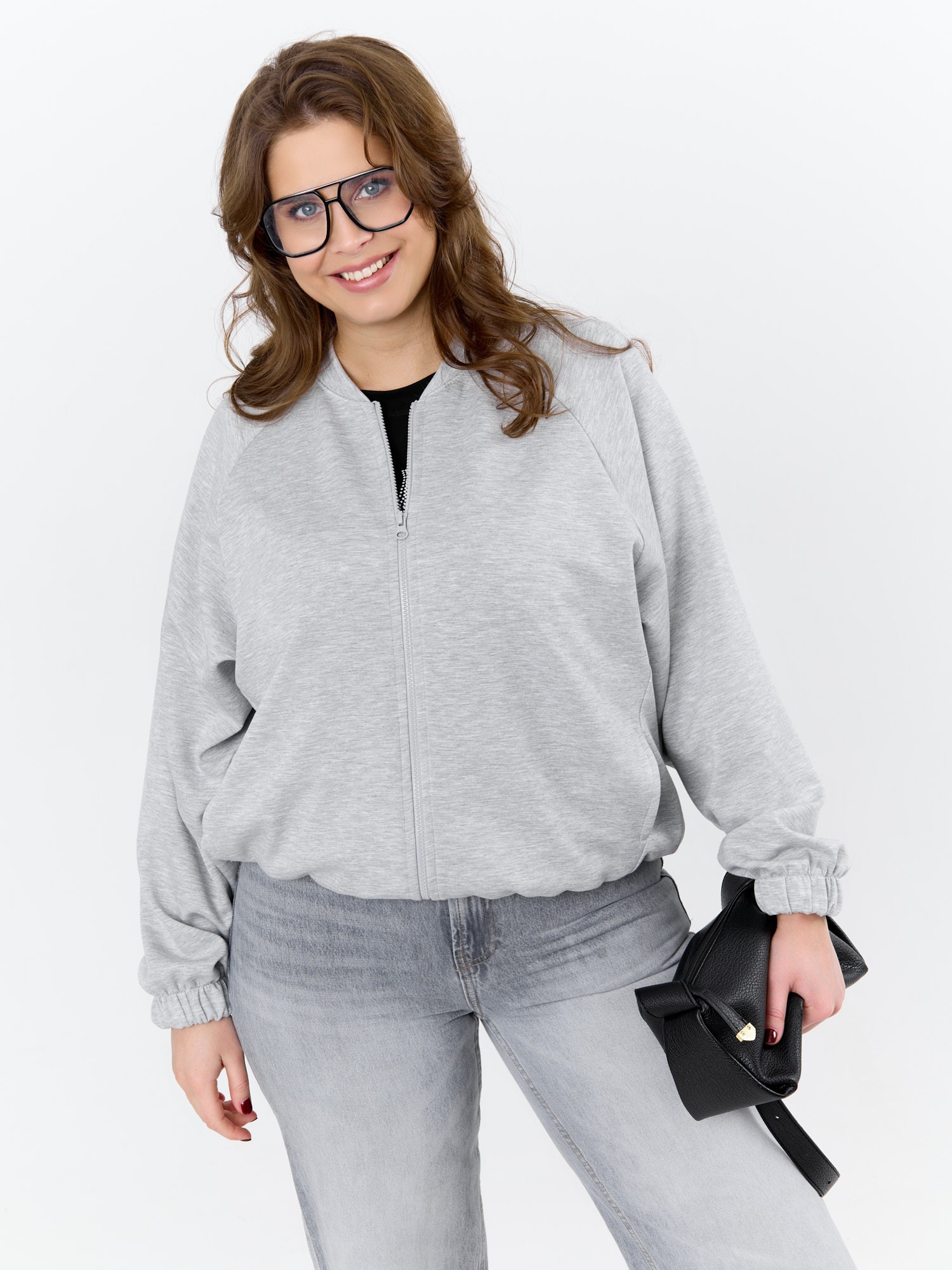 Куртка – бомбер женская из трикотажного гладкокрашеного полотна «скуба» свободная, с горловиной овальной формы обработанной втачной планкой, длинными рукавами кроя «реглан», обработанными подгибкой с эластичной тесьмой внутри, центральной бортовой застежкой на тесьму «молния». На полочке в рельефных швах выполнены карманы. Низ изделия обработан подгибкой с широкой эластичной тесьмой внутри.