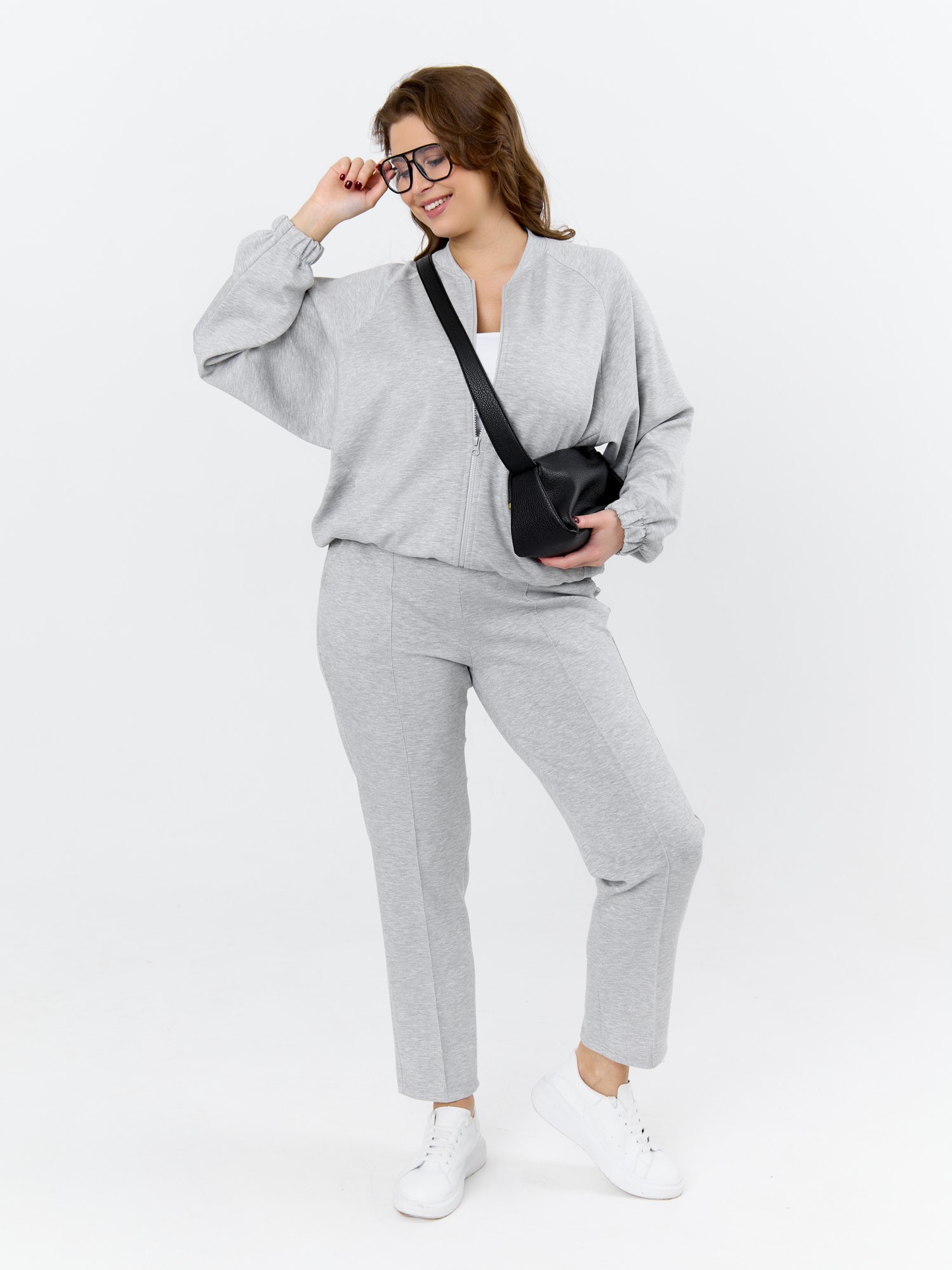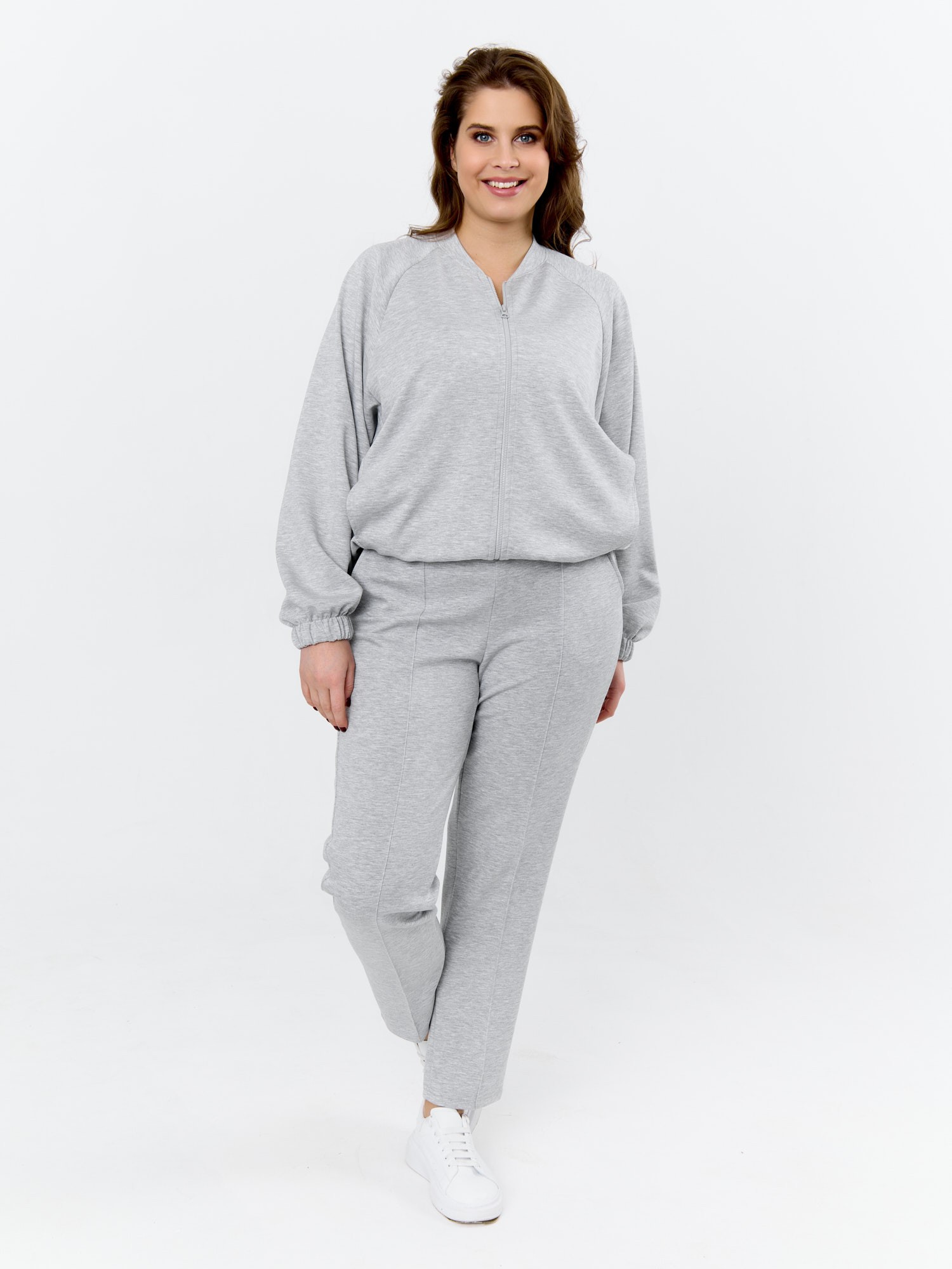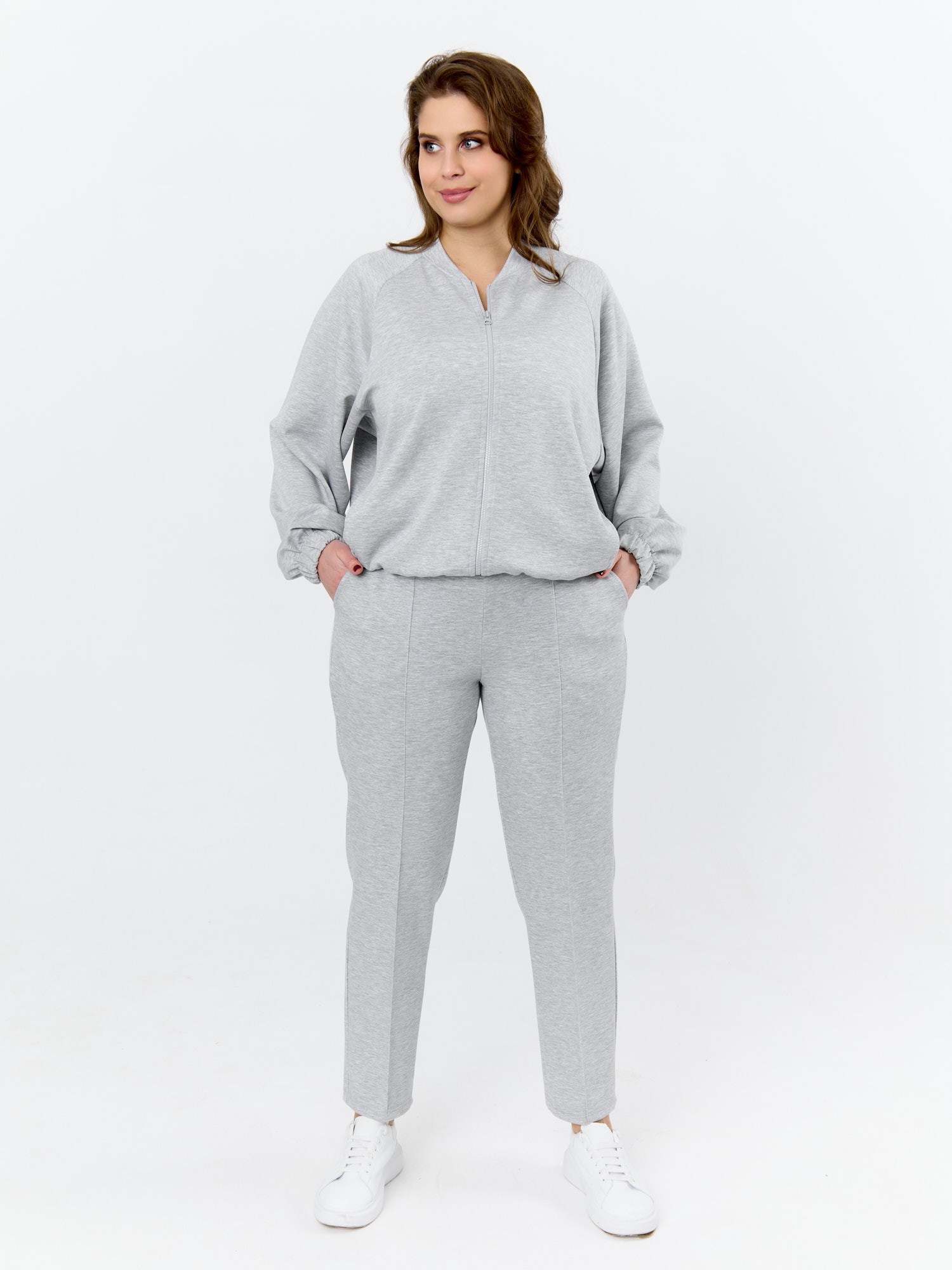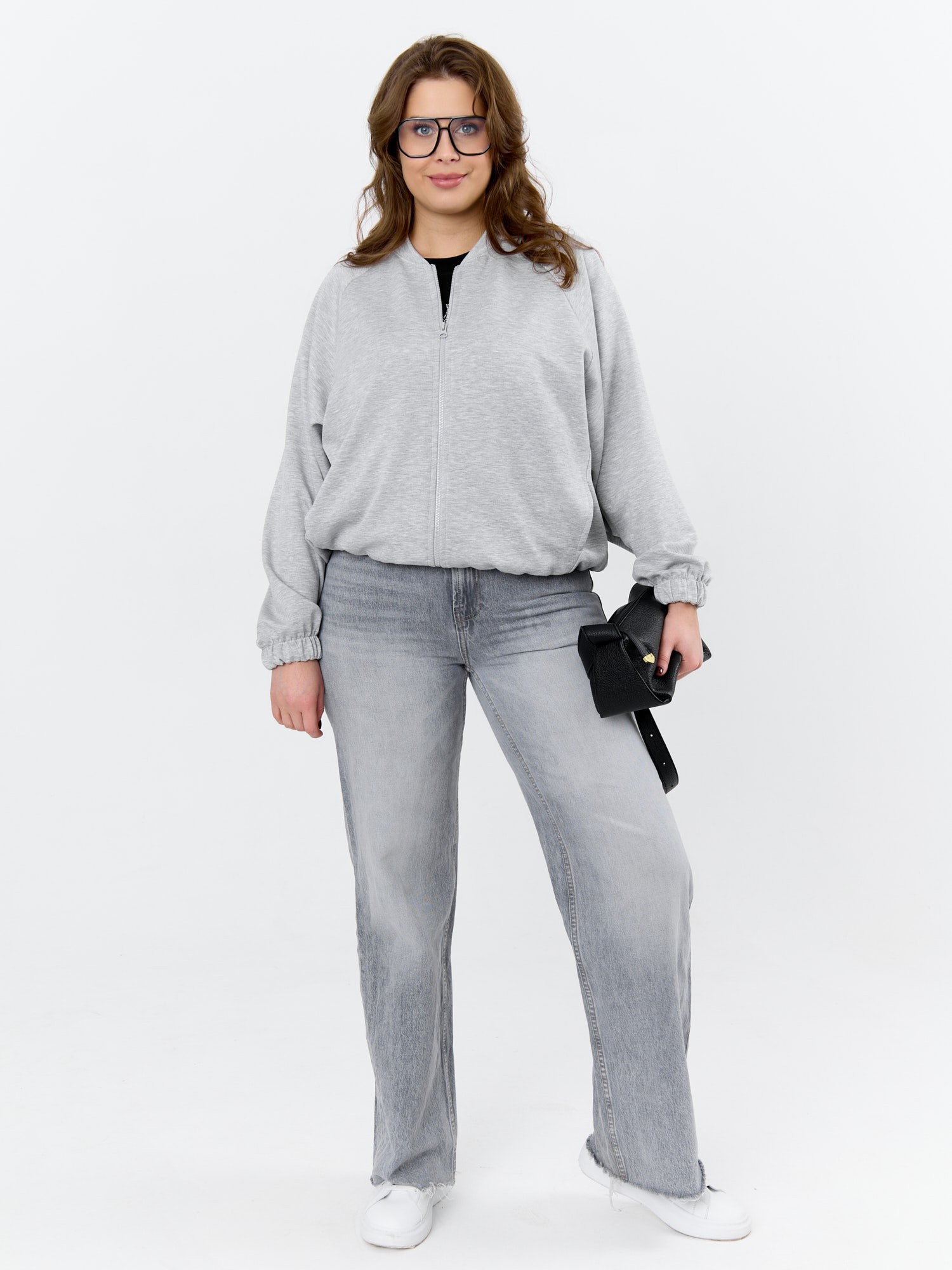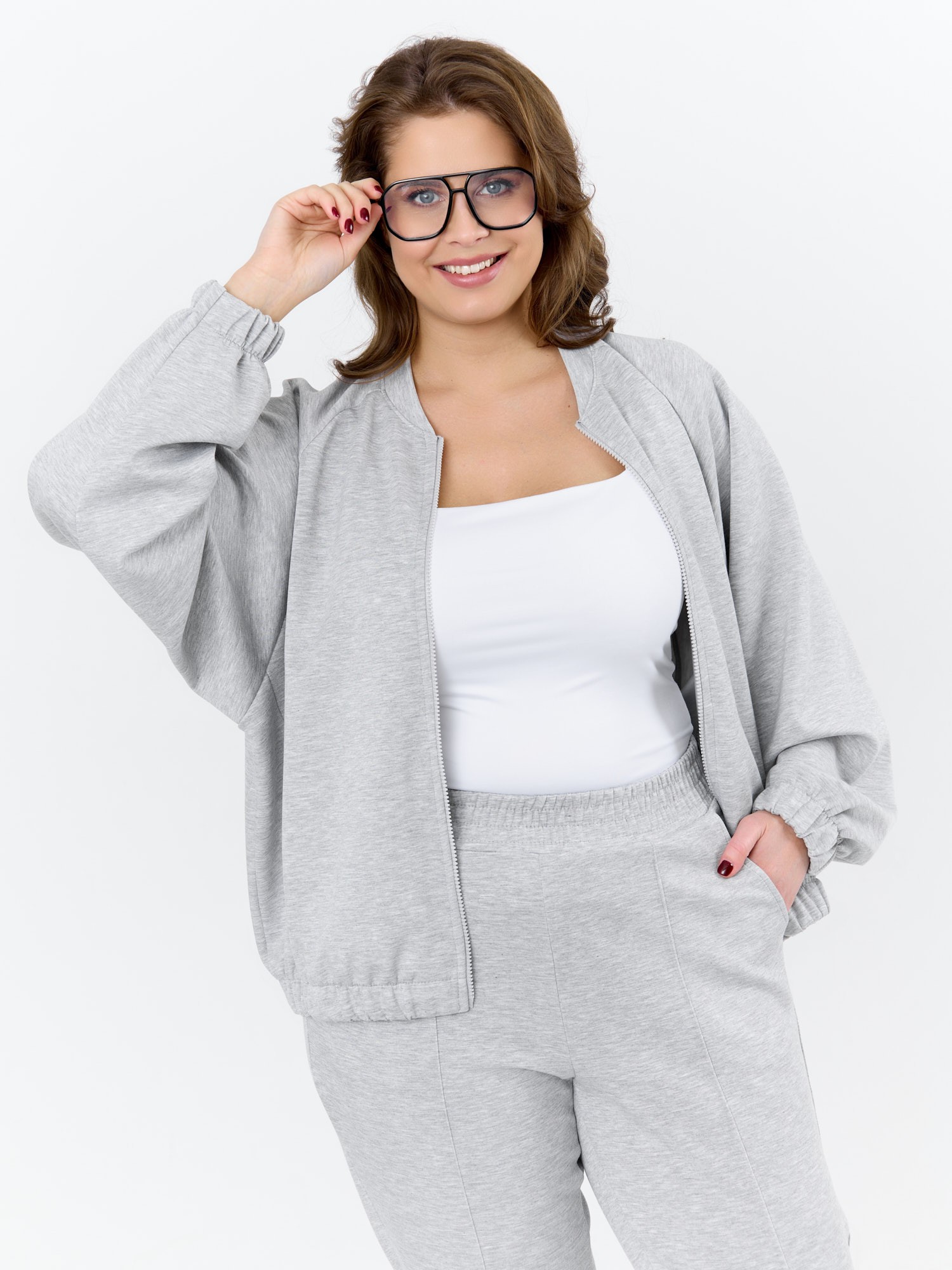 Куртка – бомбер женская из трикотажного гладкокрашеного полотна «скуба» свободная, с горловиной овальной формы обработанной втачной планкой, длинными рукавами кроя «реглан», обработанными подгибкой с эластичной тесьмой внутри, центральной бортовой застежкой на тесьму «молния». На полочке в рельефных швах выполнены карманы. Низ изделия обработан подгибкой с широкой эластичной тесьмой внутри.
