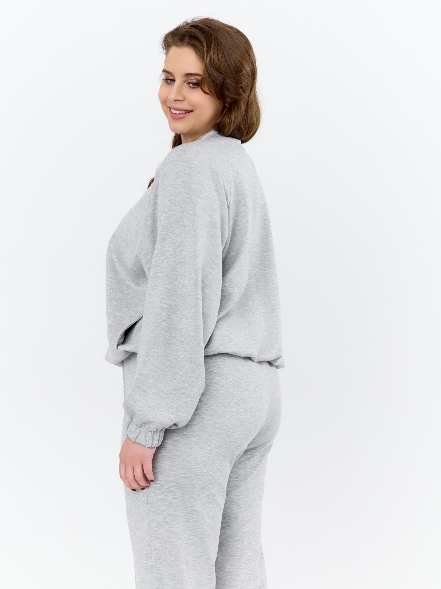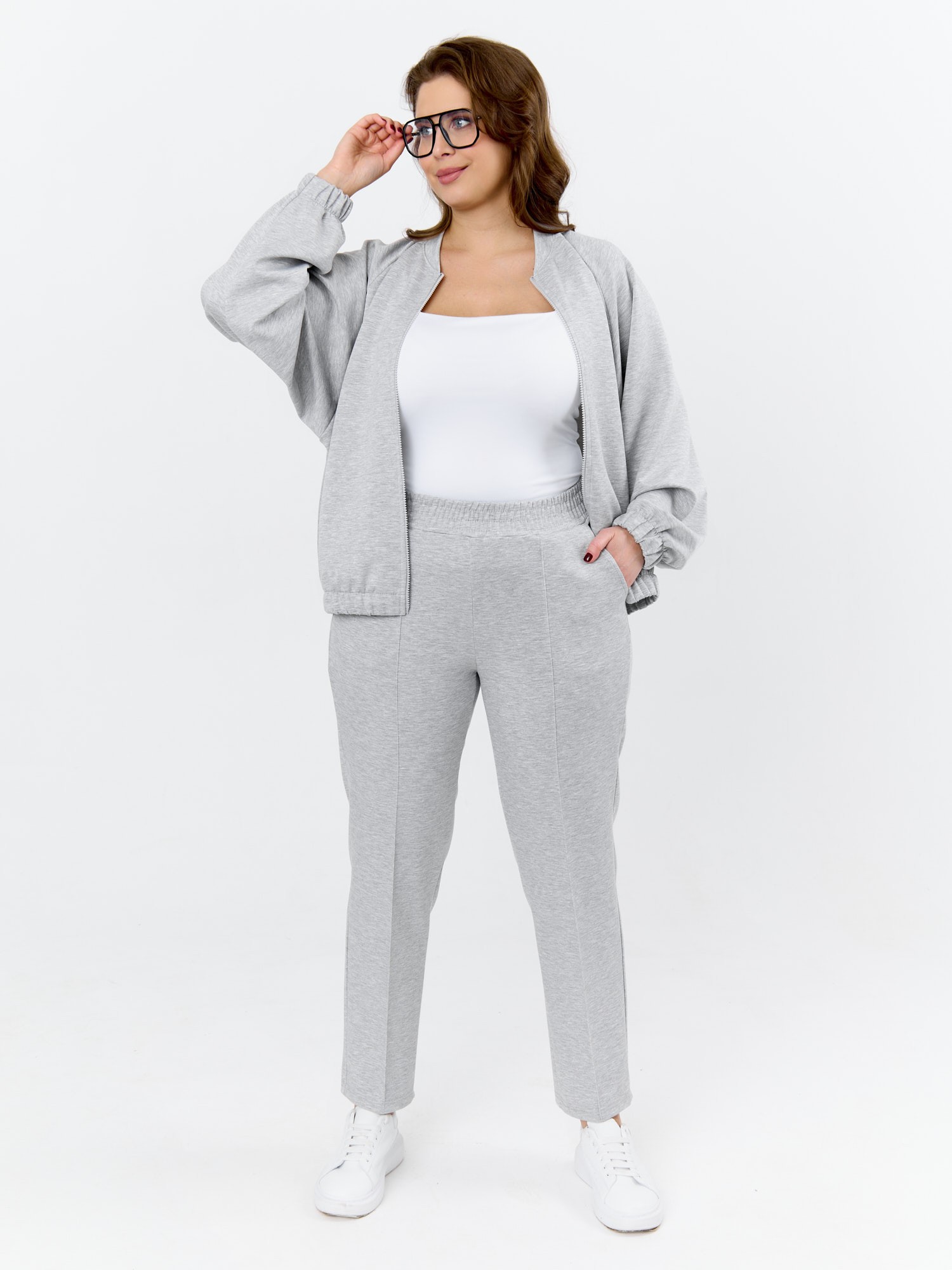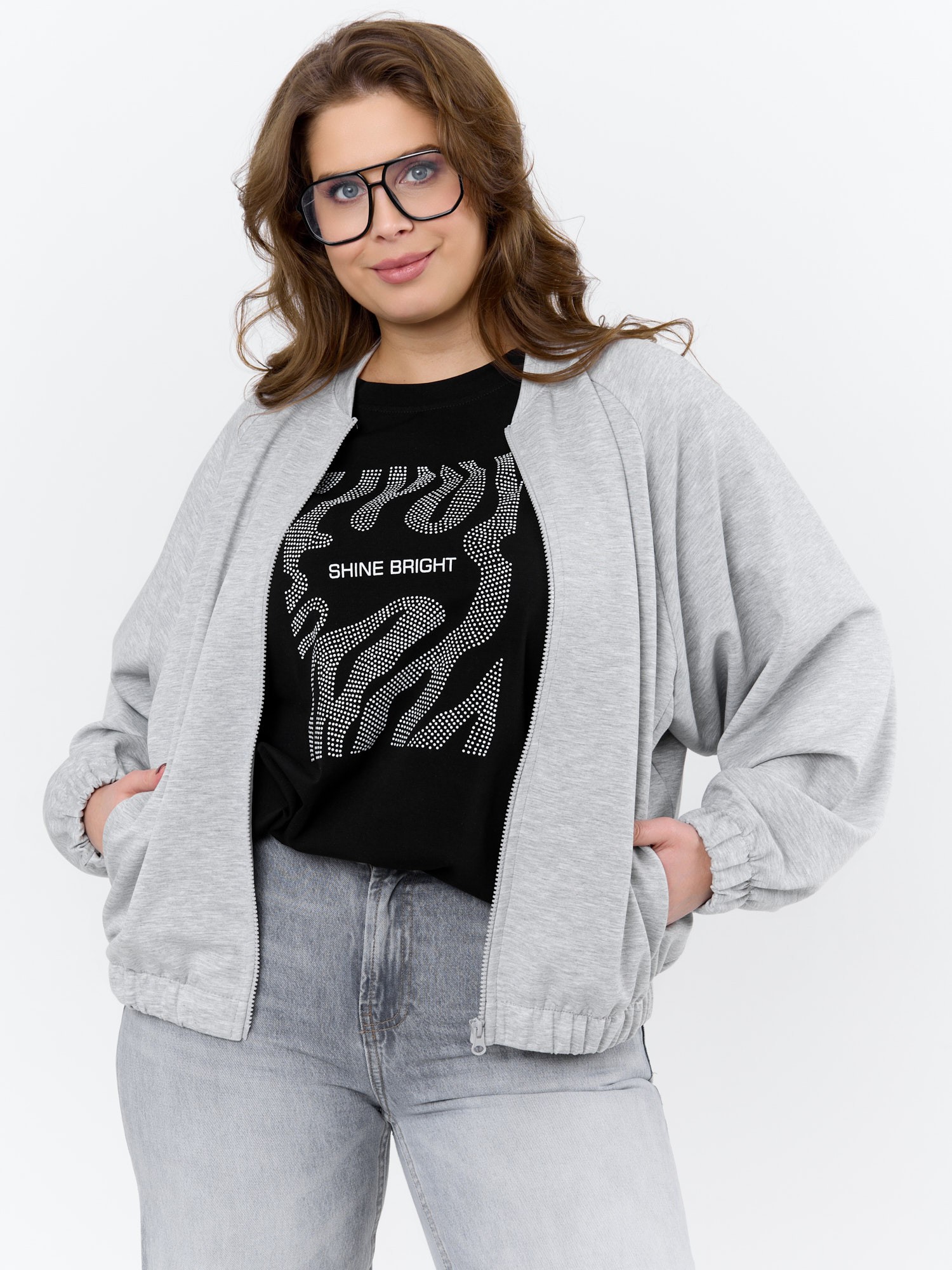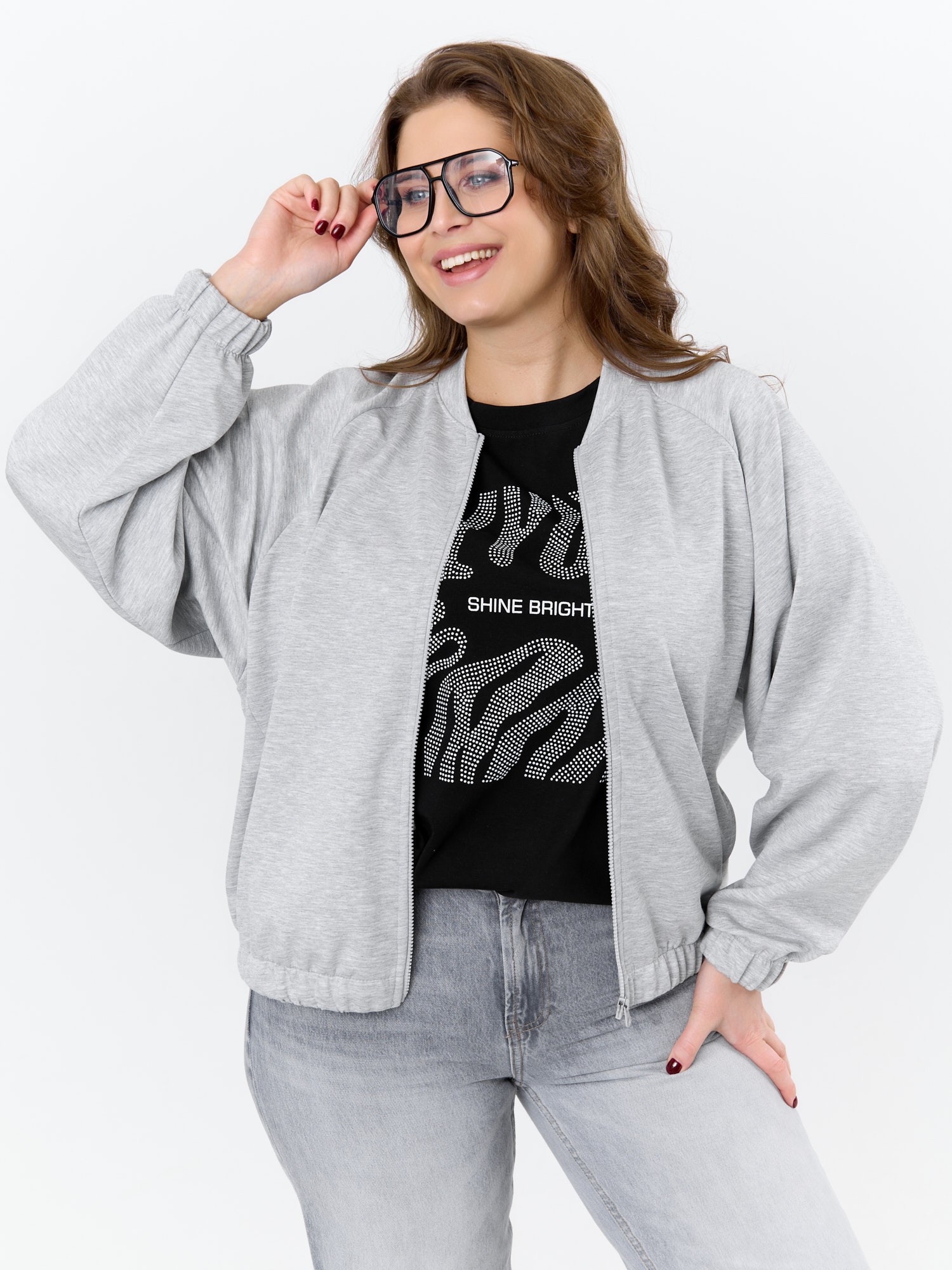 Куртка – бомбер женская из трикотажного гладкокрашеного полотна «скуба» свободная, с горловиной овальной формы обработанной втачной планкой, длинными рукавами кроя «реглан», обработанными подгибкой с эластичной тесьмой внутри, центральной бортовой застежкой на тесьму «молния». На полочке в рельефных швах выполнены карманы. Низ изделия обработан подгибкой с широкой эластичной тесьмой внутри.