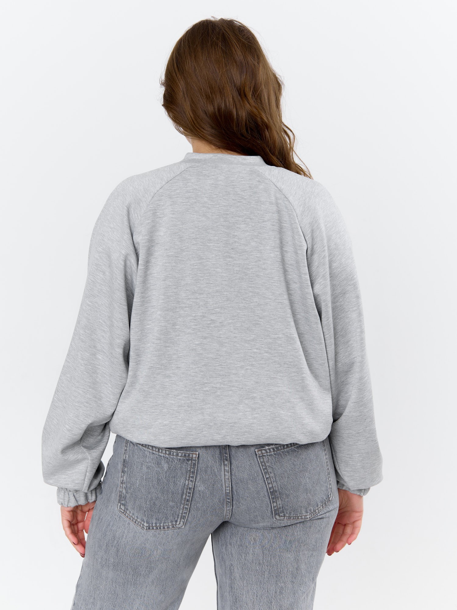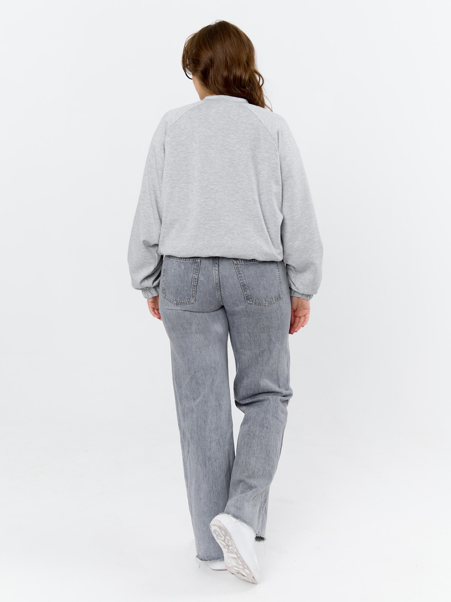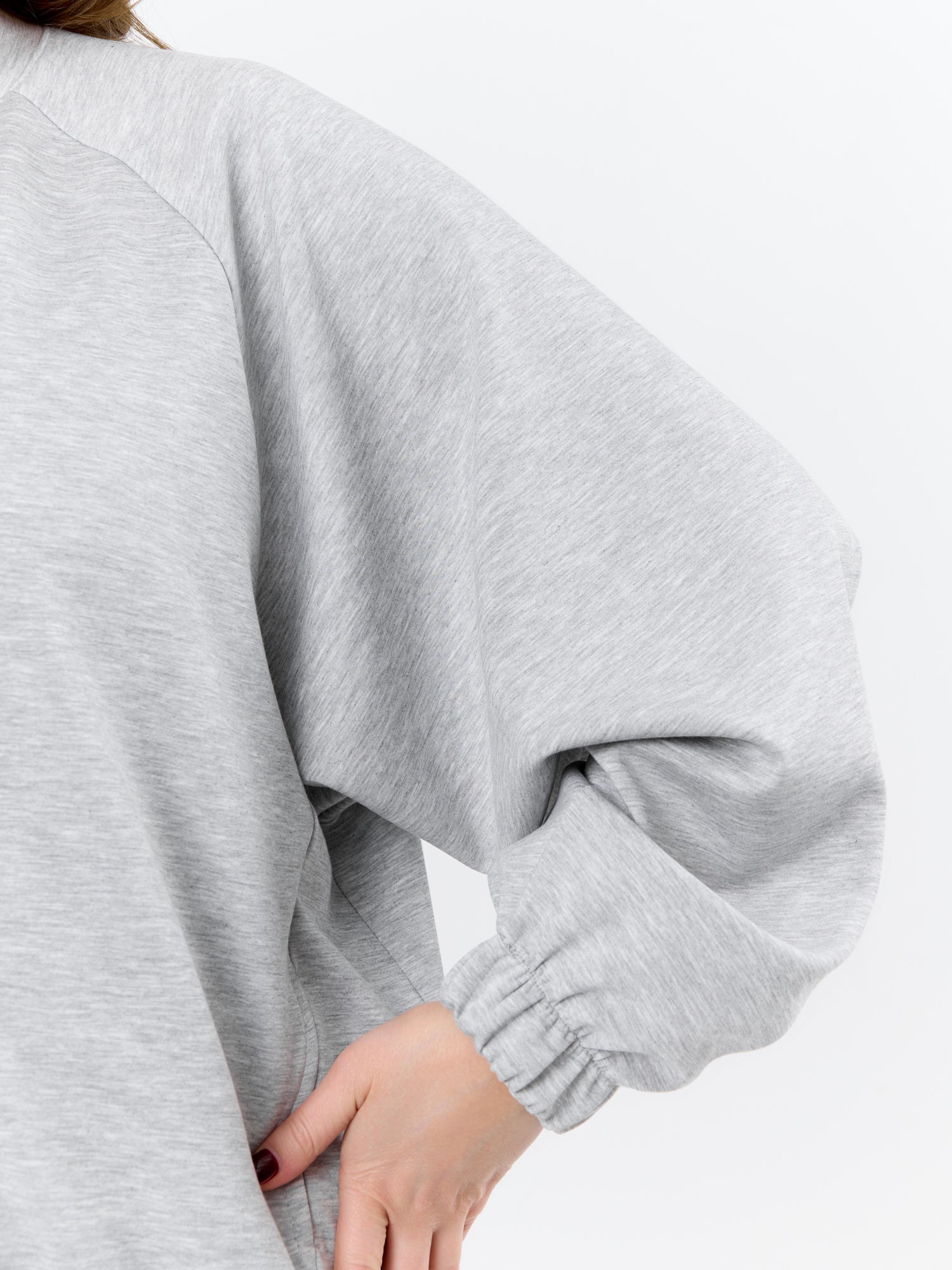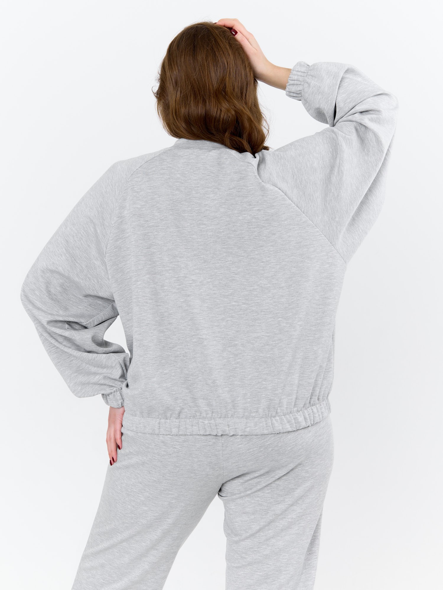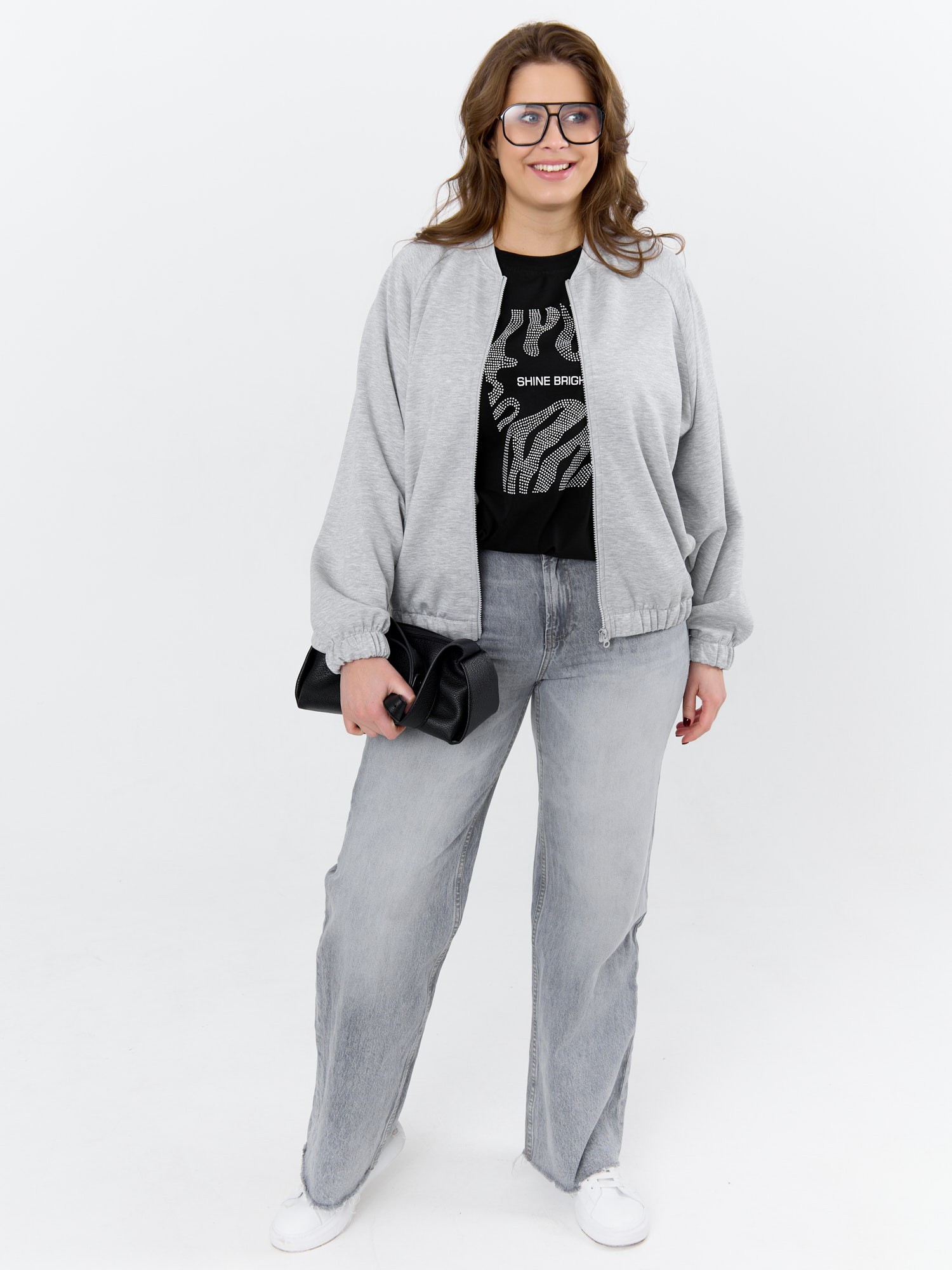 Куртка – бомбер женская из трикотажного гладкокрашеного полотна «скуба» свободная, с горловиной овальной формы обработанной втачной планкой, длинными рукавами кроя «реглан», обработанными подгибкой с эластичной тесьмой внутри, центральной бортовой застежкой на тесьму «молния». На полочке в рельефных швах выполнены карманы. Низ изделия обработан подгибкой с широкой эластичной тесьмой внутри.