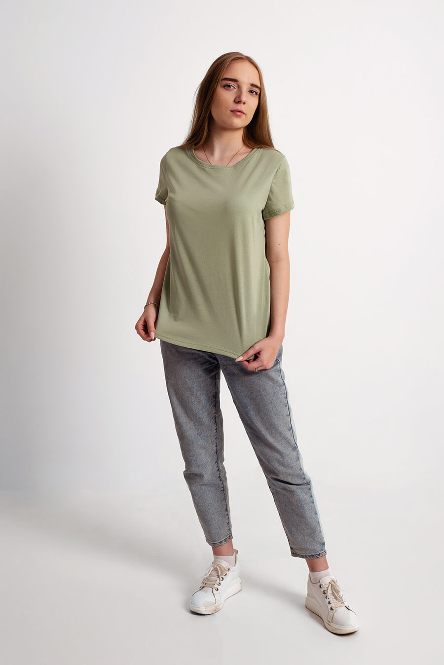 Базовая зеленая приталенная футболка кроя с округлым вырезом горловины, незаменимая часть гардероба и необходимая каждому.