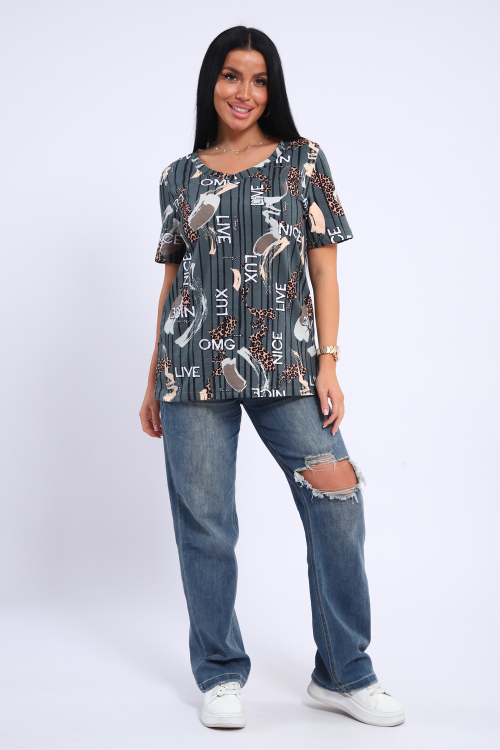 Футболка женская с V образным вырезом горловины и коротким рукавом.