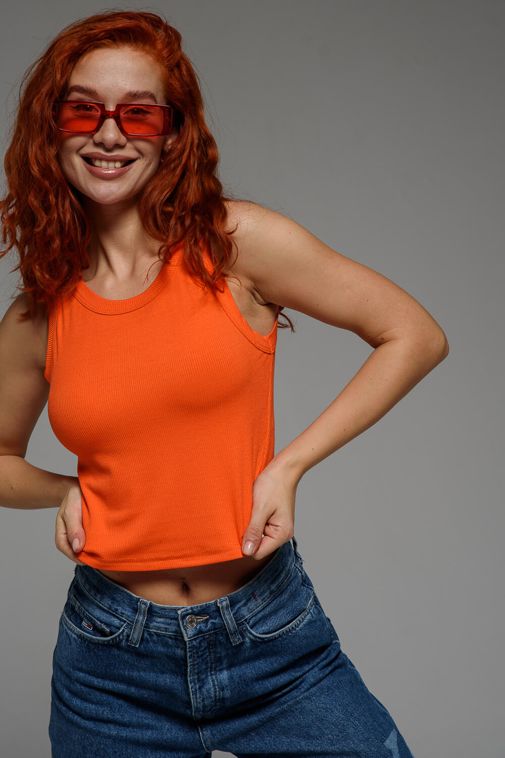 Базовый топ укороченной длины. Выполнен из фактурной ткани в рубчик из 100% полиэстера. Облегающий крой отлично садится по фигуре, подчеркивая её достоинства. Круглая горловина, широкие бретели, не просвечивает, топ максимально комфортный в носке.