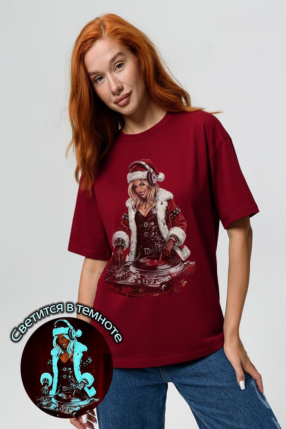 Погрузитесь в магию праздника с нашей стильной oversize-футболкой "Санта-Диджей"! Эта яркая красная футболка создана для тех, кто любит миксовать новогоднюю атмосферу с ритмом музыки. Главная героиня принта — соблазнительная Санта в меховой накидке, с красной шапкой и наушниками, уверенно стоящая за диджейским пультом. Её образ сочетает классический рождественский стиль с современным уличным вайбом: белый мех, чёрная кожаная одежда и динамичная поза, полная энергии.