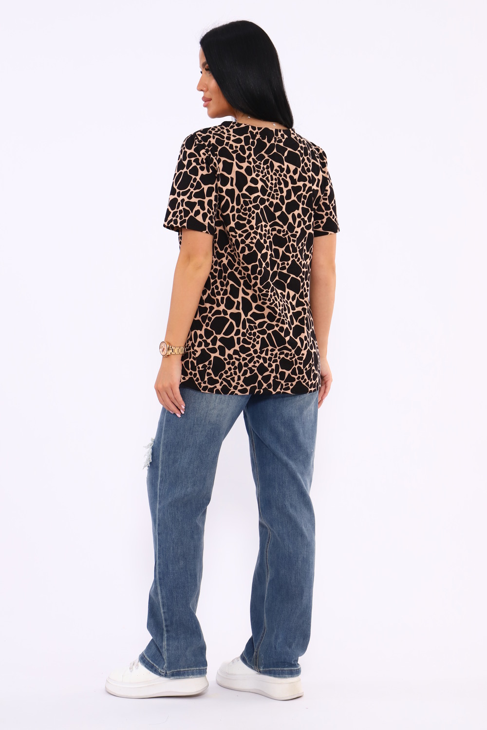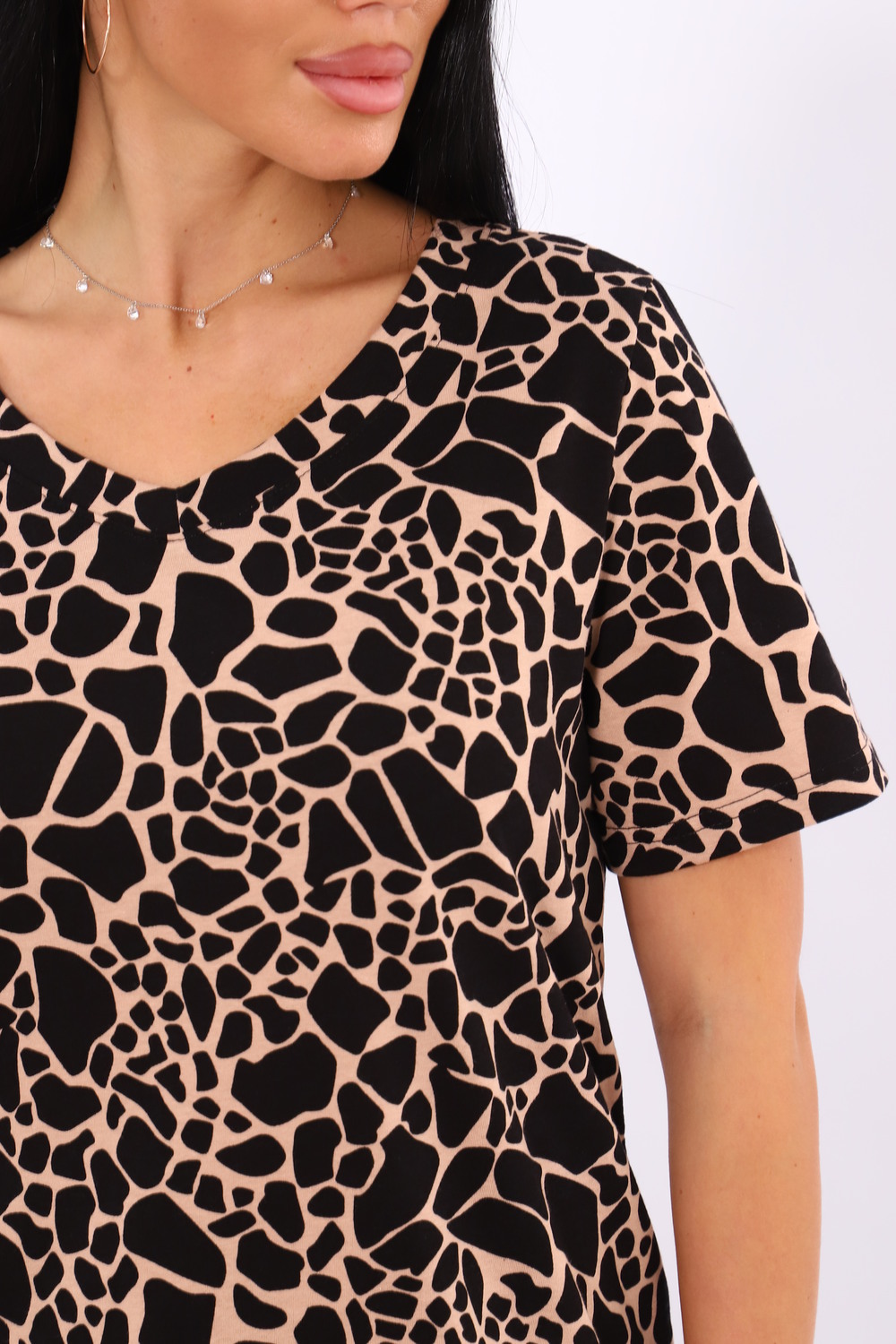 Футболка женская с V образным вырезом горловины и коротким рукавом.