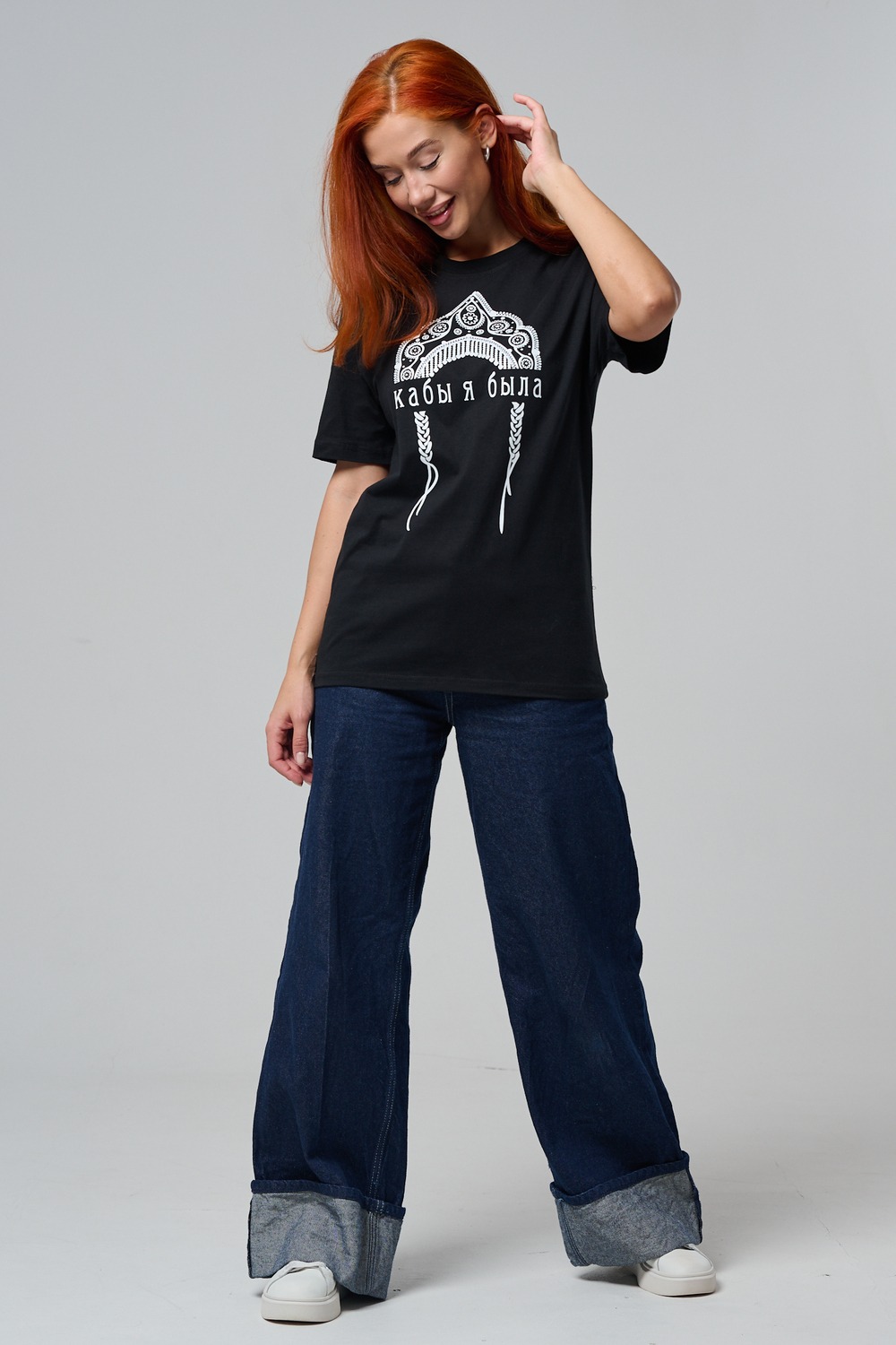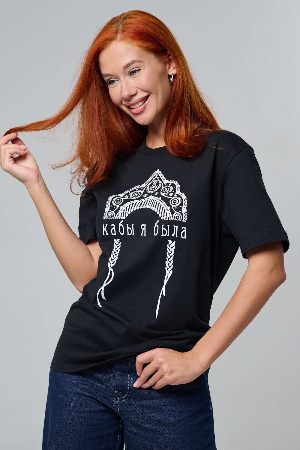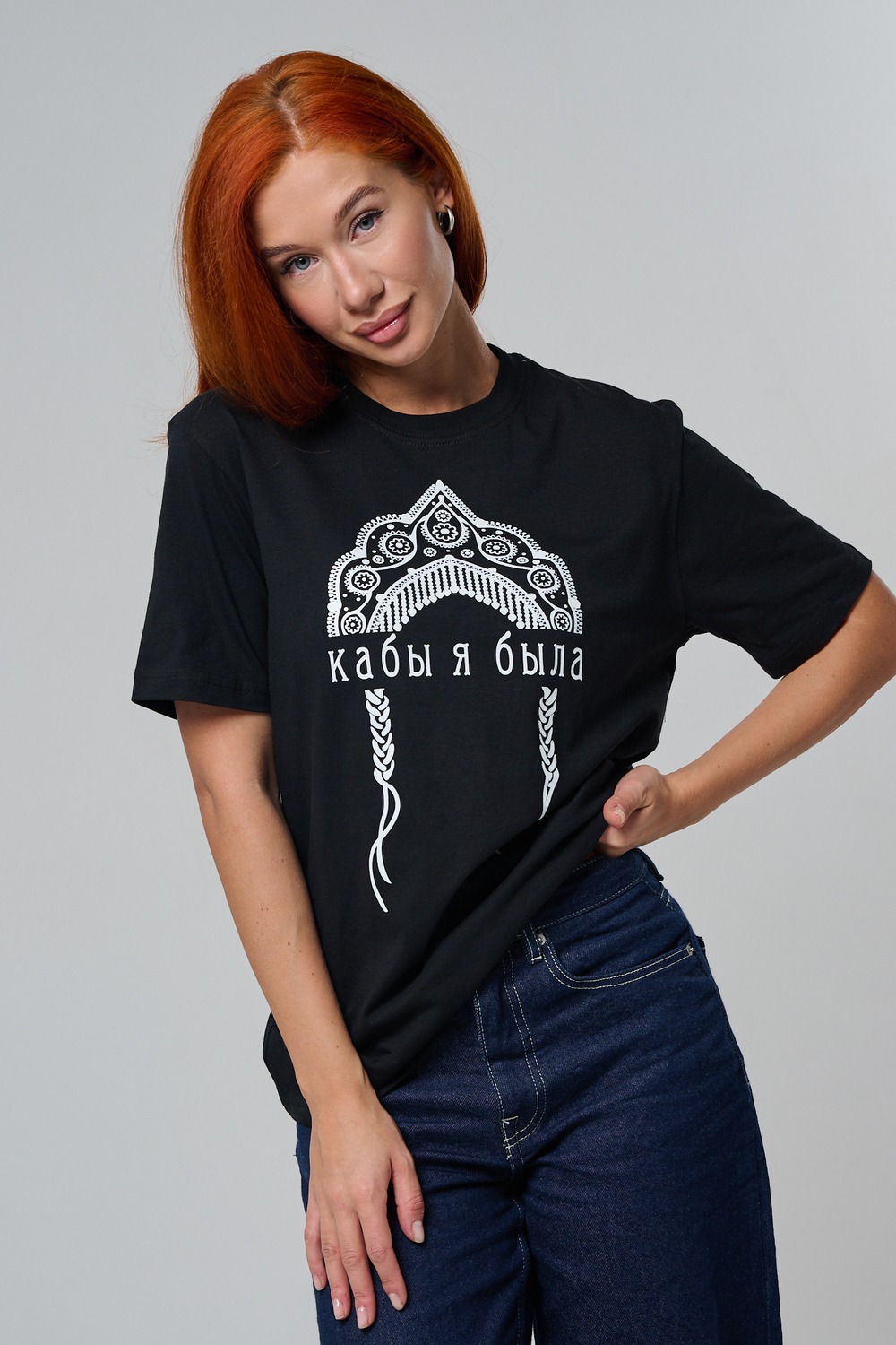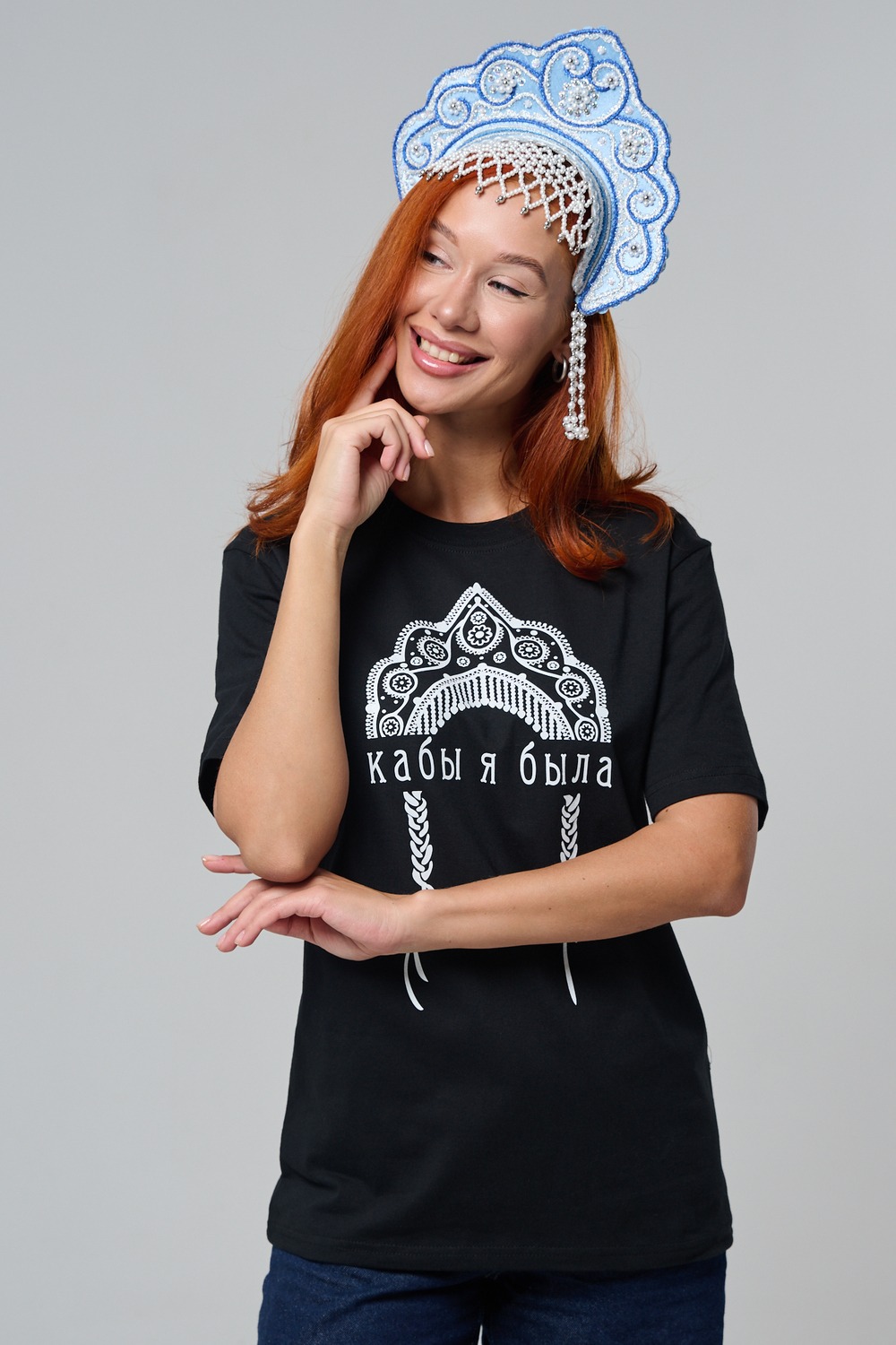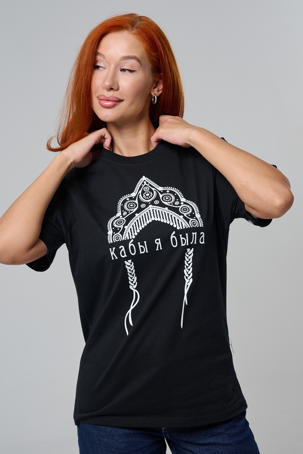 Футболка с принтом кокошник — стильная и оригинальная футболка женская с принтом в этническом стиле, вдохновлённая русской культурой и народными мотивами. На передней части изделия расположен декоративный орнамент в виде кокошника, выполненный в черно-белой цветовой гамме, символизирующий традиции, красоту и самобытность.