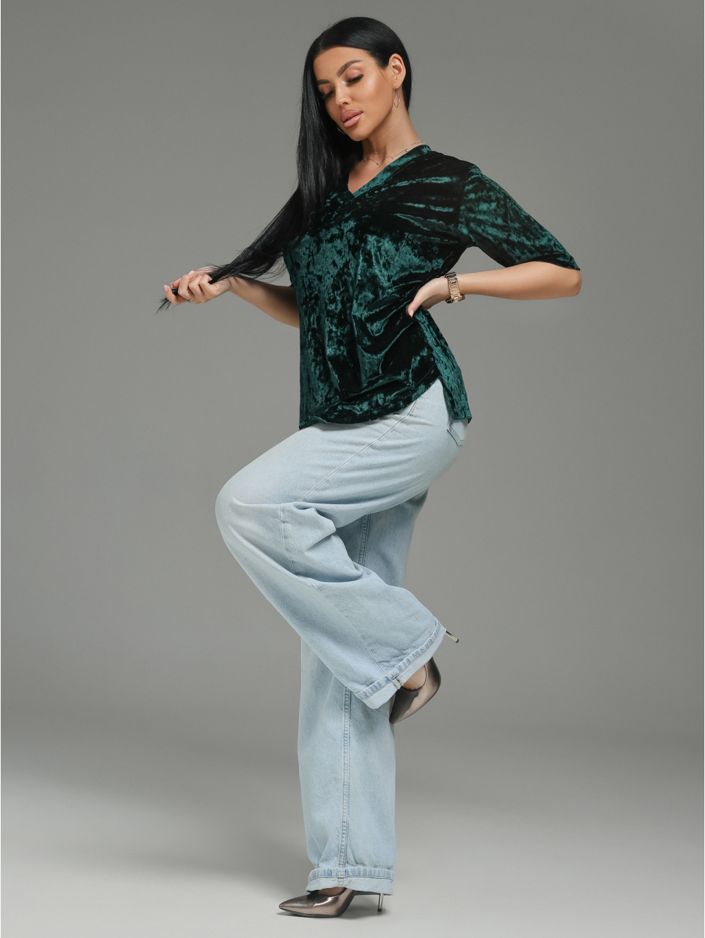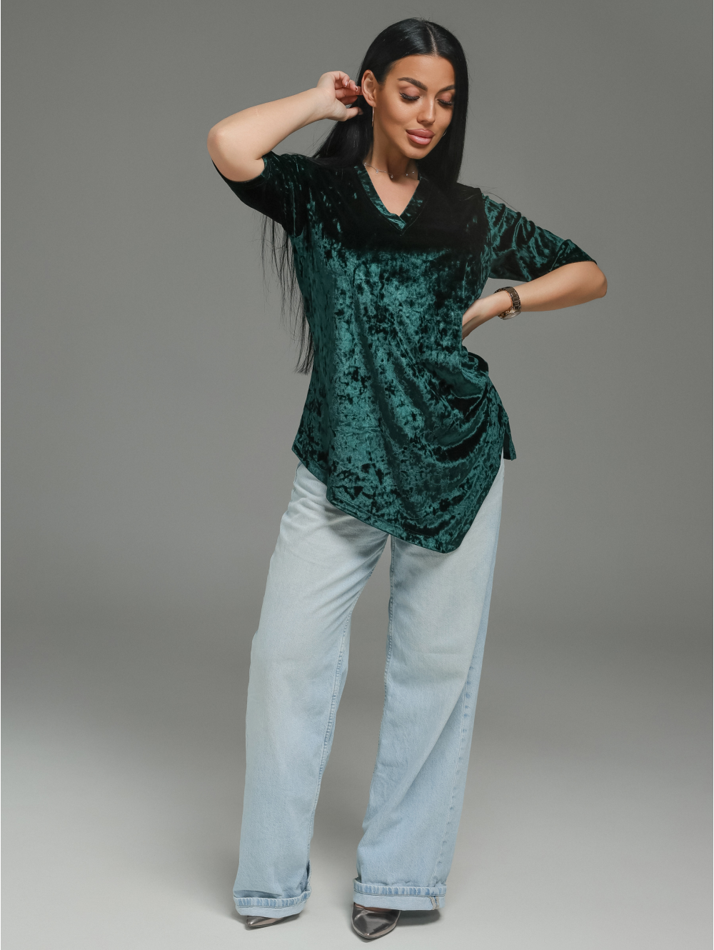 Материал: Бархат. Главный герой этой модели. Он играет светом, создавая глубокие переливы, и дарит невероятные тактильные ощущения.