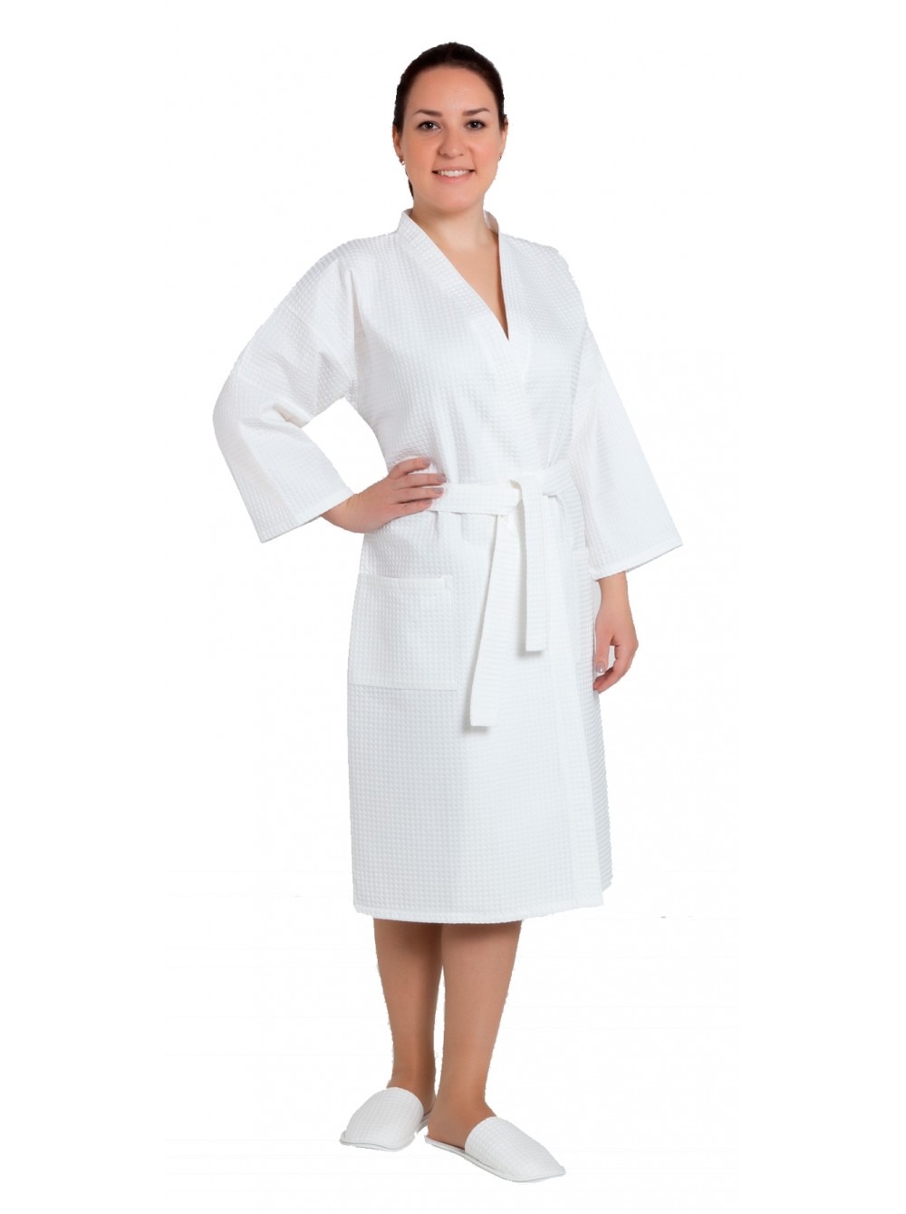 Модель халата: запашной с накладными карманами и поясом, длина по спине 111 см, рукав 2\3.