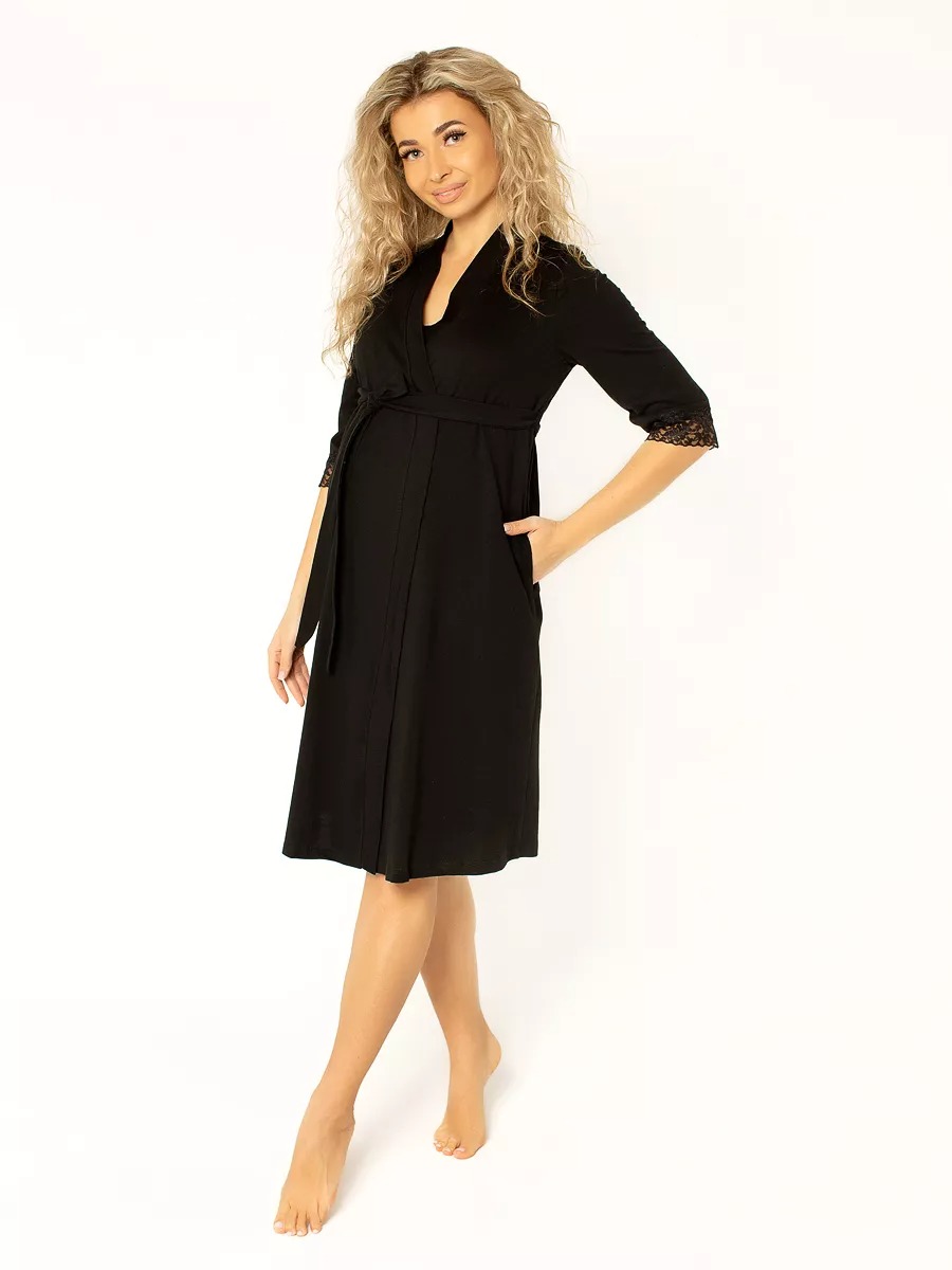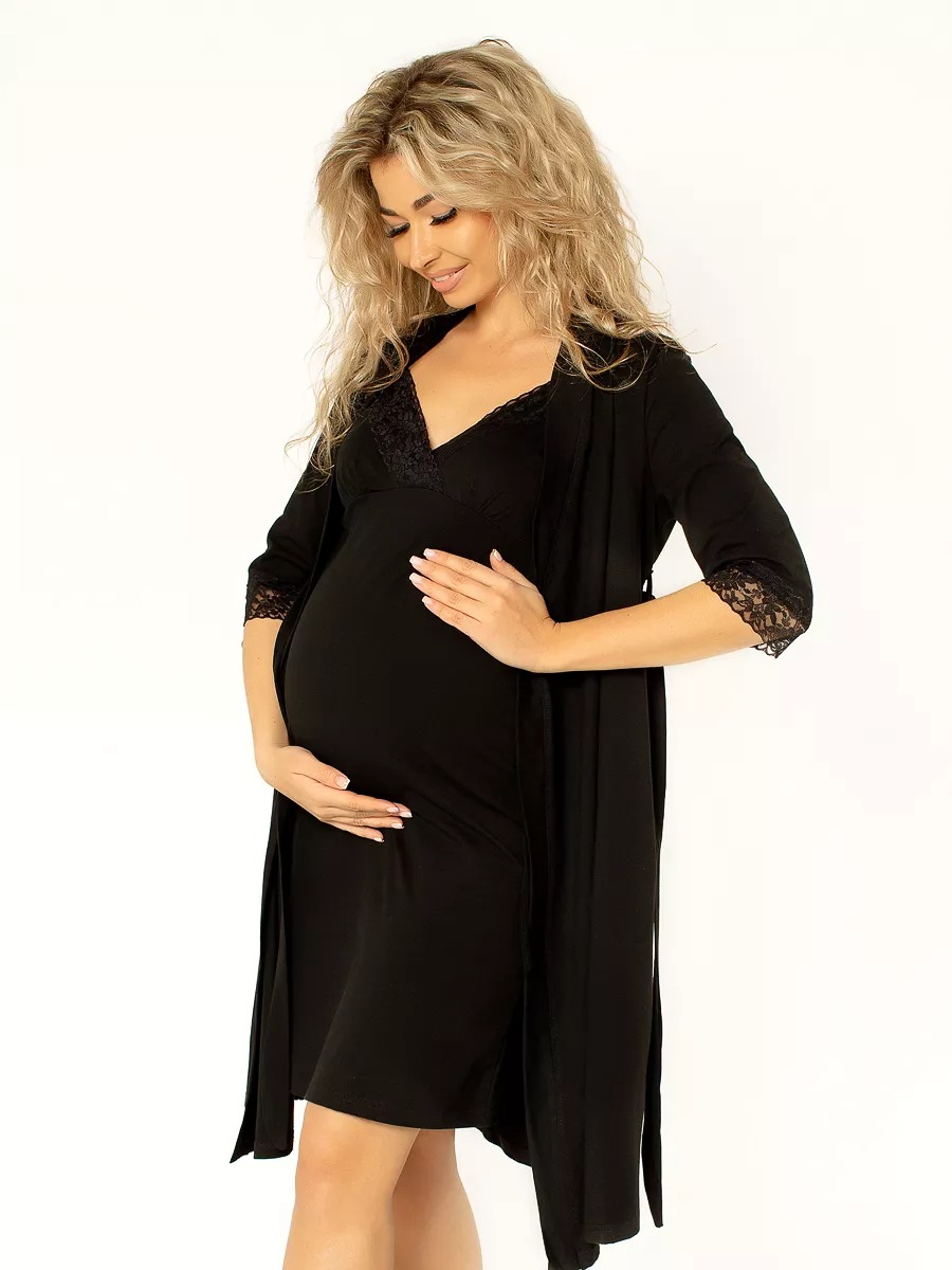 Практичный и невероятно удобный комплект «Для мамы» / Чёрный арт.к1156ч в роддом для беременных и кормящих из 100% Хлопка Премиум, который состоит из ночной сороки и халата с запахом. Сорочка - оптимальной длины, выполнена из однотонной хлопковой ткани Премиального качества, на бретелях с регуляторами из декоративной резинки. Верх изделия разработан для максимального комфорта во время кормления грудью. Крайне привлекательно смотрится декоративная отделка кружевом. Халат с запахом, удобным поясом, боковыми карманами и рукавом 3/4. Длина - ниже колена. По низу рукавов - отделка эластичным кружевом. В боковом шве 3 петли для регулировки высоты пояса. Такой комплект, состоящий из халата и сорочки, ни в коем случае не останется без внимания. Вы сможете носить его и после беременности, ведь он невероятно удобный и универсальный. Характеристики: 100% хлопковая ткань Премиум; Обработка декоративным эластичным кружевом; Оптимальная длина изделий; Бретели с регуляторами; Комфорт во время кормления; Боковые карманы; 3 уровня регулировки высоты пояса