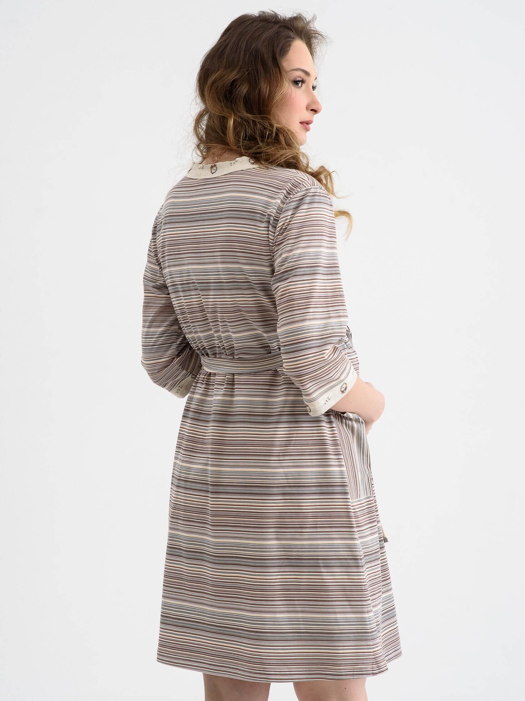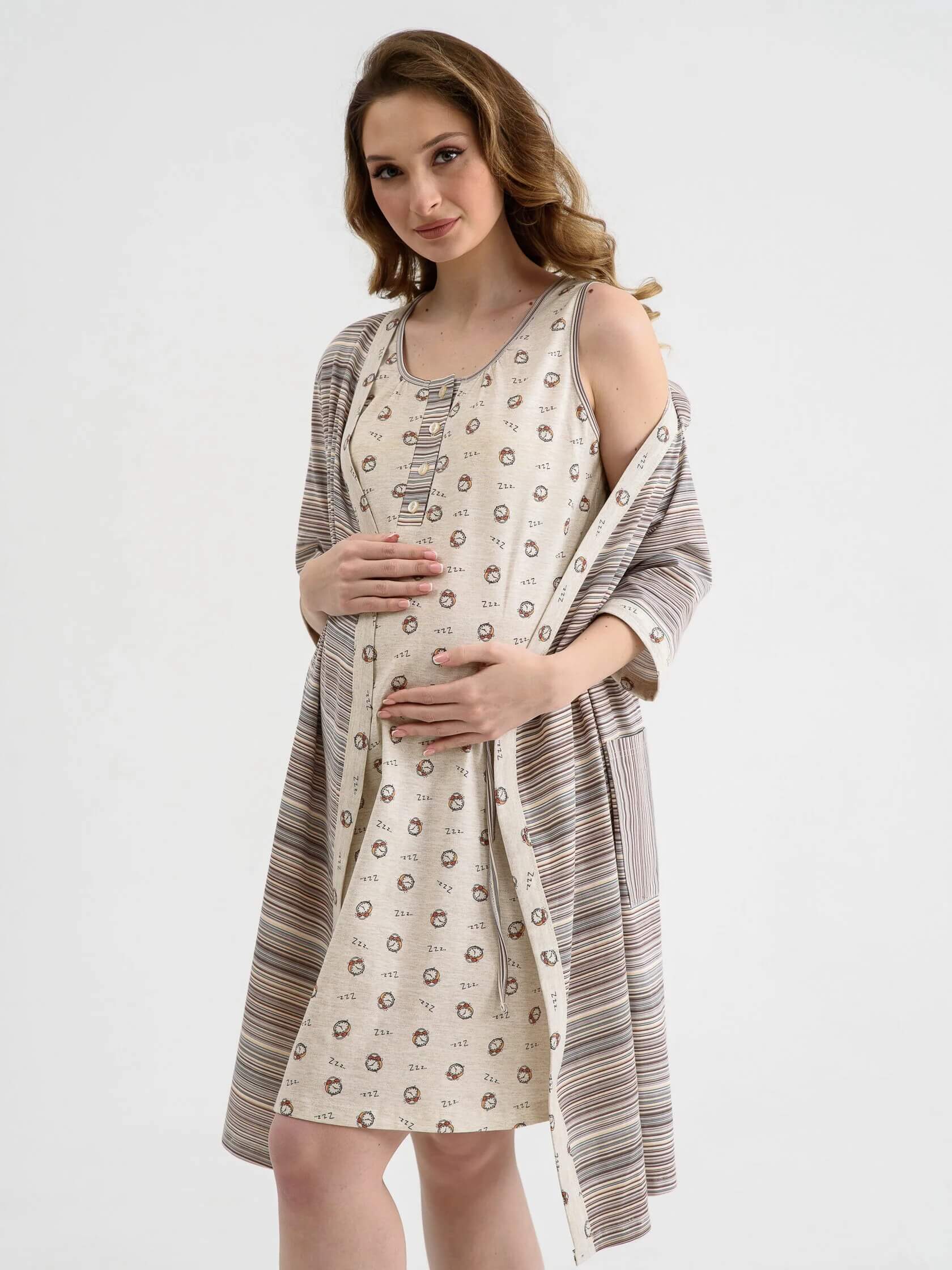 Женский комплект "Часики" 2289-К / Бежевый отшивается из хлопковой ткани, кулирки. Женский комплект для беременных состоит из короткого халата на запах и сорочки на широких бретелях.