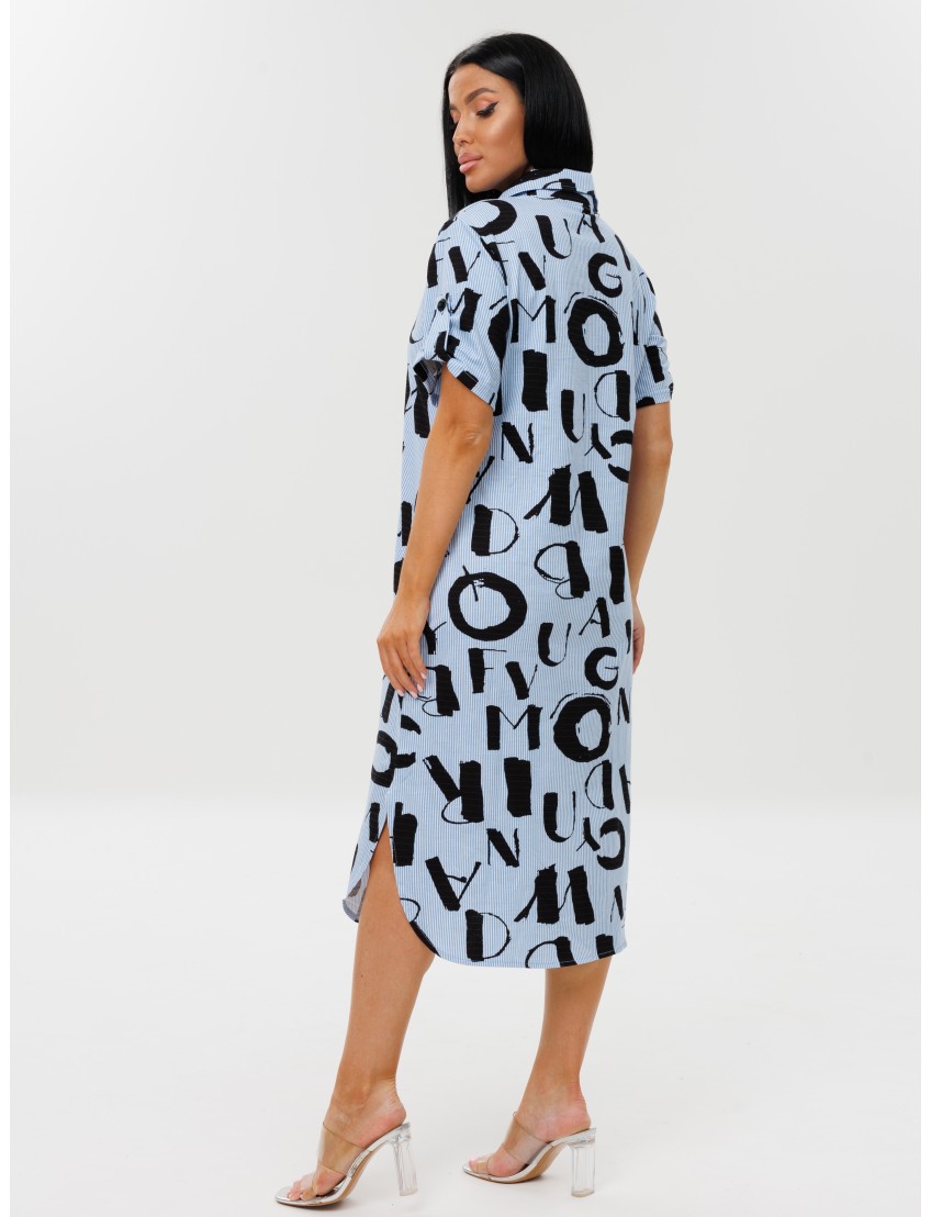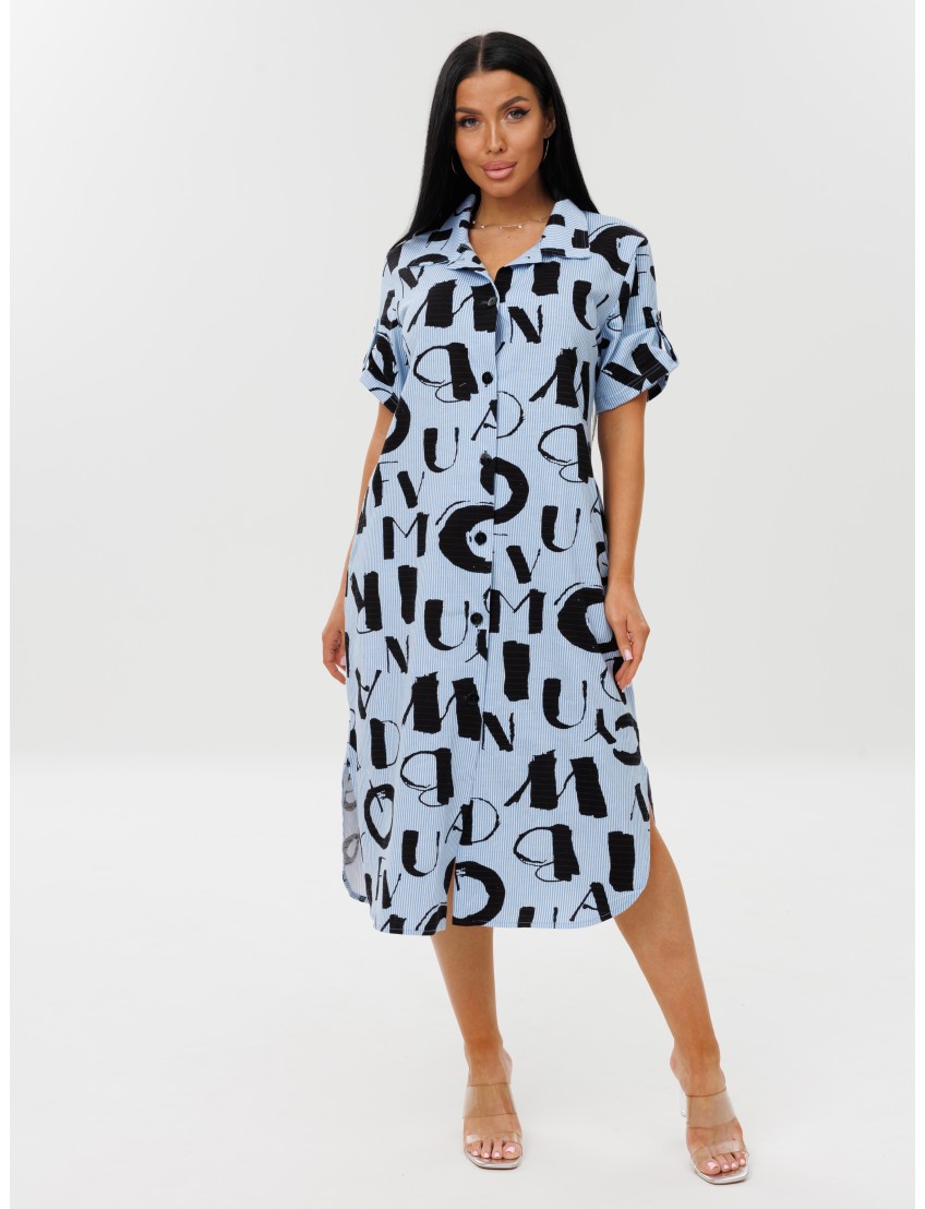 Женский халат Х-105(К) / Голубой (буквы) отшивается из трикотажного хлопкового полотна, кулирки. Женский домашний халат имеет застежку на пуговицы, короткие рукава и разрезы по бокам.