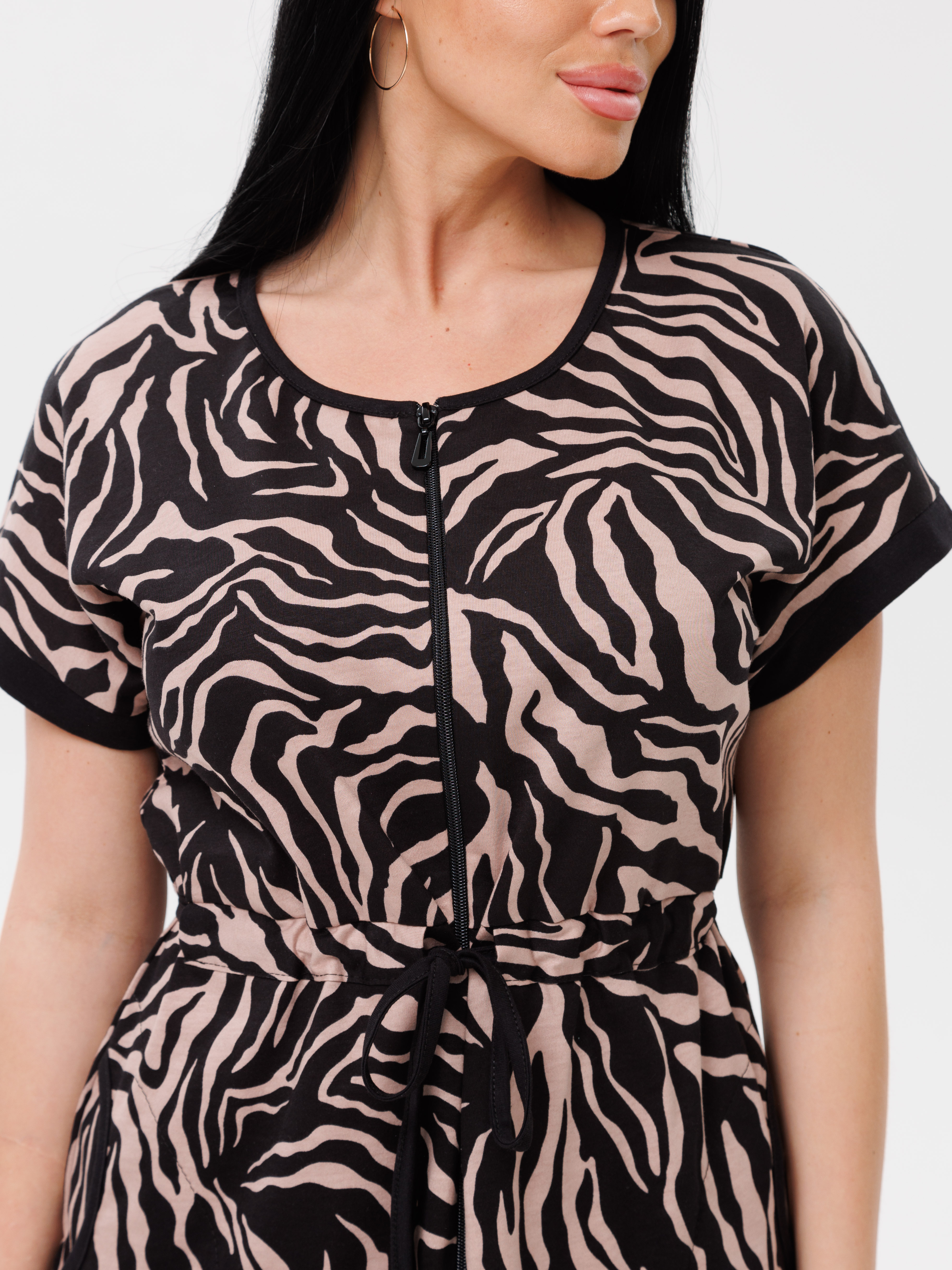 женский летний дополнен модным анималистическим принтом, короткими рукавами и