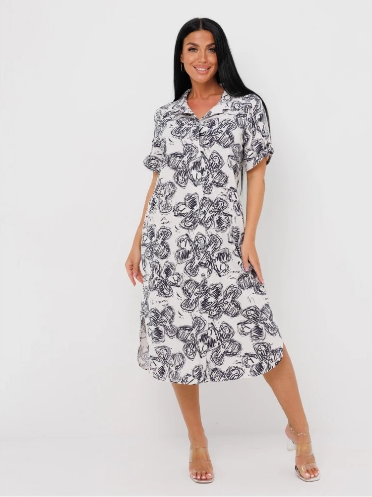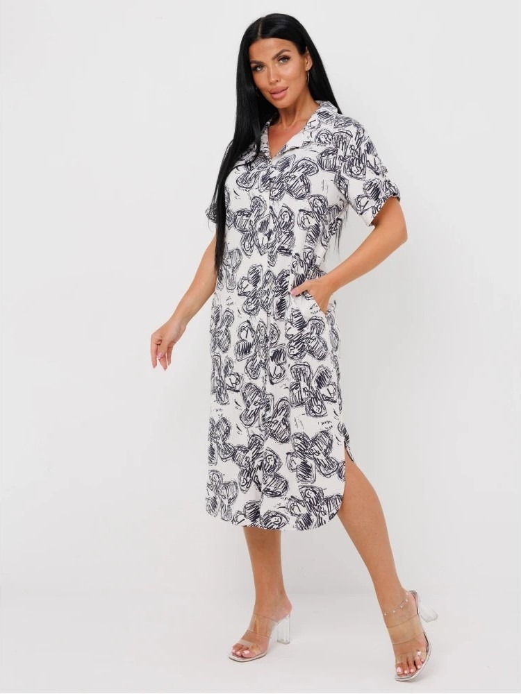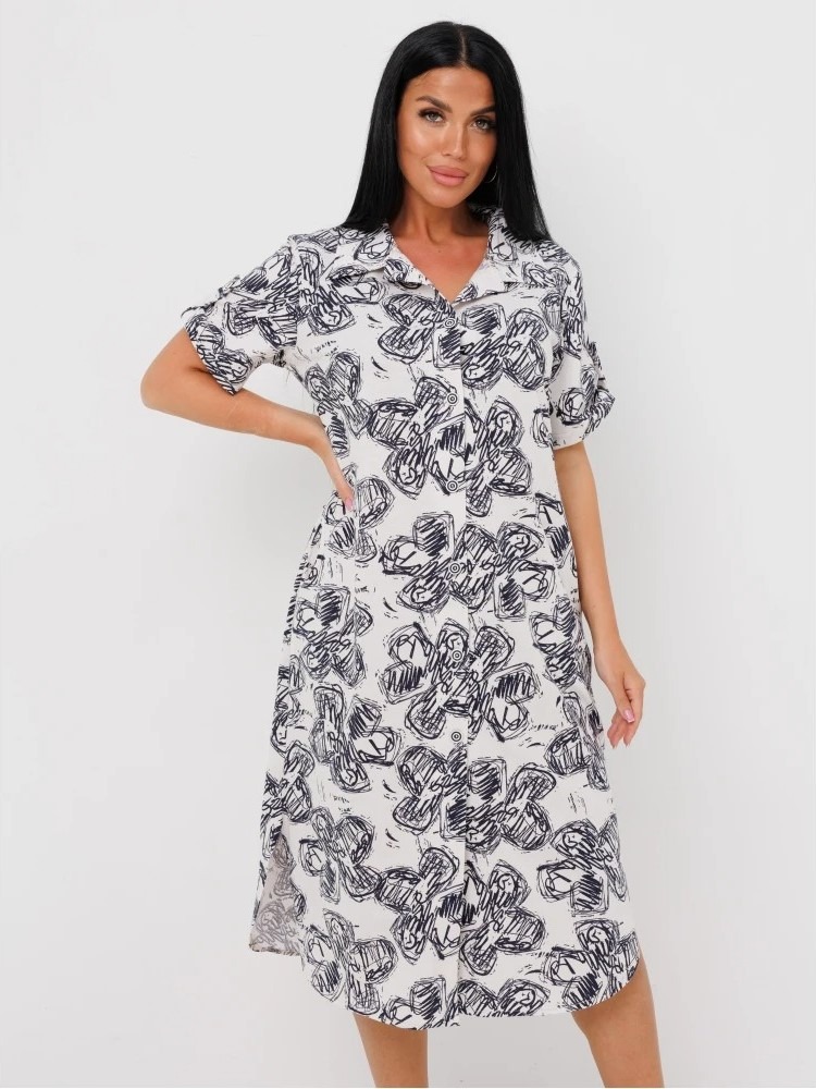 Женский халат Х-105(К) / Белый (цветы) отшивается из трикотажного хлопкового полотна, кулирки. Женский домашний халат имеет застежку на пуговицы, короткие рукава и разрезы по бокам.
