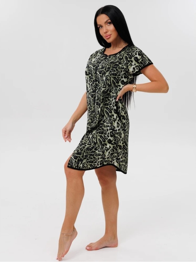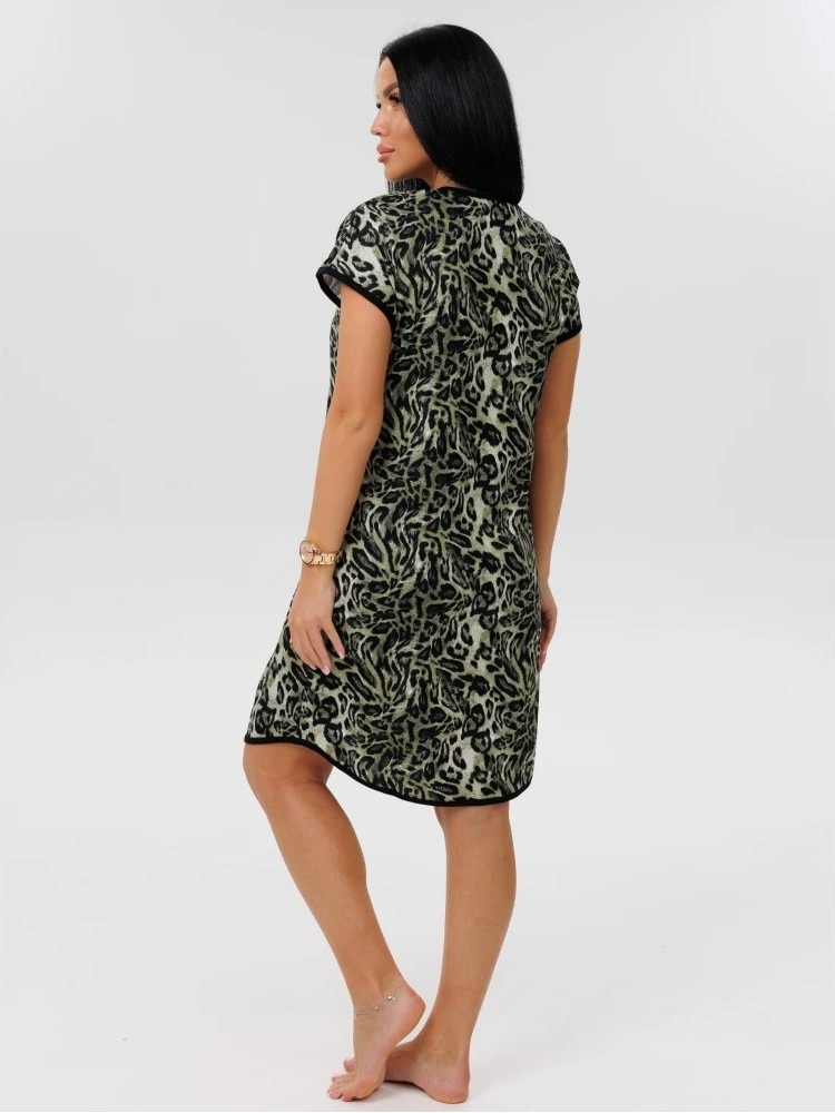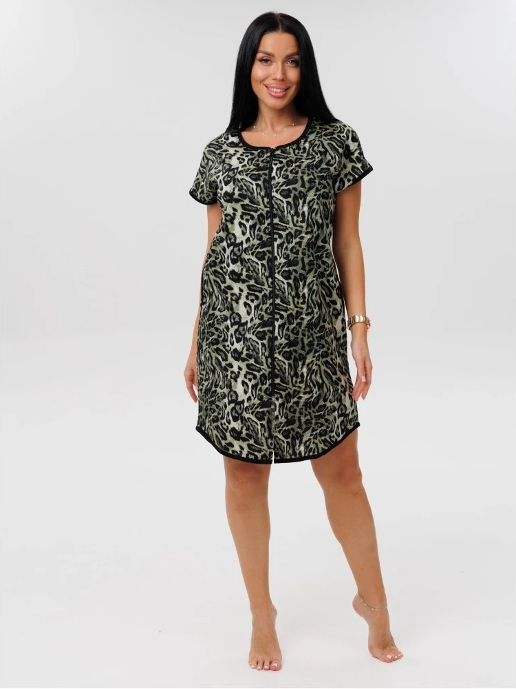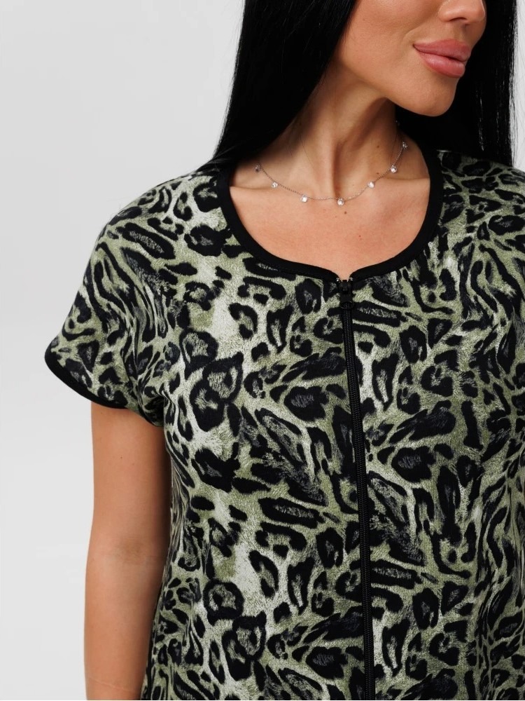Женский халат Х-154(К) / Серо-зеленый (леопард) на молнии, с короткими рукавами. Женский домашний халат из кулирки имеет широкий размерный ряд и яркие расцветки.