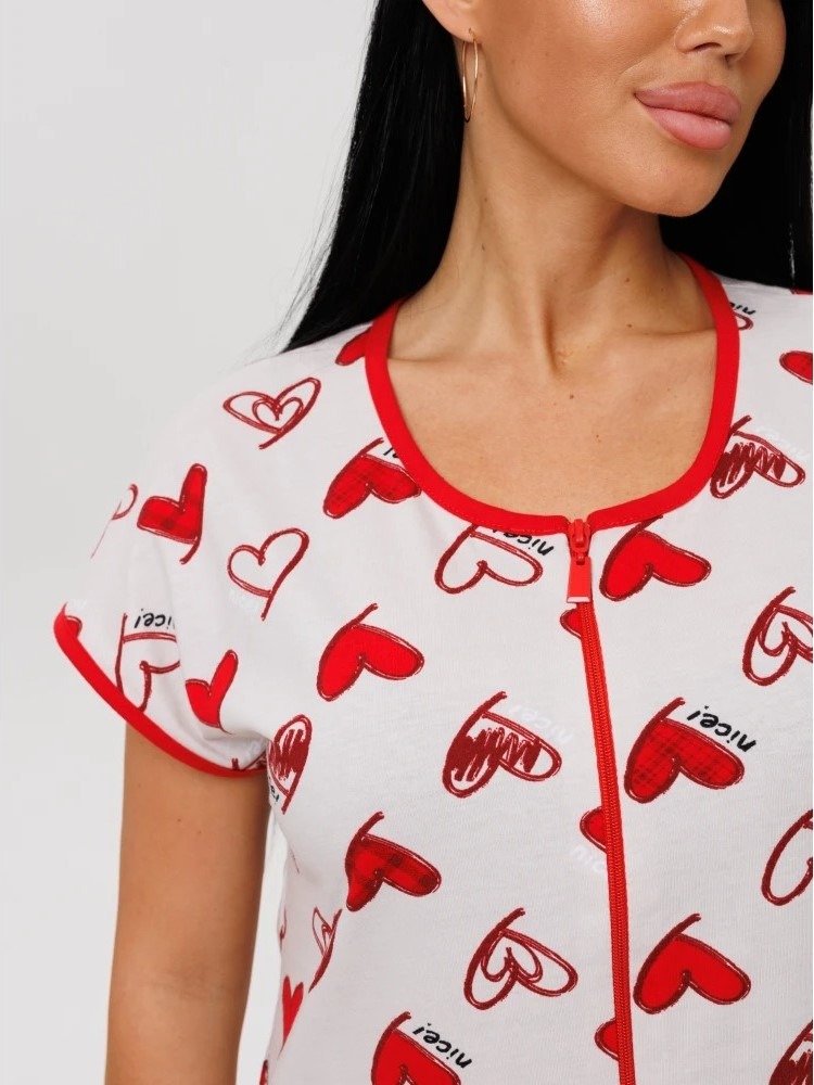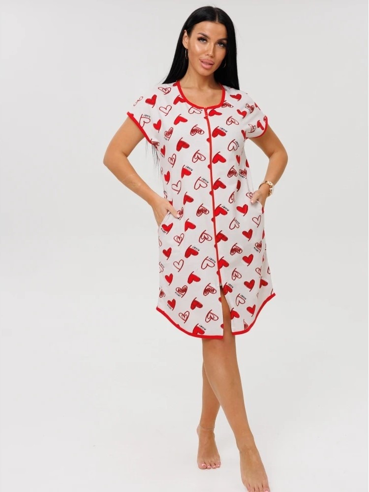 Женский халат Х-154(К) / Молочный (сердечки) на молнии, с короткими рукавами. Женский домашний халат из кулирки имеет широкий размерный ряд и яркие расцветки.