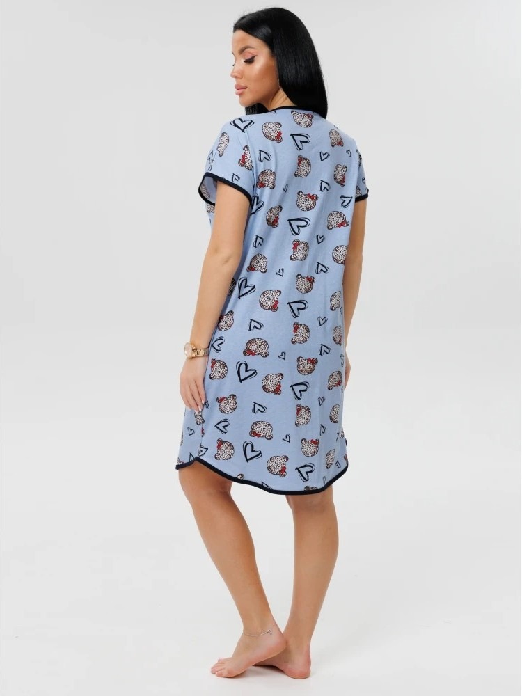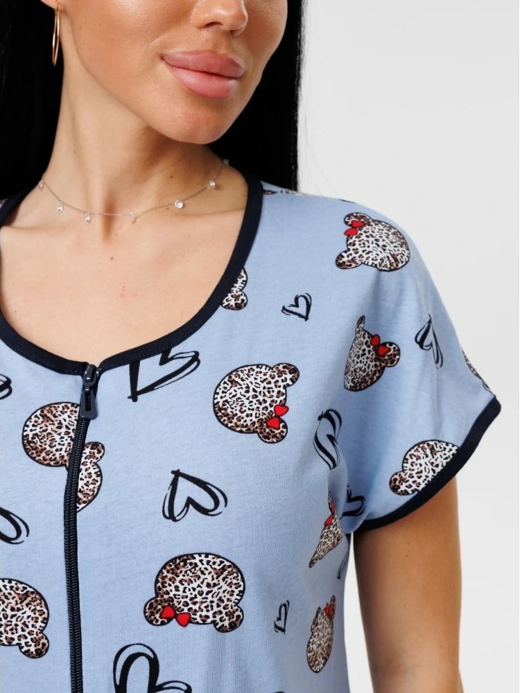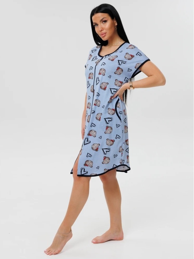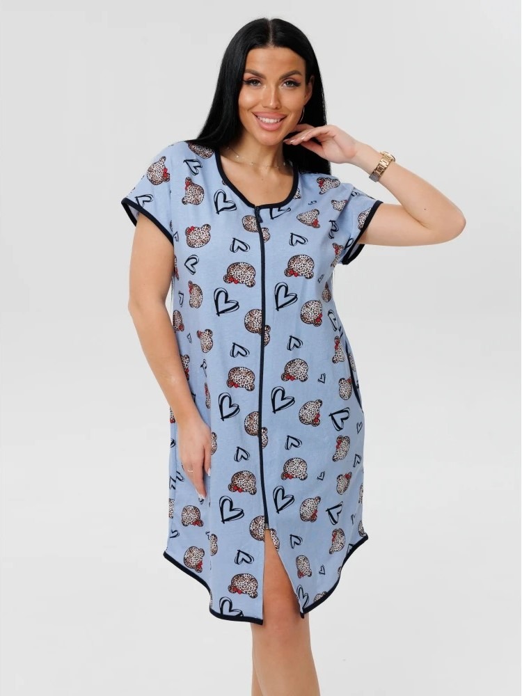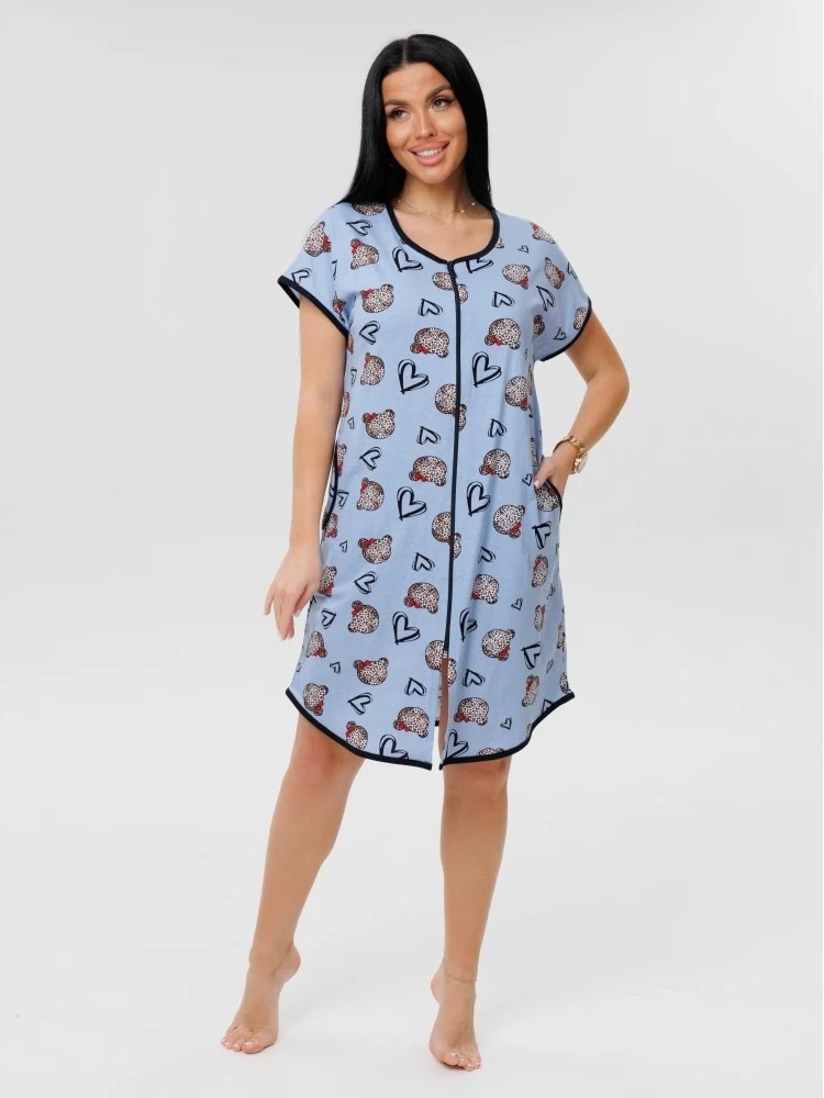 Женский халат Х-154(К) / Темно-голубой (сердечки) на молнии, с короткими рукавами. Женский домашний халат из кулирки имеет широкий размерный ряд и яркие расцветки.