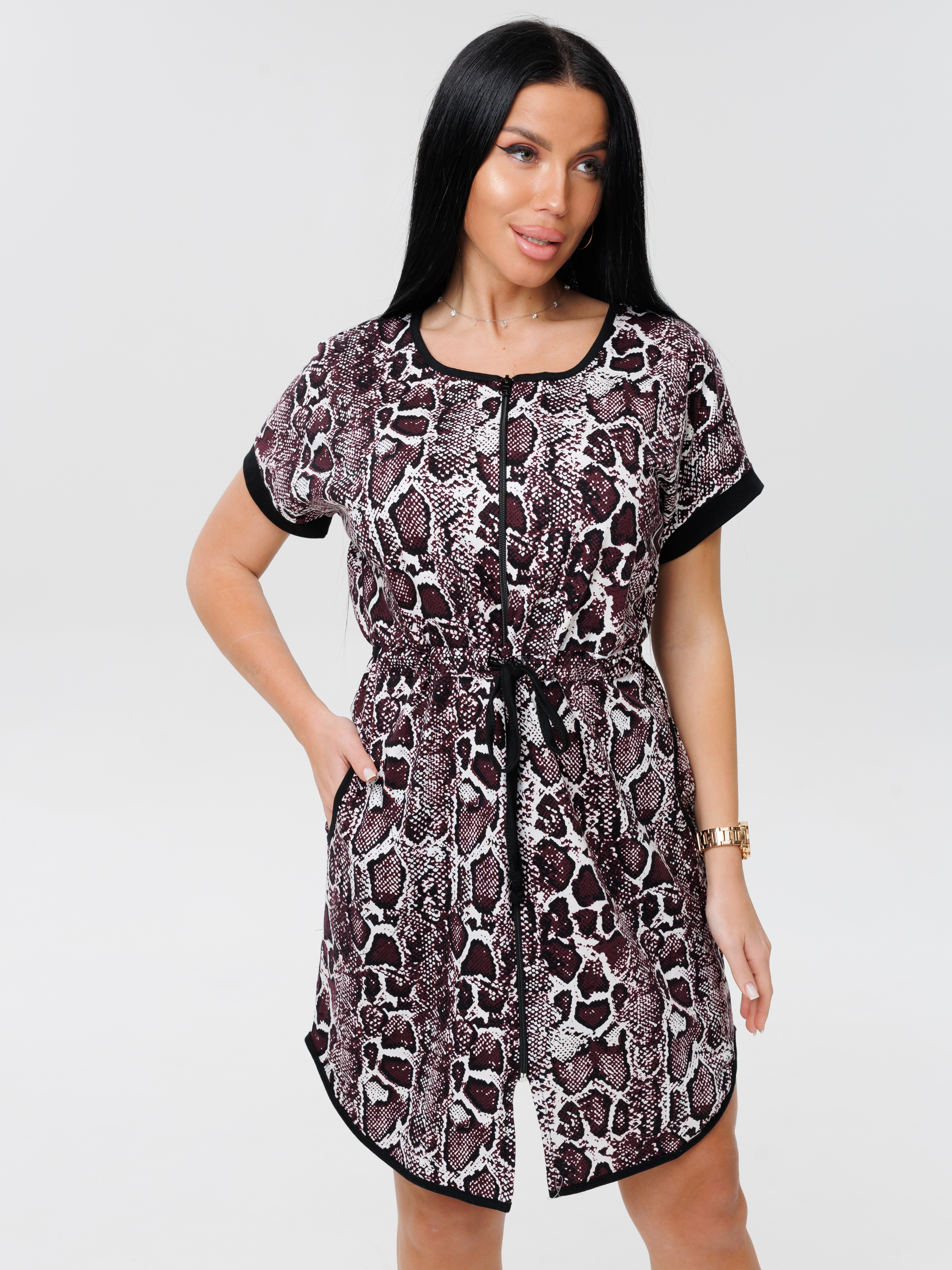 женский летний дополнен модным анималистическим принтом, короткими рукавами и