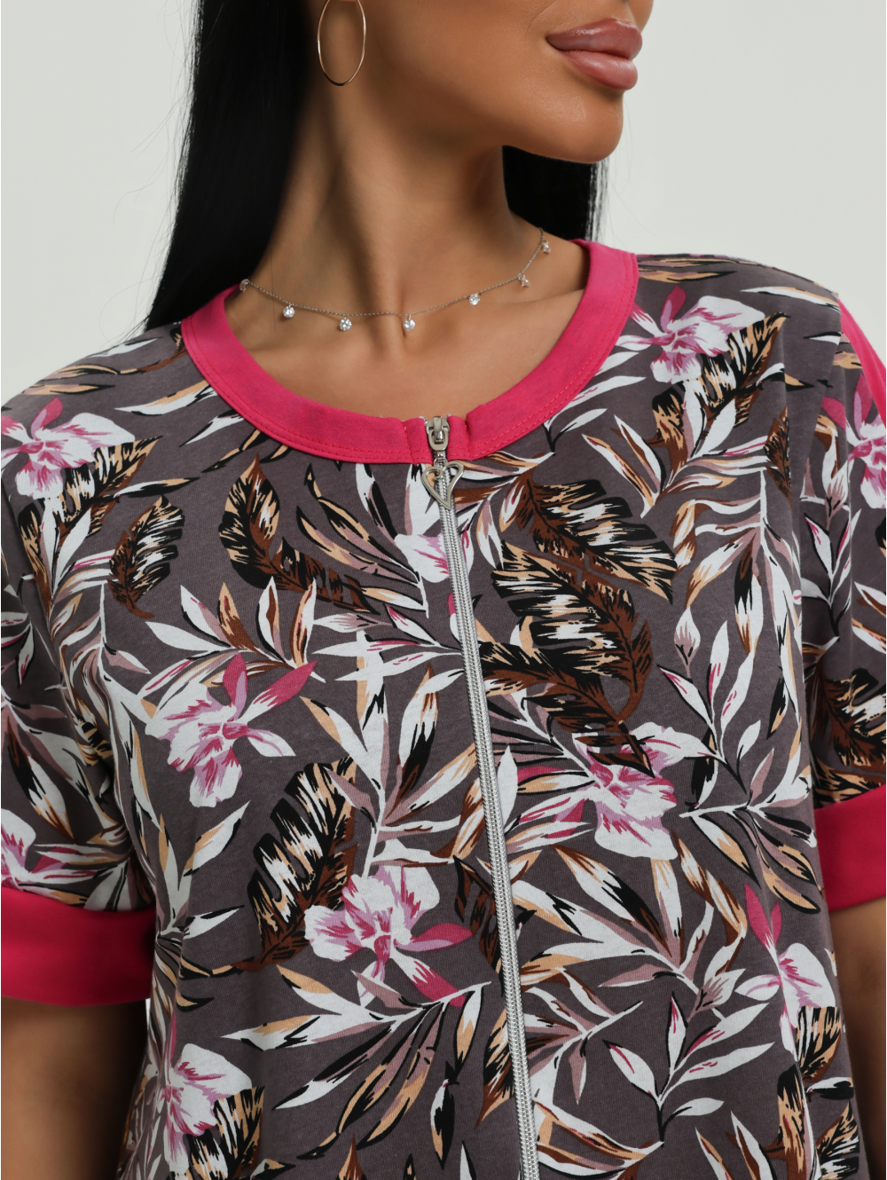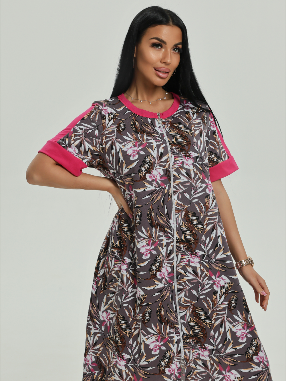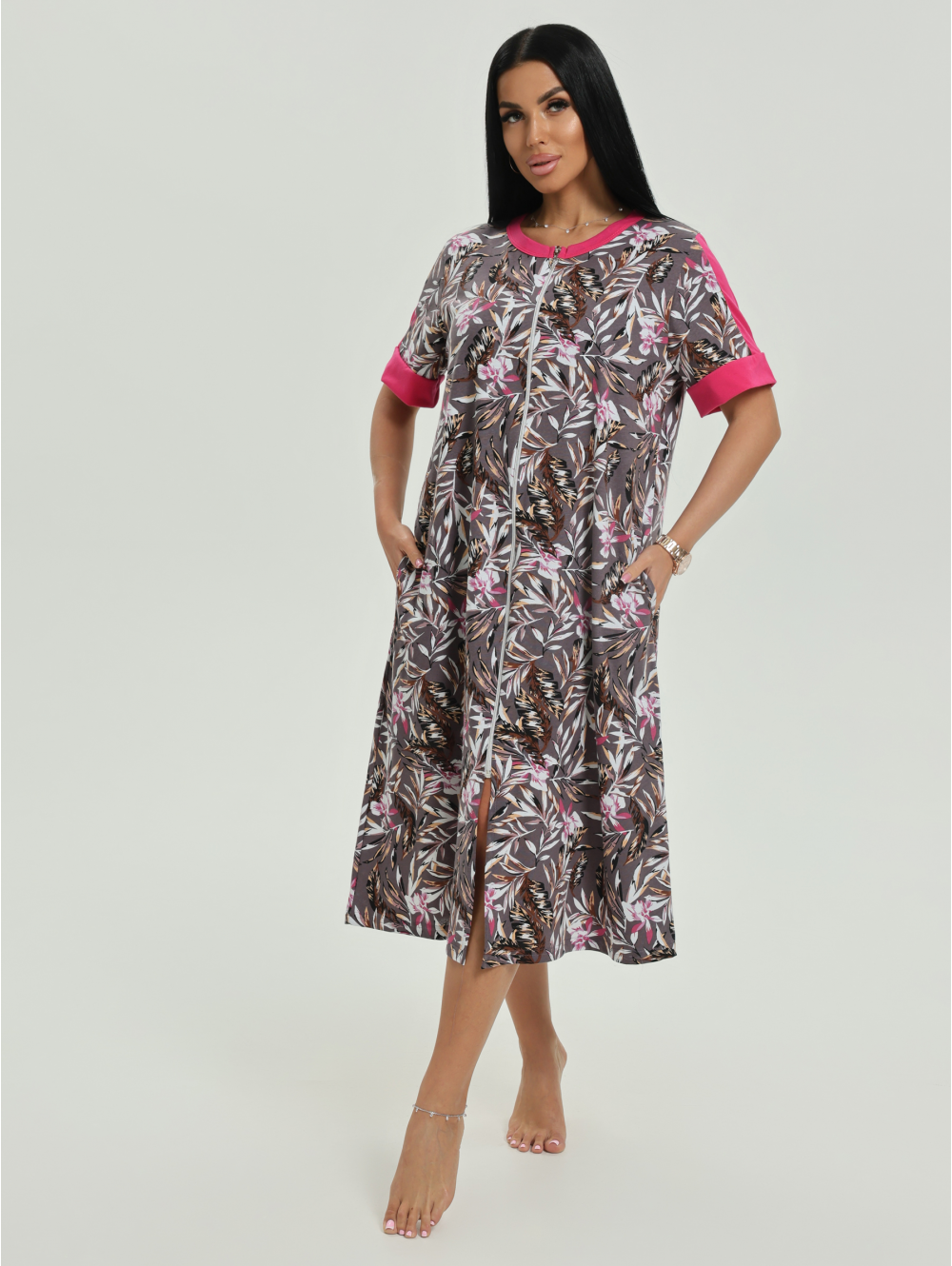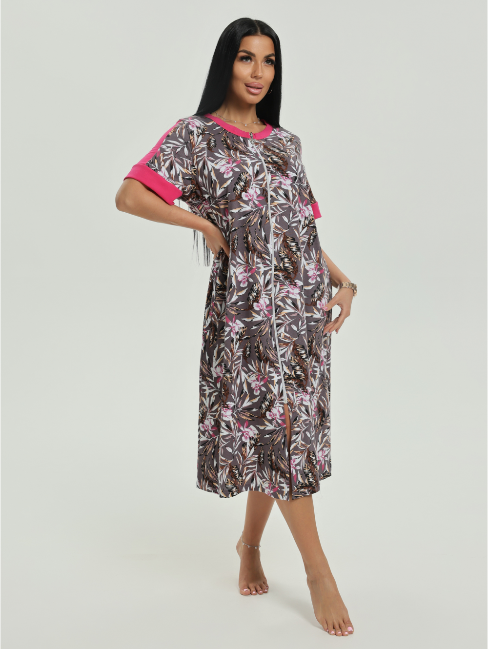 Халат женский Барышня с центральной застежкой-молнией, с коротким втачным рукавом.