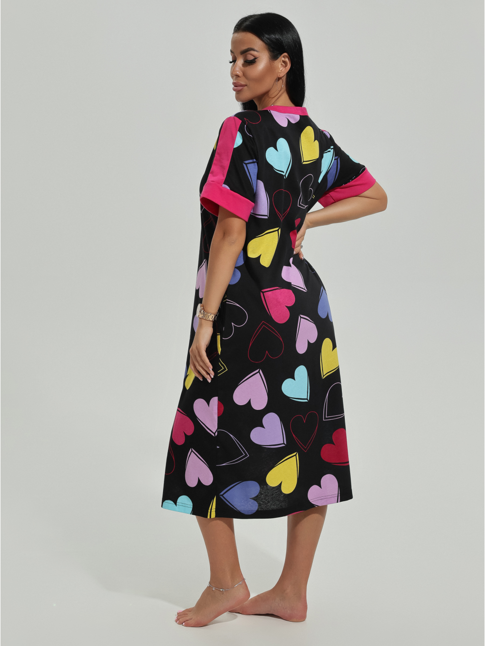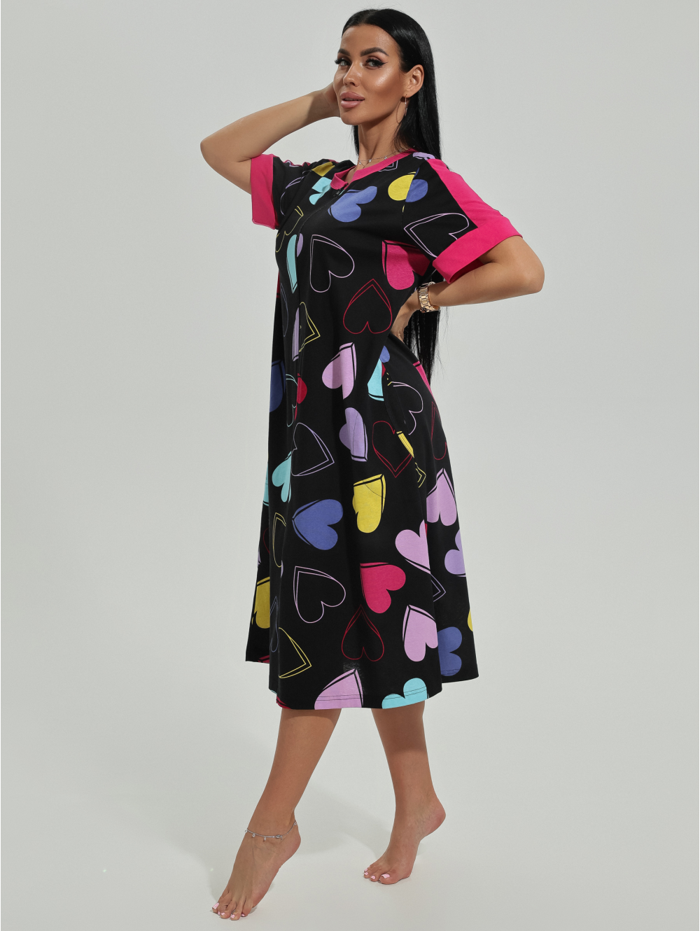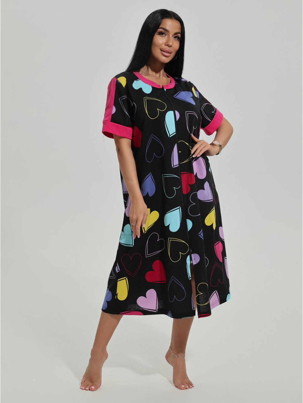 Халат женский Барышня с центральной застежкой-молнией, с коротким втачным рукавом.