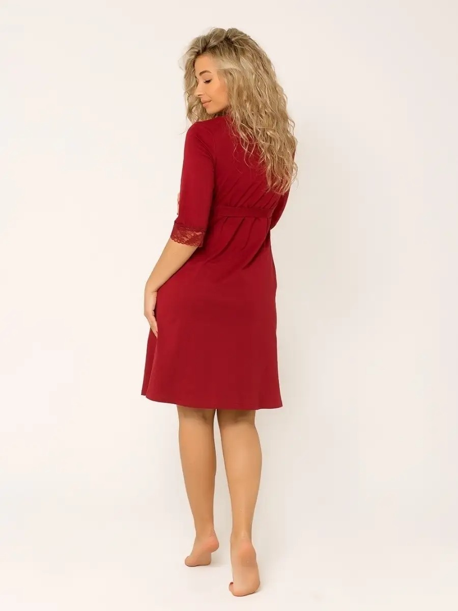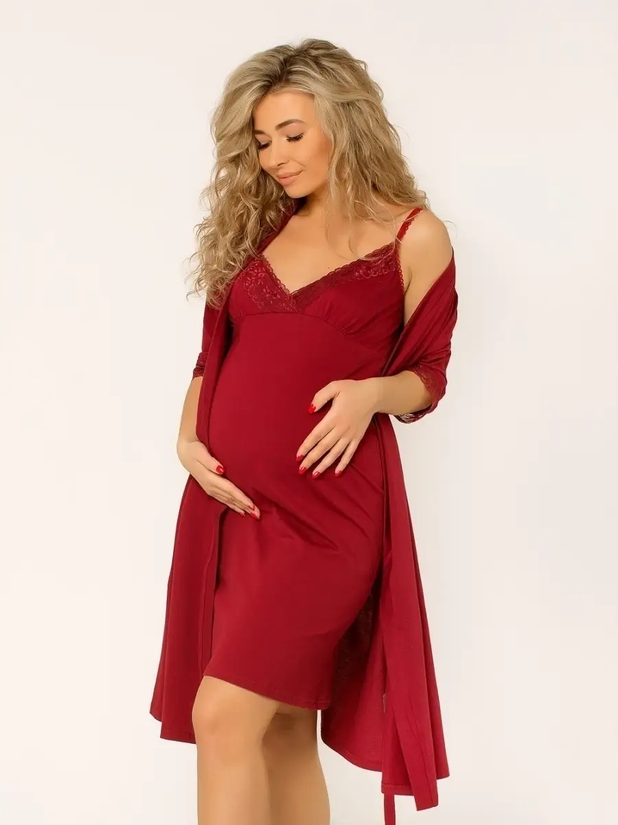 Практичный и невероятно удобный комплект «Для мамы» / Бордовый арт.к1156б в роддом для беременных и кормящих из 100% Хлопка, который состоит из ночной сороки и халата с запахом. Сорочка - оптимальной длины, выполнена из однотонной хлопковой ткани Премиального качества, на бретелях с регуляторами из декоративной резинки. Верх изделия разработан для максимального комфорта во время кормления грудью. Крайне привлекательно смотрится декоративная отделка кружевом. Халат с запахом, удобным поясом, боковыми карманами и рукавом 3/4. Длина - ниже колена. По низу рукавов - отделка эластичным кружевом. В боковом шве 3 петли для регулировки высоты пояса. Такой комплект, состоящий из халата и сорочки, ни в коем случае не останется без внимания. Вы сможете носить его и после беременности, ведь он невероятно удобный и универсальный. Характеристики: 100% хлопковая ткань Премиум; Обработка декоративным эластичным кружевом; Оптимальная длина изделий; Бретели с регуляторами; Комфорт во время кормления; Боковые карманы; 3 уровня регулировки высоты пояс
