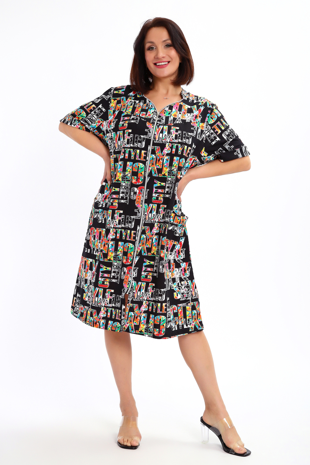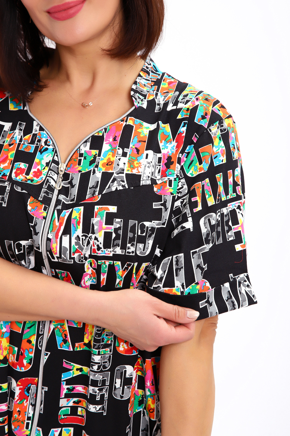 Халат женский на молнии с коротким рукавом. Данная модель выполнена из трикотажного полотна кулирка (хлопок 100%). Горловина фигурная со стойкой, на полочке по бокам присутствуют накладные карманы. На рукавах пришиты манжеты. Отличная модель порадует вас своей изящностью и комфортом.